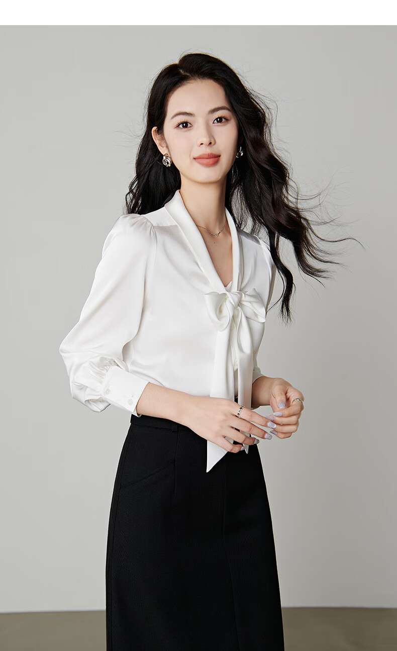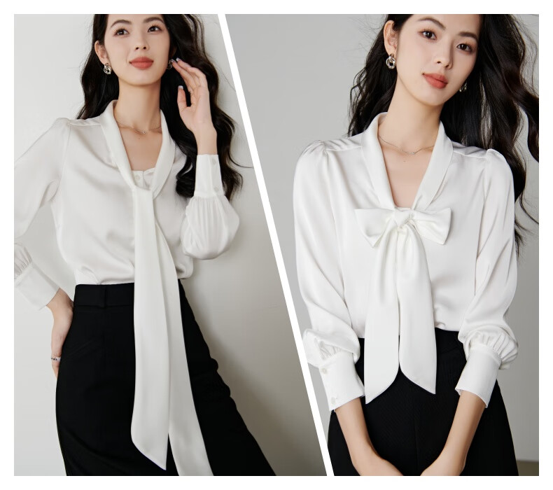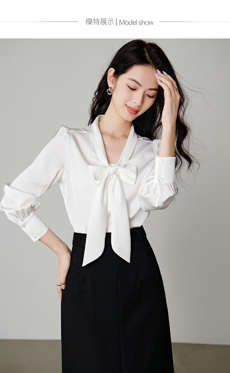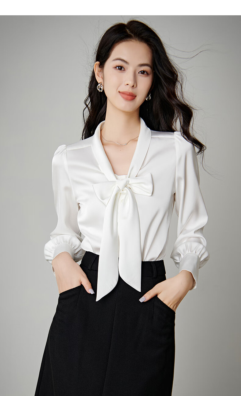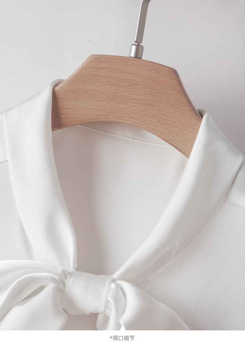 晚白【新品】系带蝴蝶结领白衬衫女2026春款时尚气质上衣通勤百搭衬衣 白色 L