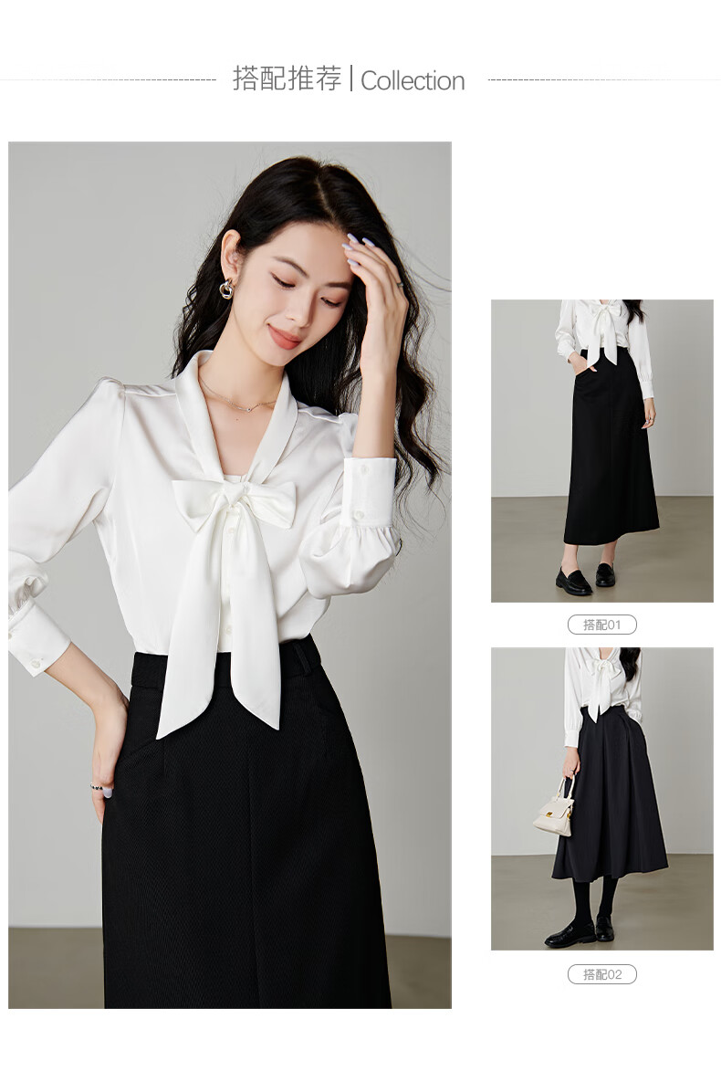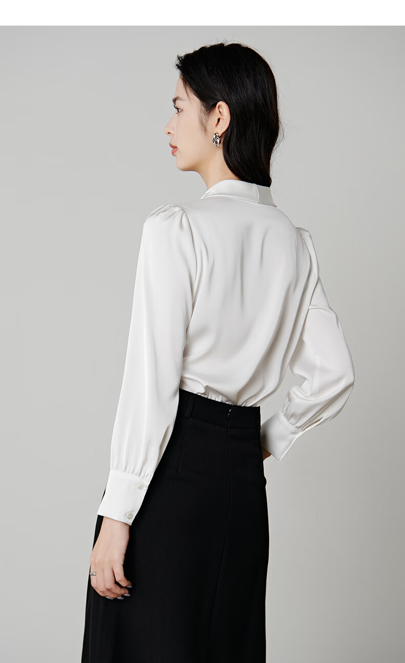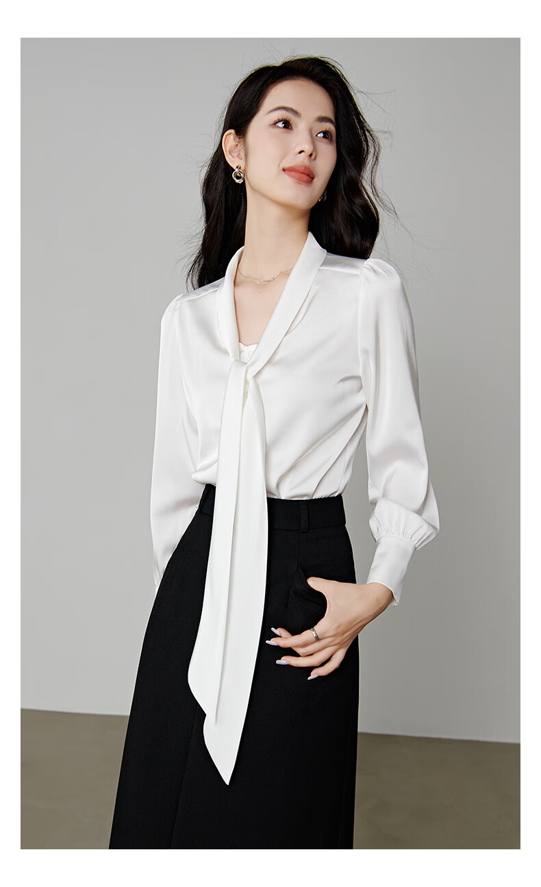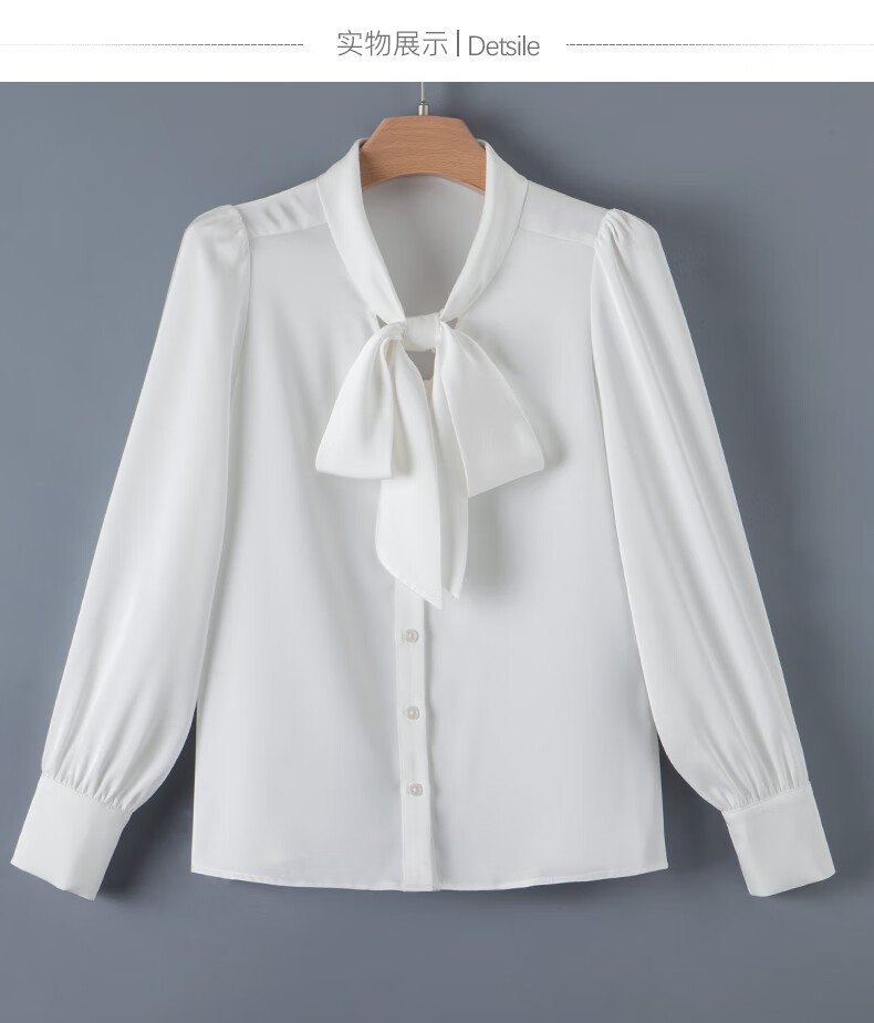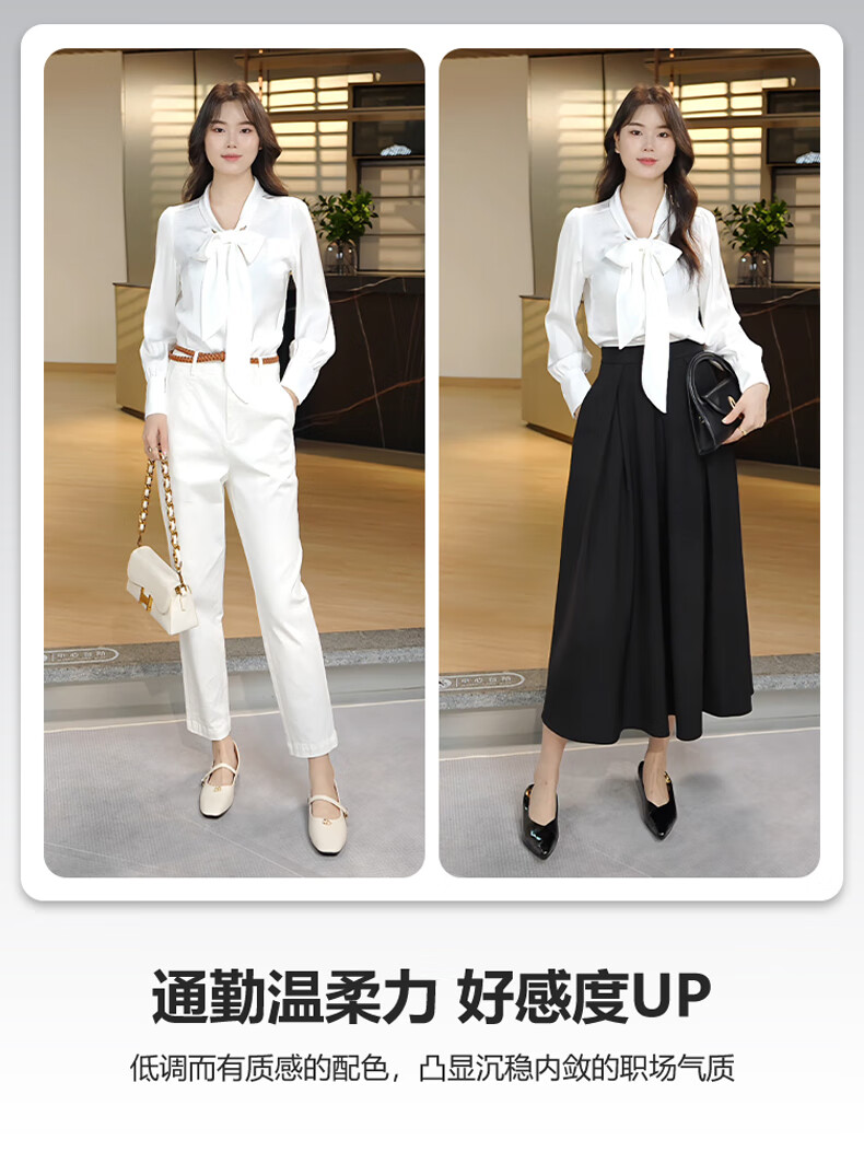 晚白【新品】系带蝴蝶结领白衬衫女2026春款时尚气质上衣通勤百搭衬衣 白色 L