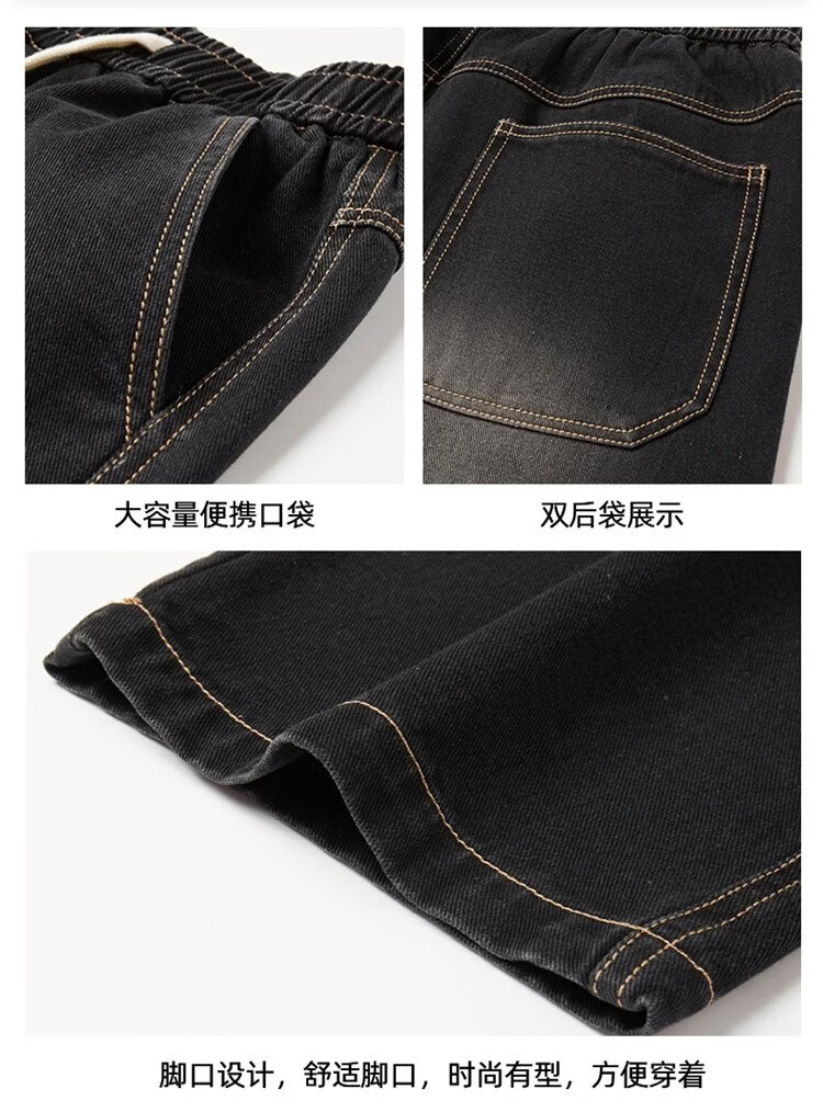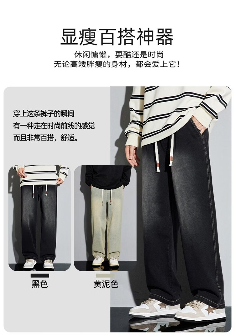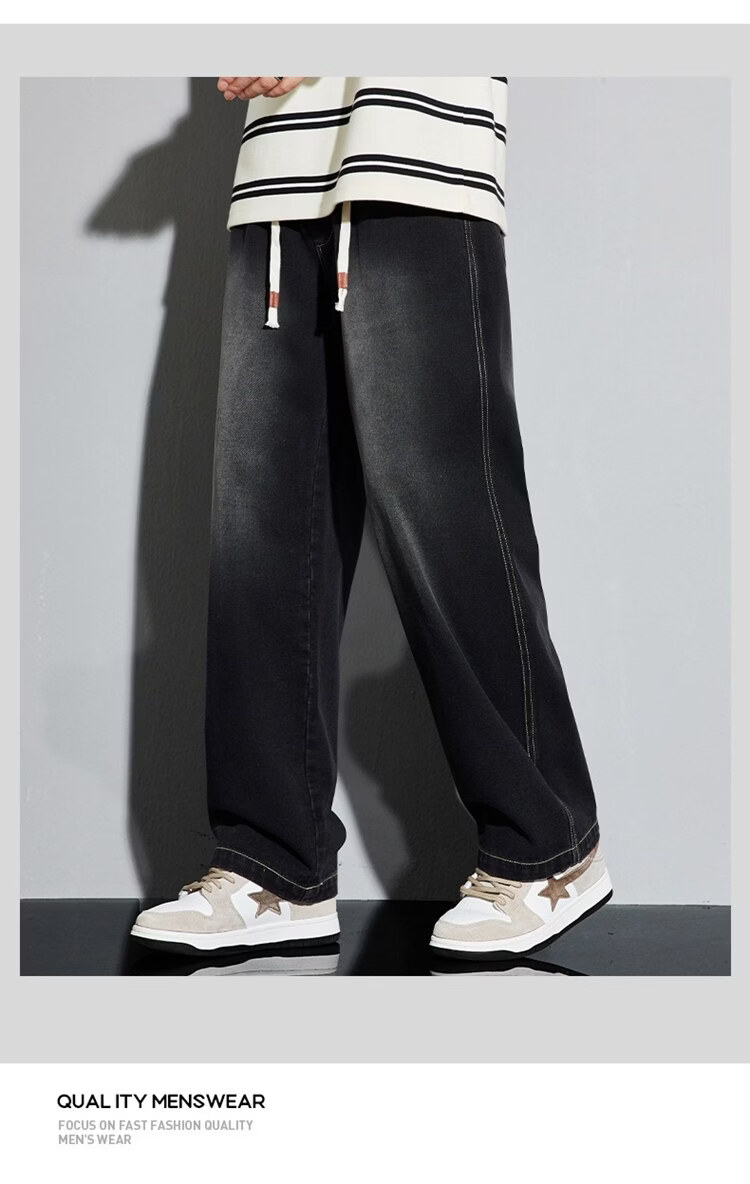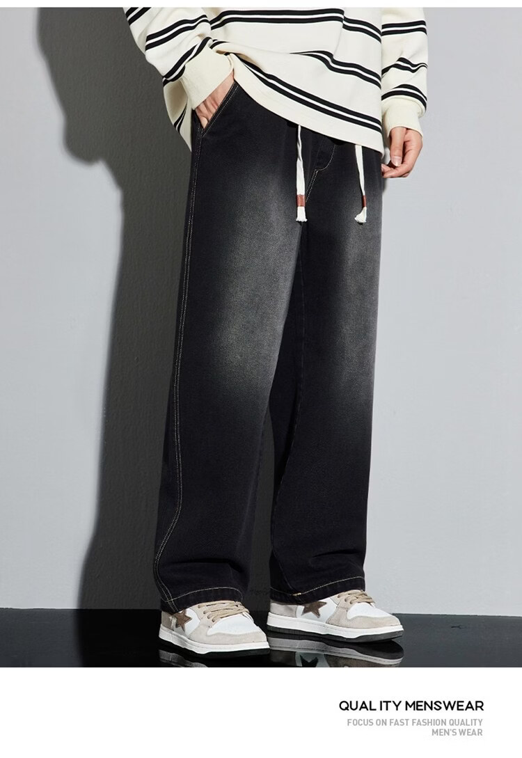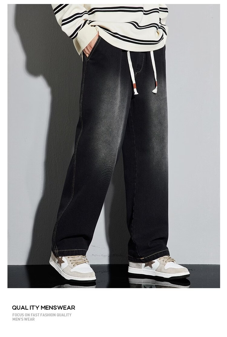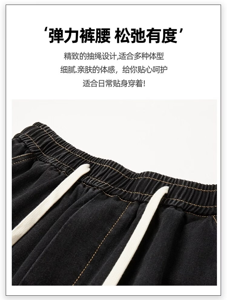 啄木鸟美式休闲牛仔裤男春秋季潮流直筒胖子加肥加大码日系松紧腰休闲裤 黑色 M
