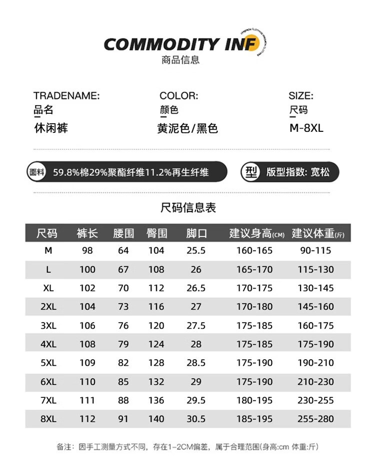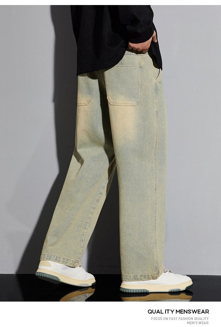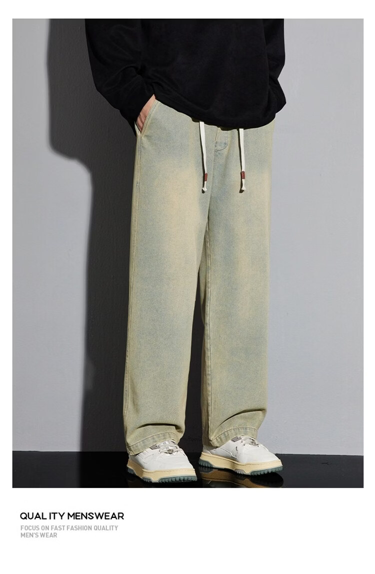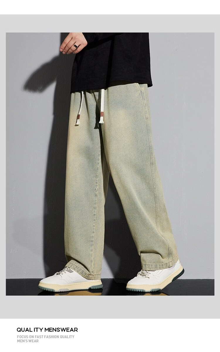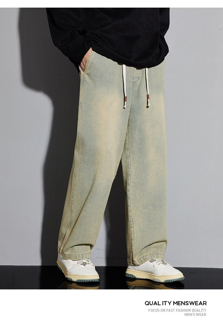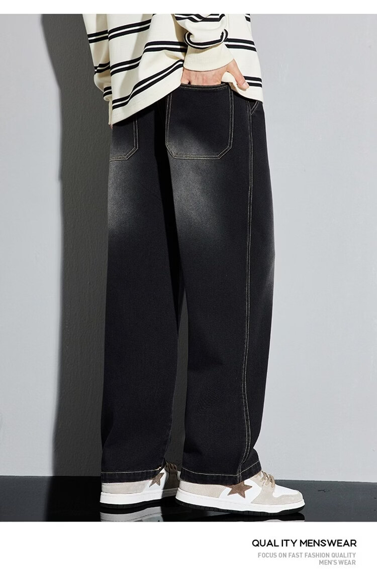 啄木鸟美式休闲牛仔裤男春秋季潮流直筒胖子加肥加大码日系松紧腰休闲裤 黑色 M