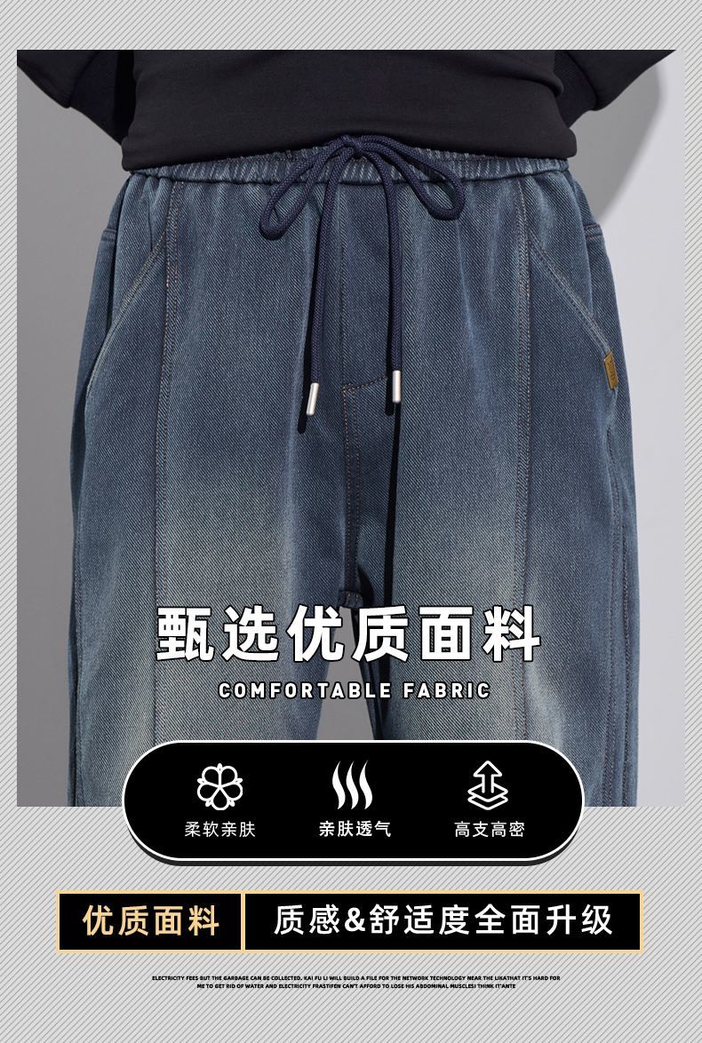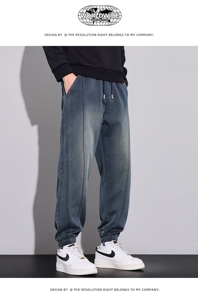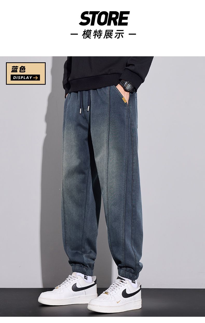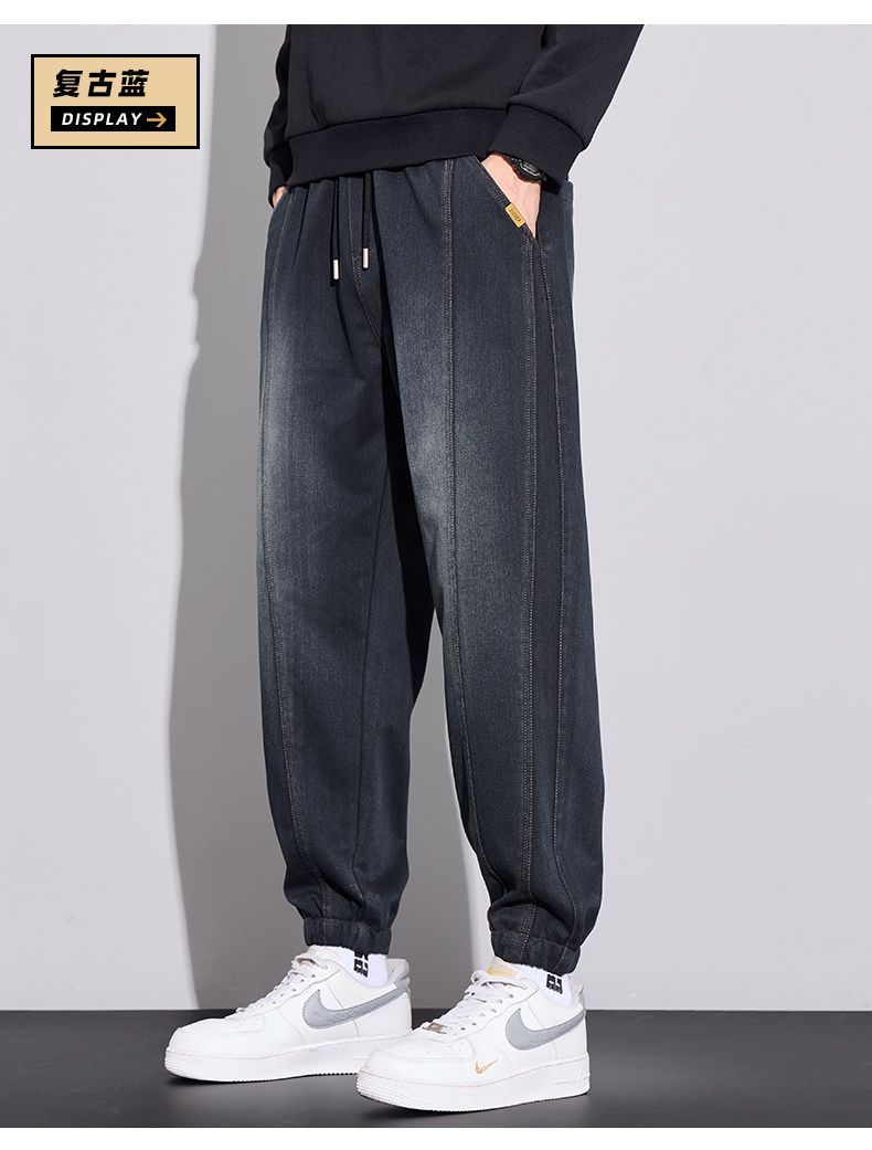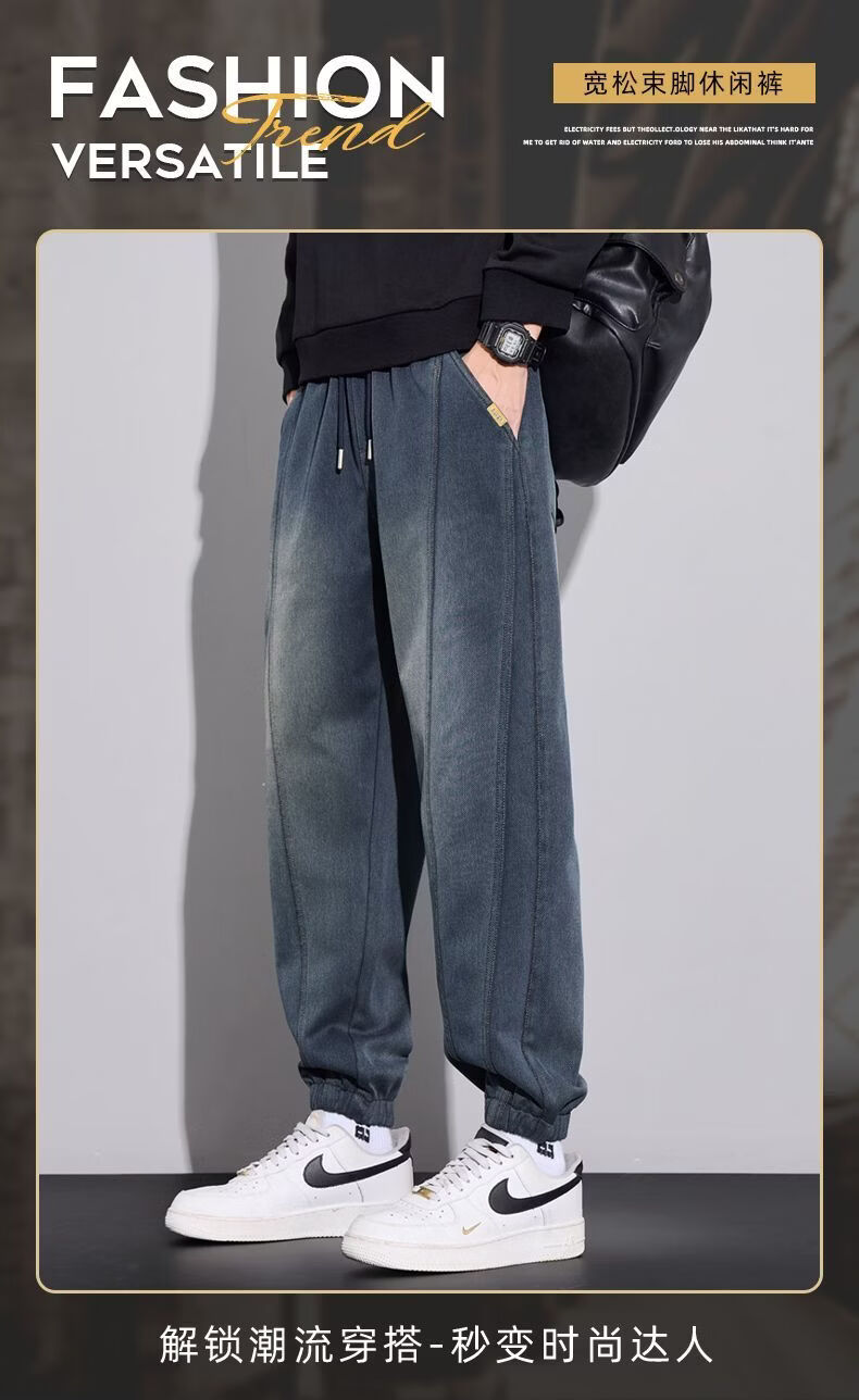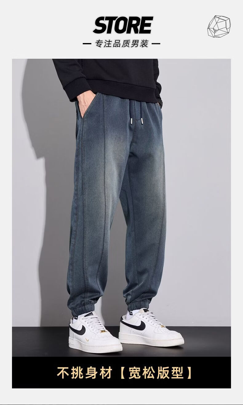 真维斯(Jeanswest)2026男士秋冬新款弹力休闲裤潮牌美式复古百搭修身哈伦束脚长裤 蓝色 M
