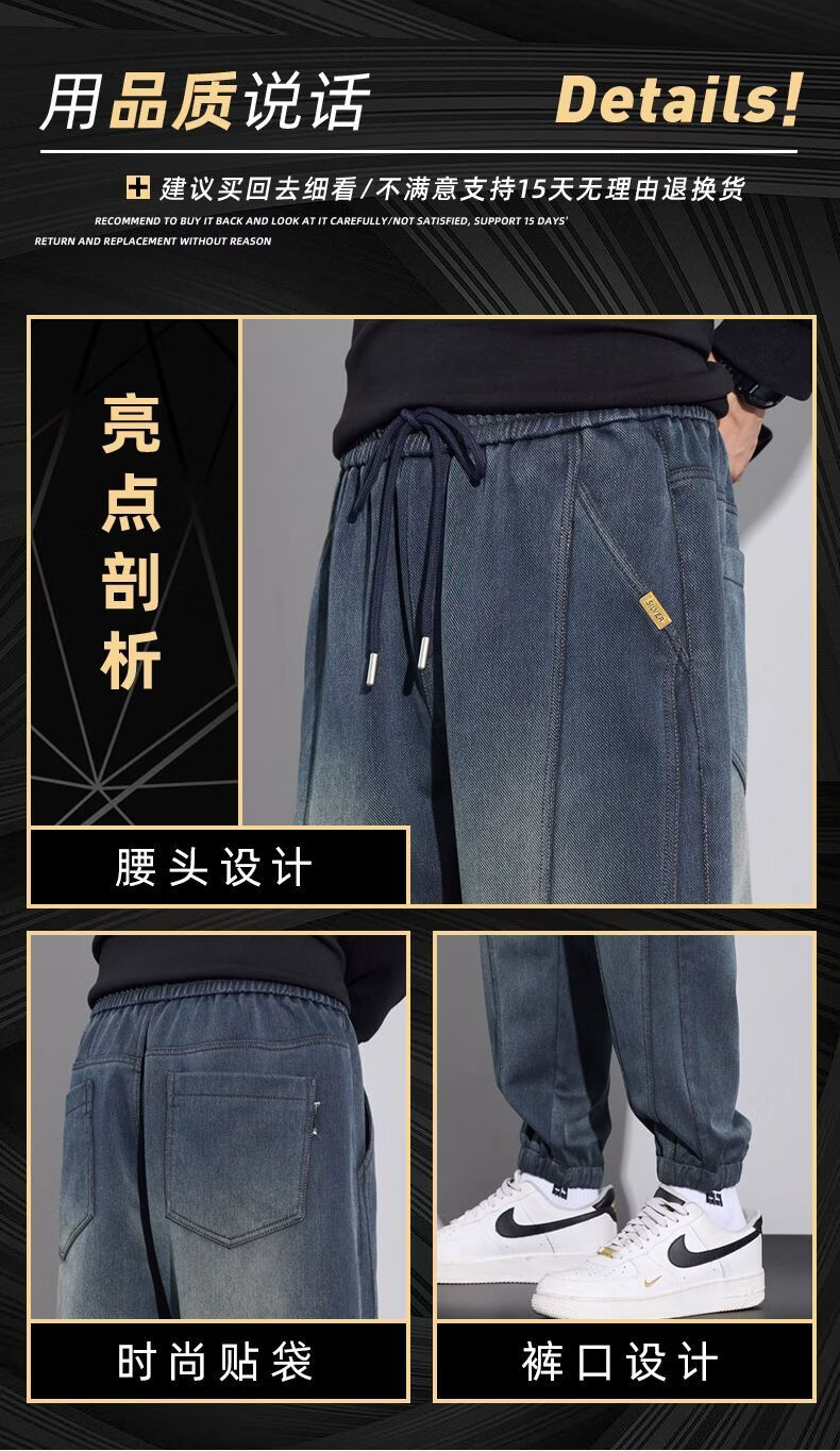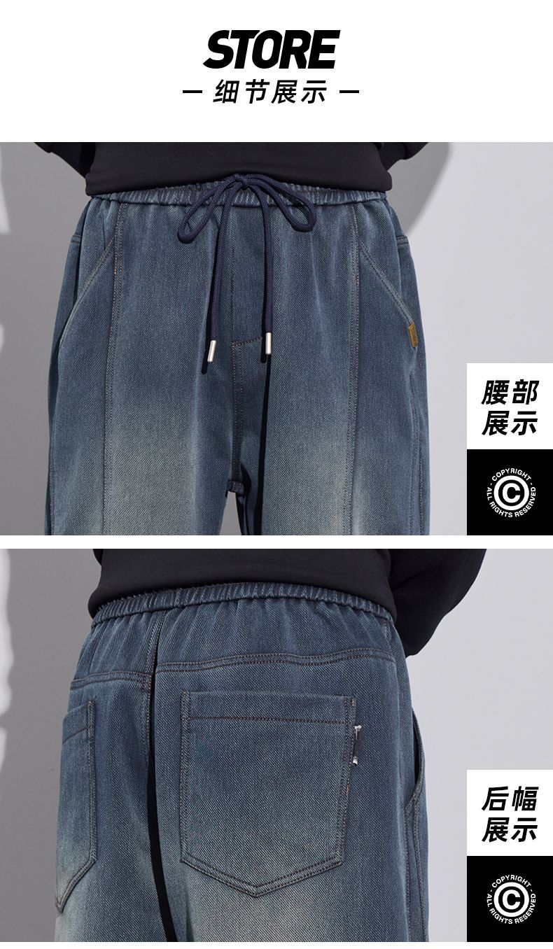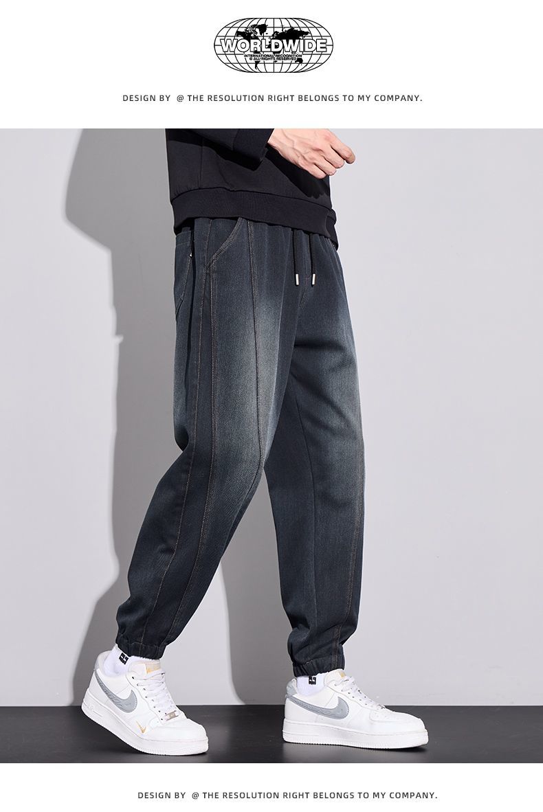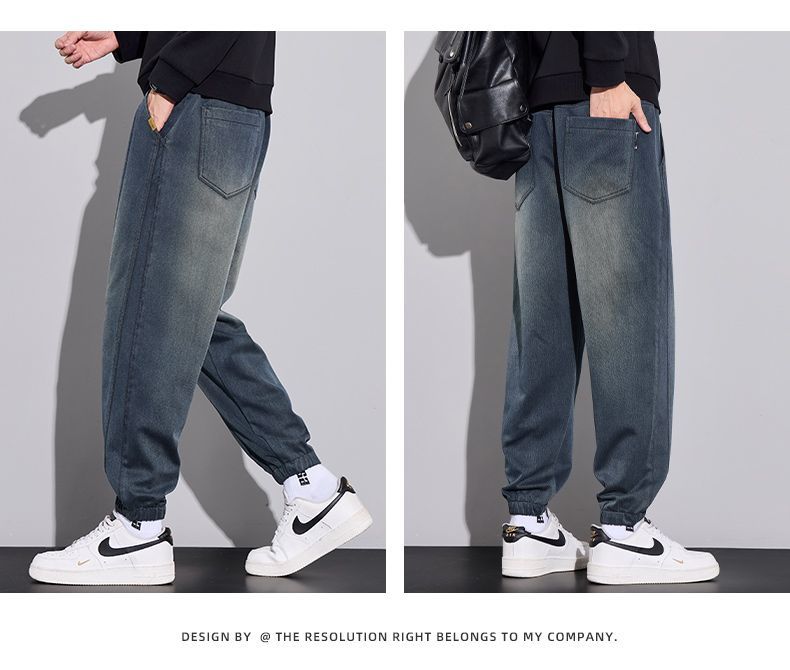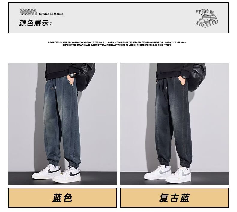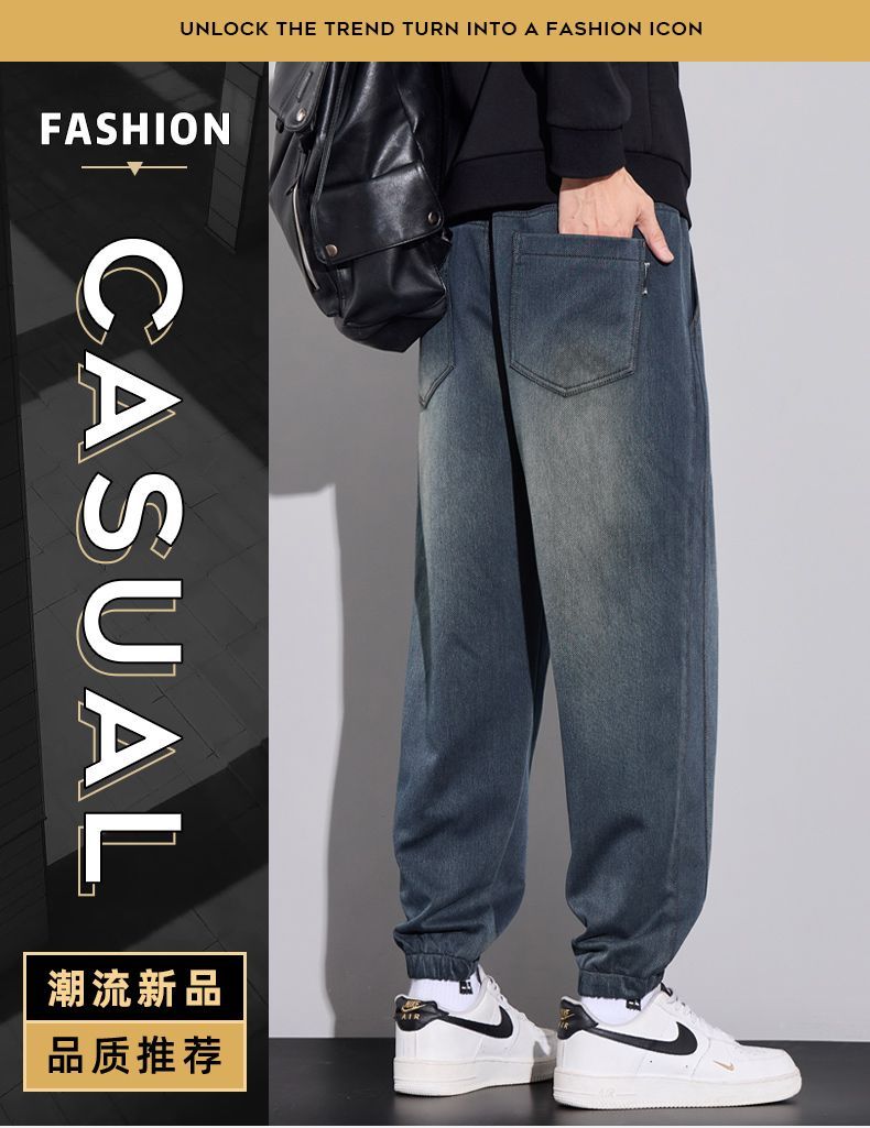 真维斯(Jeanswest)2026男士秋冬新款弹力休闲裤潮牌美式复古百搭修身哈伦束脚长裤 蓝色 M