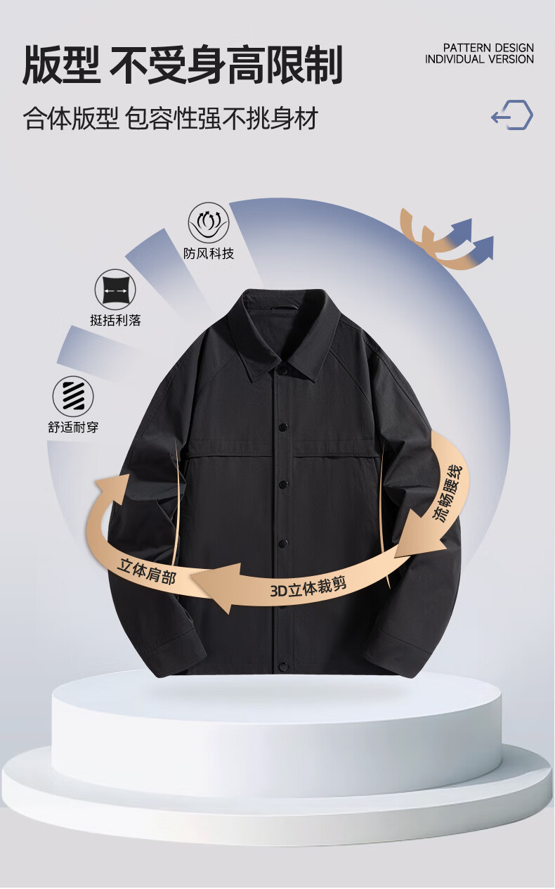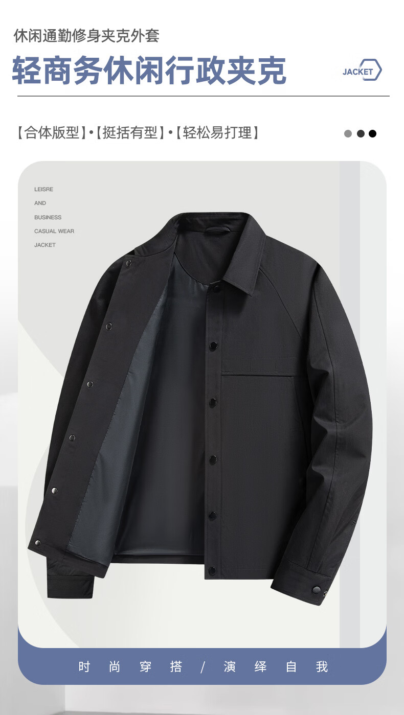 SHANSHAN杉杉可机洗夹克男春季新款轻商务翻领纯色外套男休闲职场通勤衣服 黑色 3XL /190