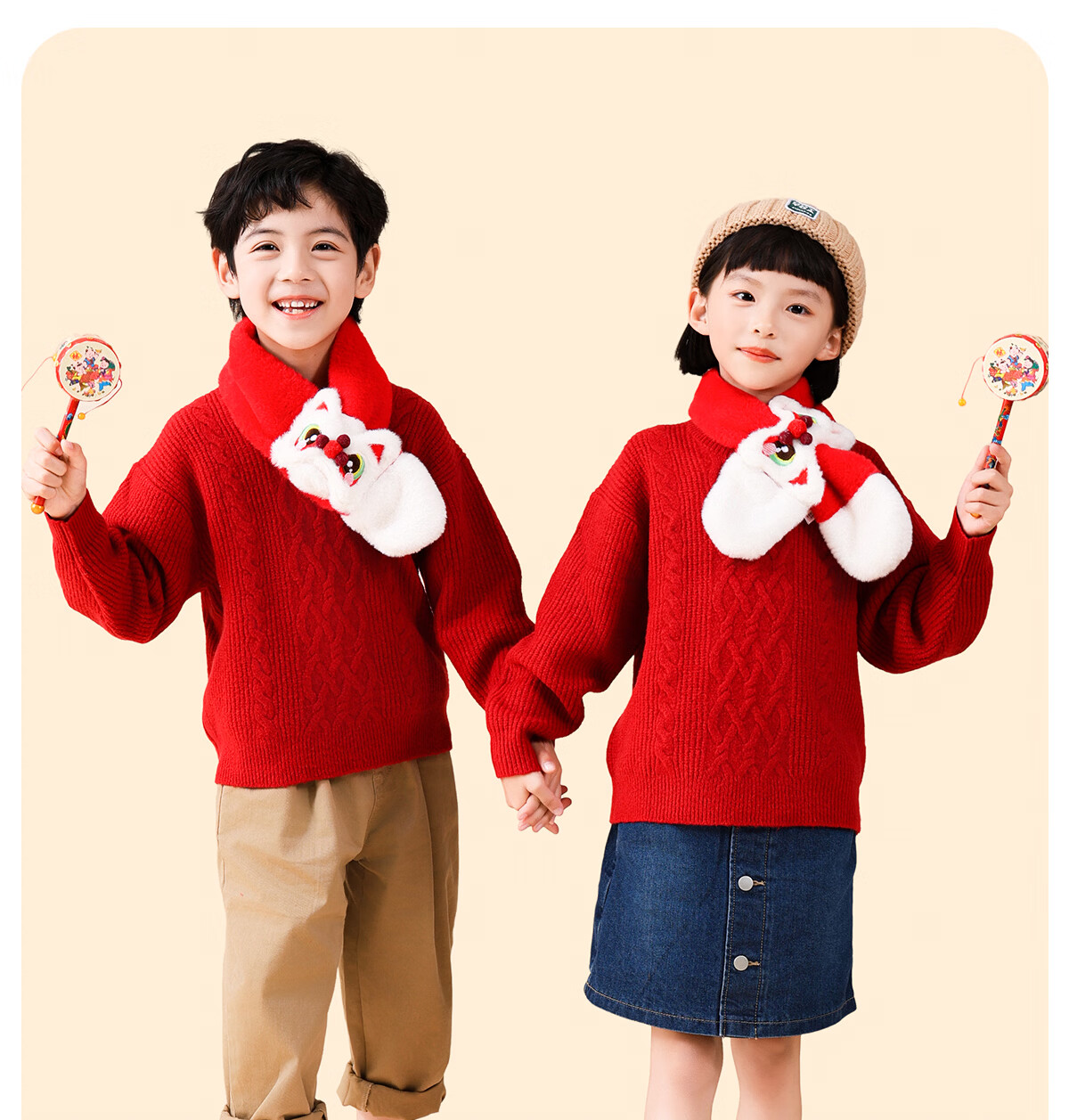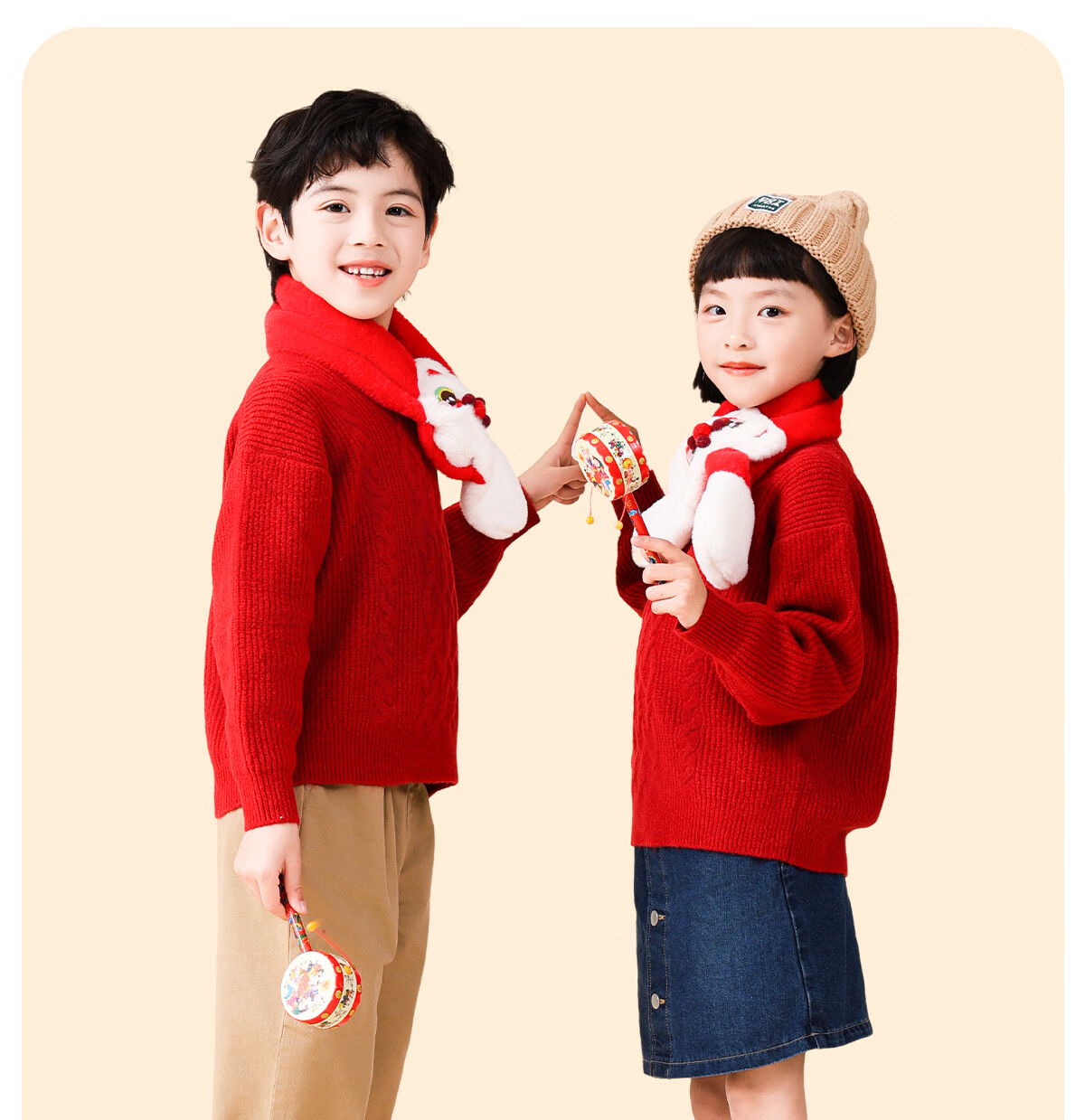 栀了成长记童装女童红色可爱亮片套装2025冬季儿童新年加绒两件套 红色 套装 100 cm