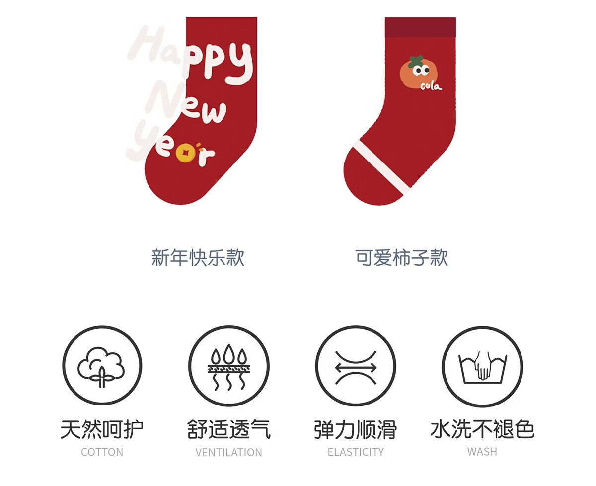 斑比童袜儿童红袜子秋冬季棉袜大童男女童春秋款新年无骨袜 BB2486 新年款儿童红袜子 5双 3-5岁 建议脚码21-26码【16-18】