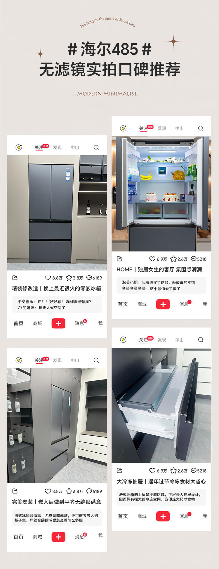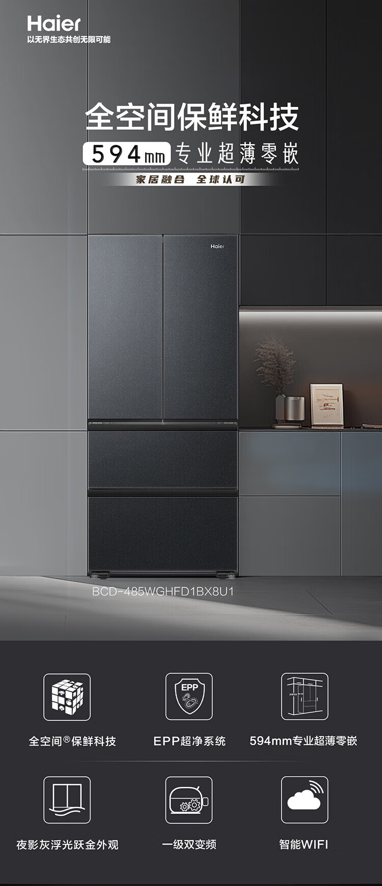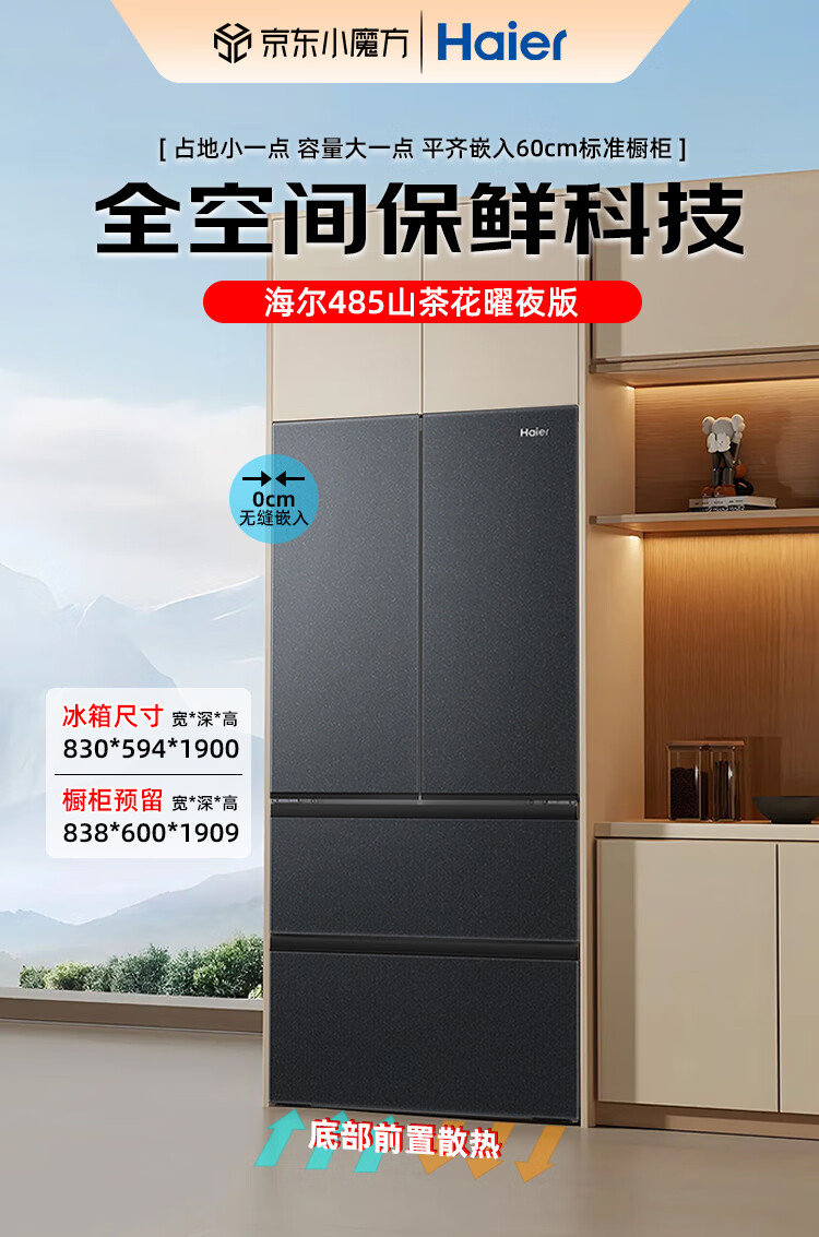海尔485山茶花曜夜版繁星冰箱超薄零嵌入法式四开门全空间保鲜双循环家用一级能效国家补贴 移动制冰舱 485升丨全空间保鲜丨594mm超薄丨底部散热