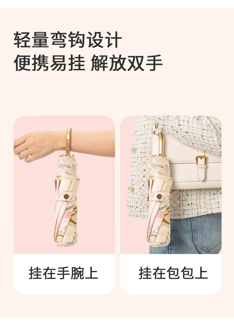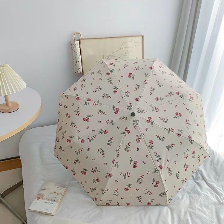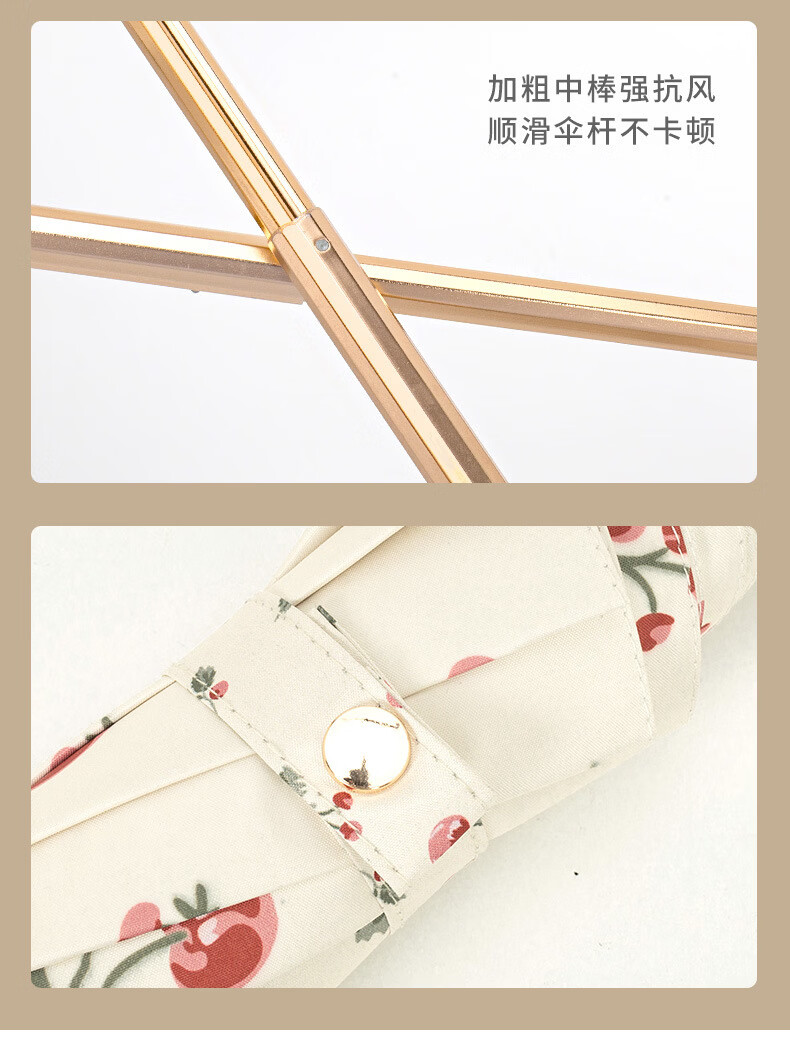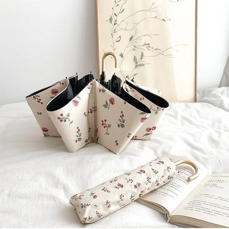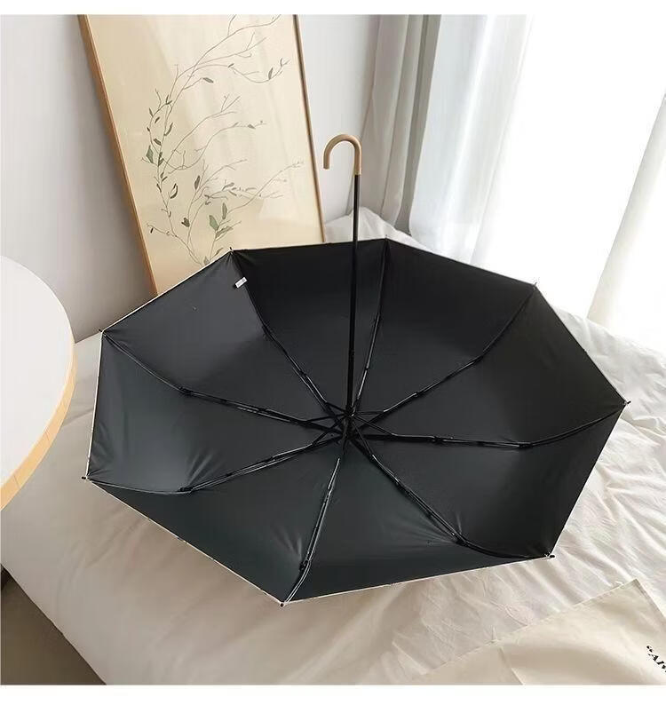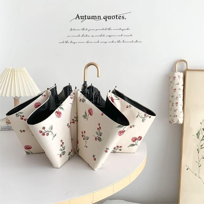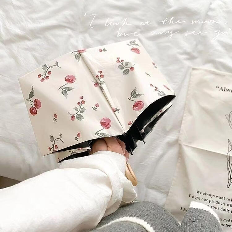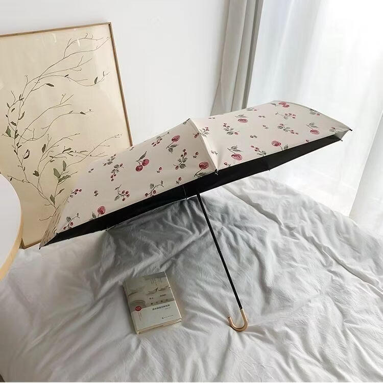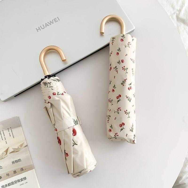 沃有家法式弯钩雨伞晴雨两用女手动防晒防紫外线遮太阳伞三八女神节礼物 复古樱桃弯钩三折黑胶8K手动