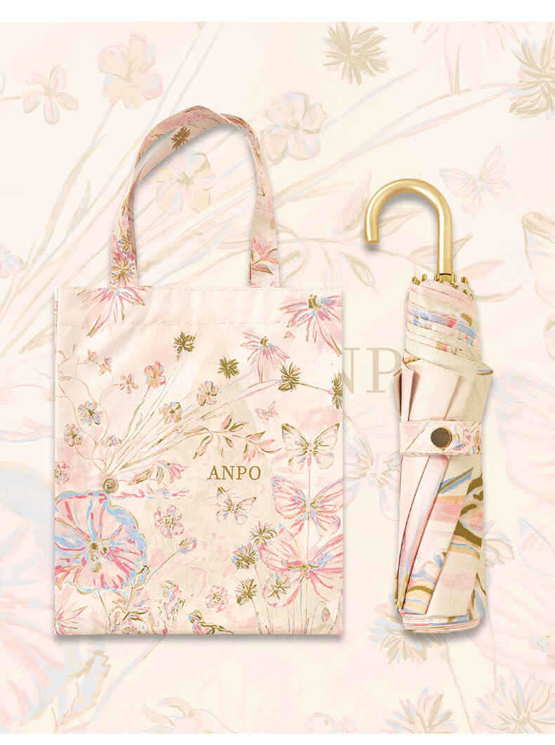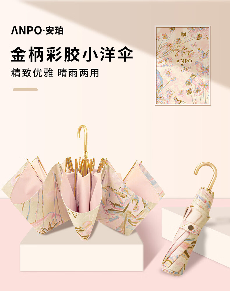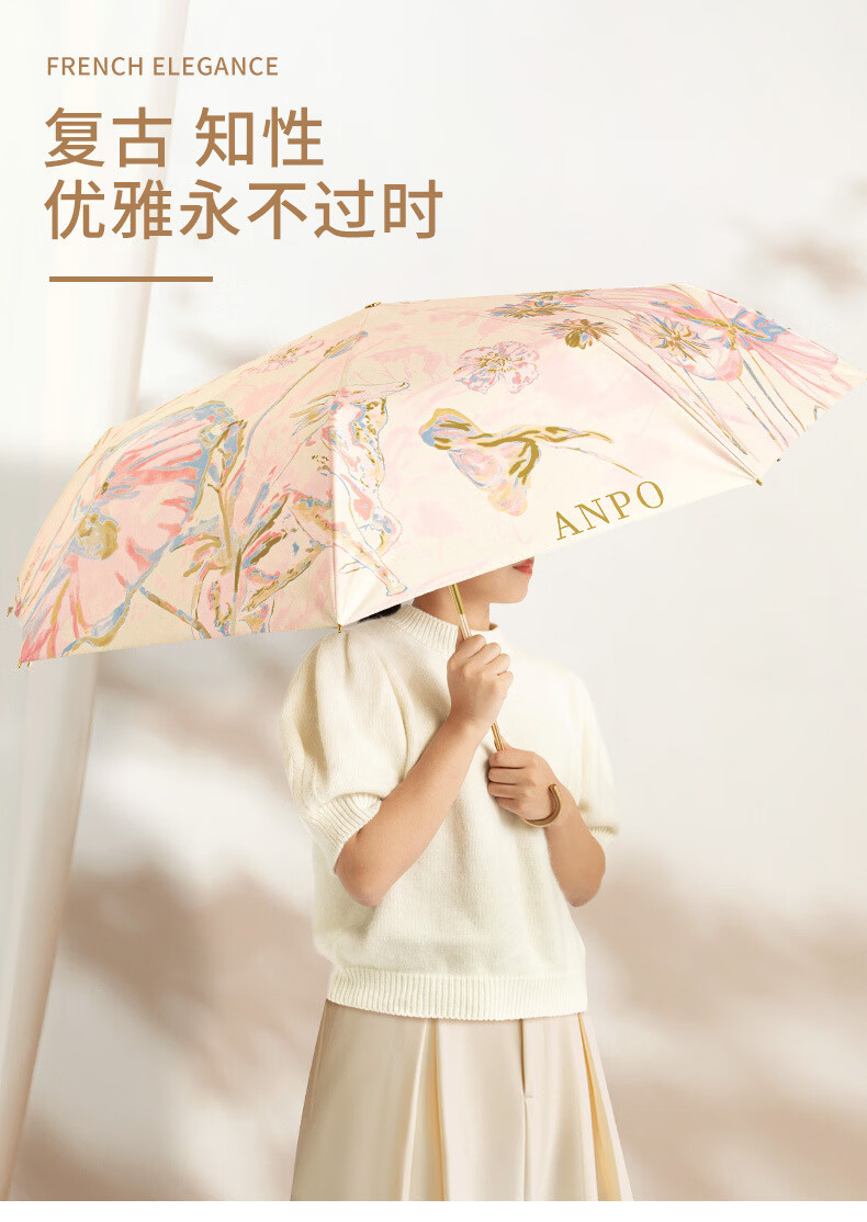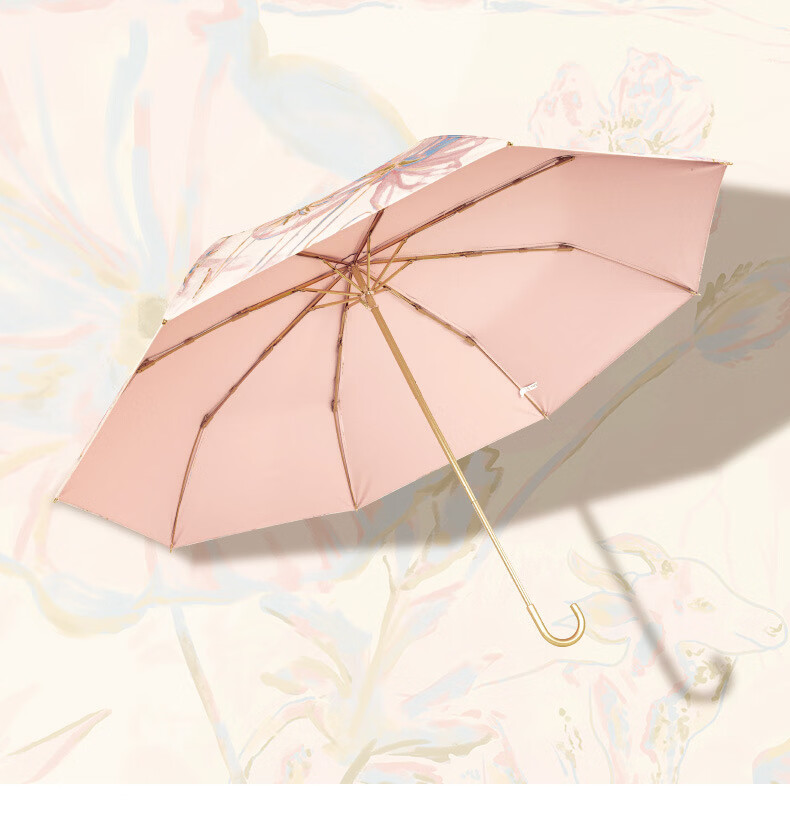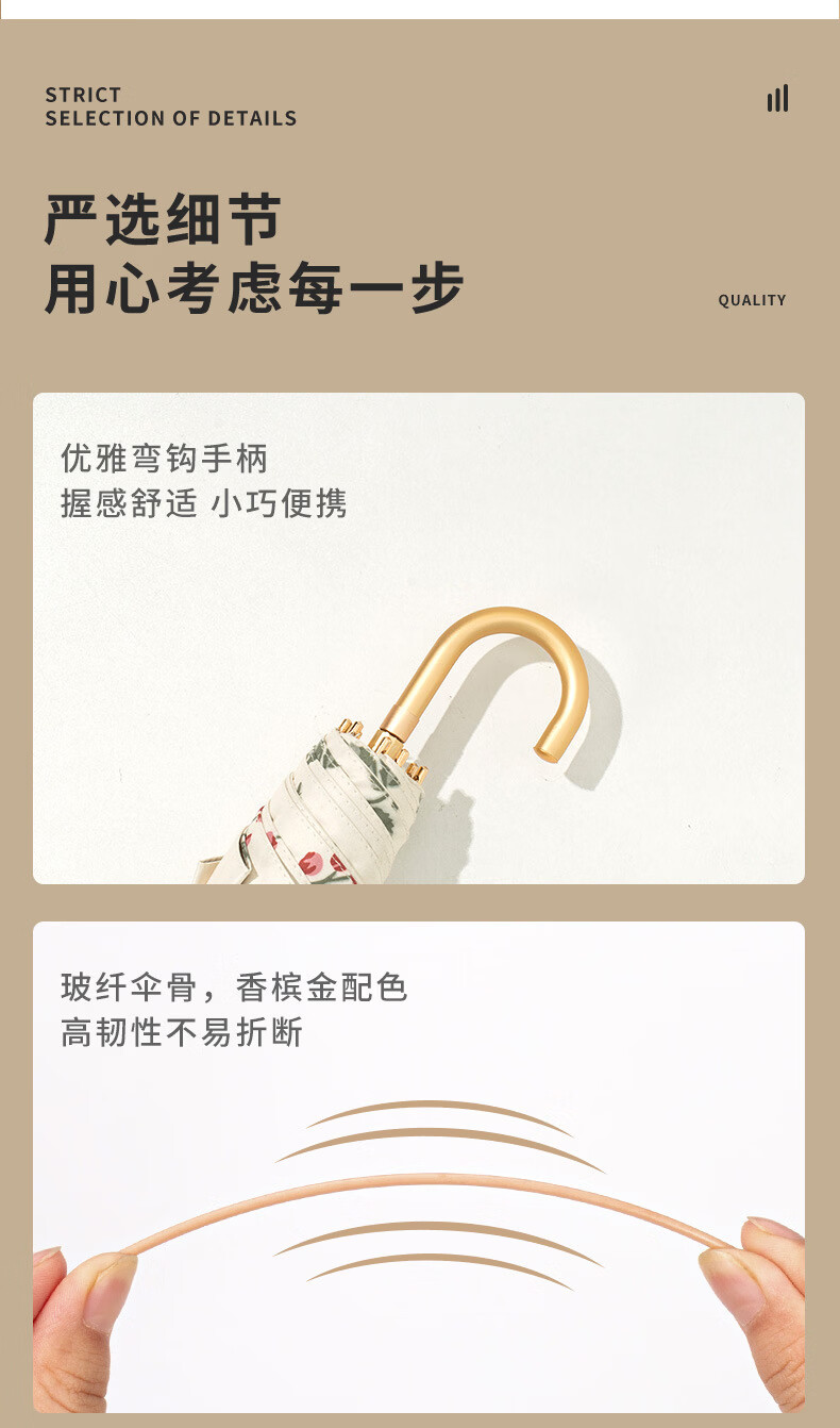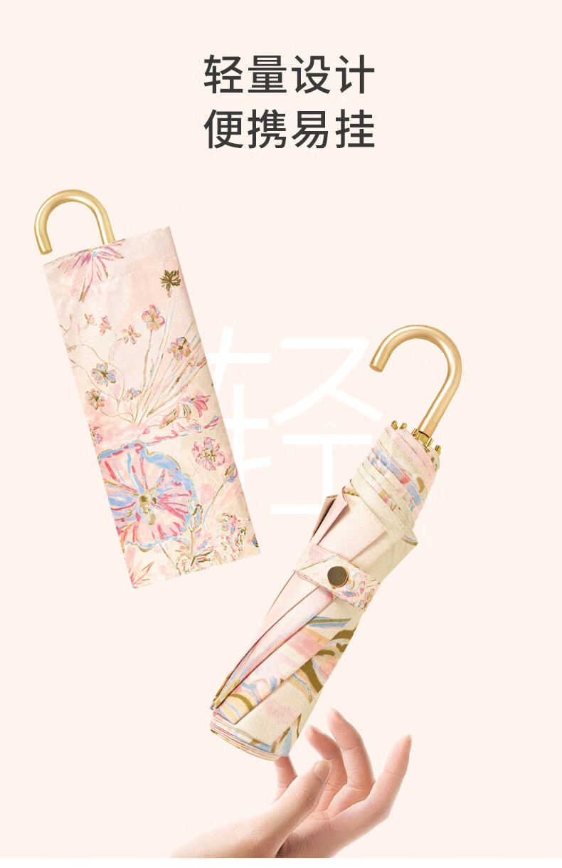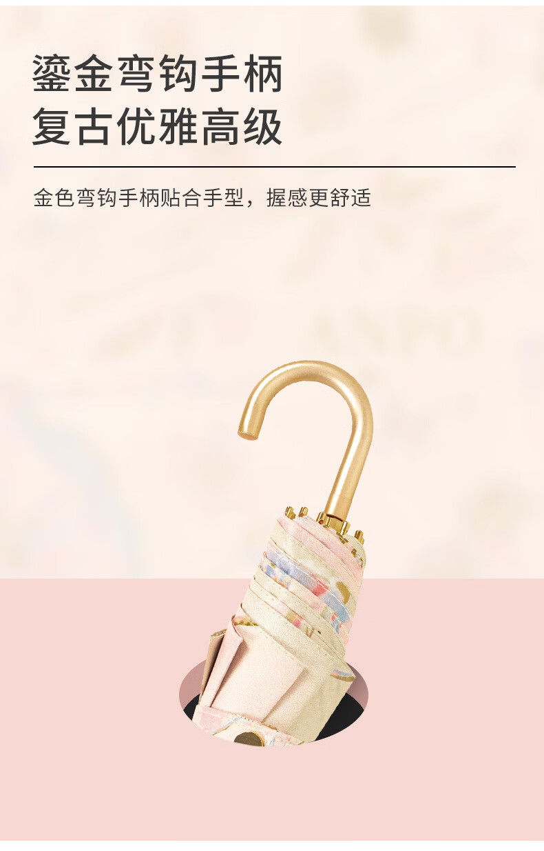 沃有家法式弯钩雨伞晴雨两用女手动防晒防紫外线遮太阳伞三八女神节礼物 复古樱桃弯钩三折黑胶8K手动
