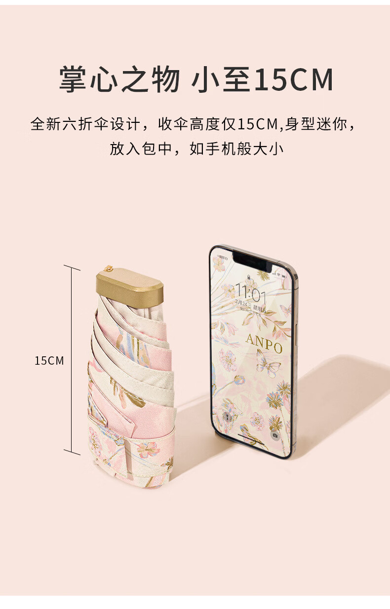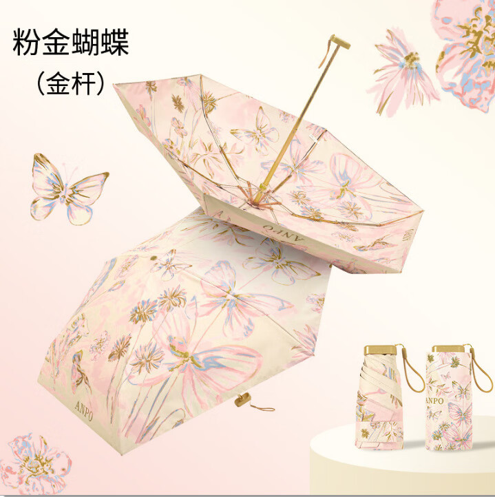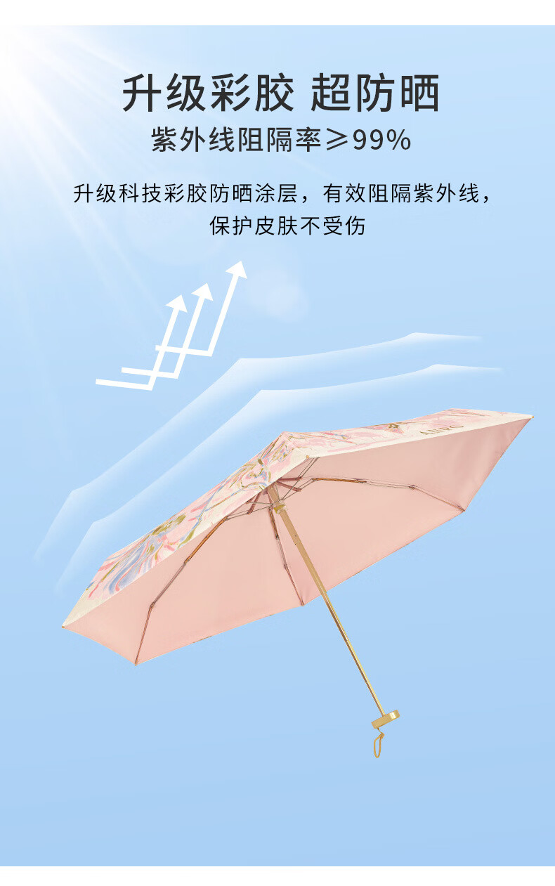 天堂伞超轻小巧便携折叠黑胶防晒防紫外线口袋遮阳伞女晴雨伞两用 流光白