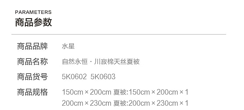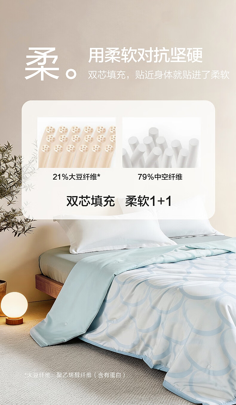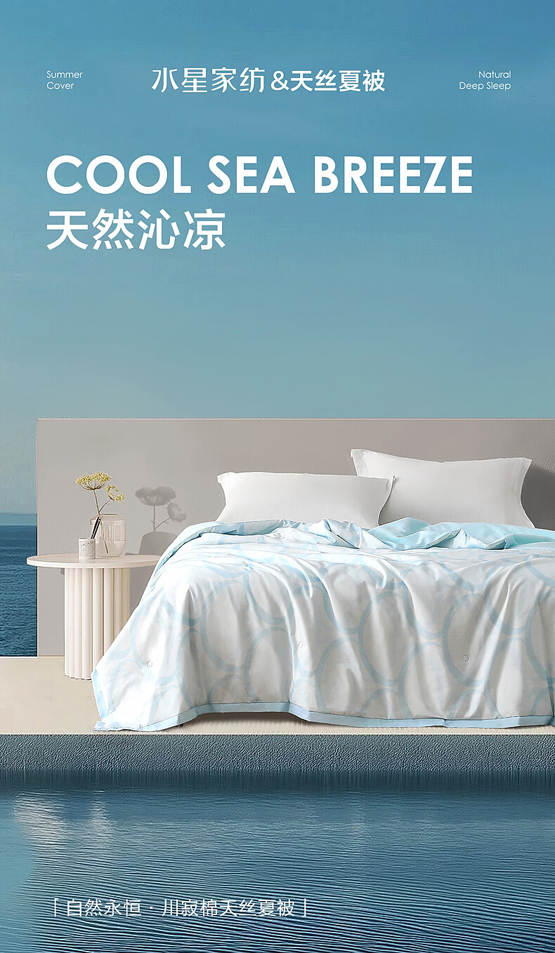 水星家纺大豆被子夏凉被单人空调被凉感天丝™棉可机洗夏季薄被 自然永恒·川寂棉天丝夏被 150cm*200cm