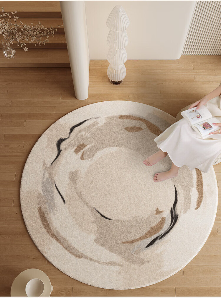像素圆形地毯卧室客厅2025新款高级感衣帽间地垫奶油风书房沙发椅子垫 花寻集-20049 定制咨询不退不换