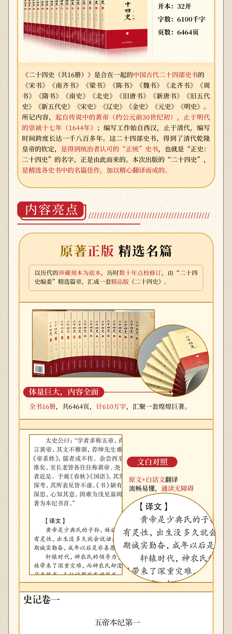 【新华正版包邮】二十四史 全套16册 文白对照 精注精译版 全新修订收藏本 610万字煌煌巨著 一套书读懂中国五千年历史 历史书关联阅读自选 二十四史 全套16册 文白对照精注精译 修订收藏本