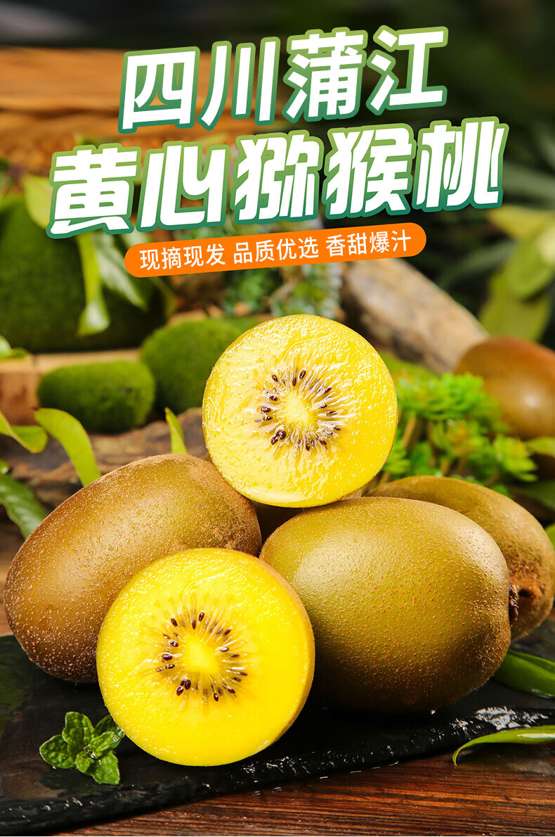 酷果汇黄心猕猴桃四川金果黄金奇异果新鲜水果生鲜 15枚中果(单果70-90g)