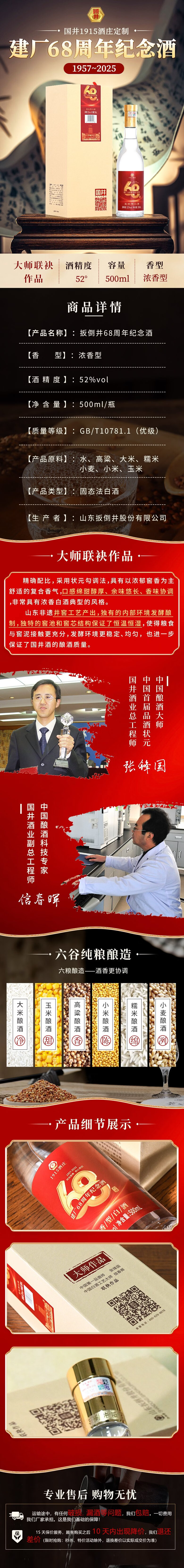 国井白酒 52度建厂68周年纪念酒纯粮酿造浓香型 礼盒包装送礼自饮白酒 52度 500mL 2瓶 国井68周年纪念酒(搭配手提袋)
