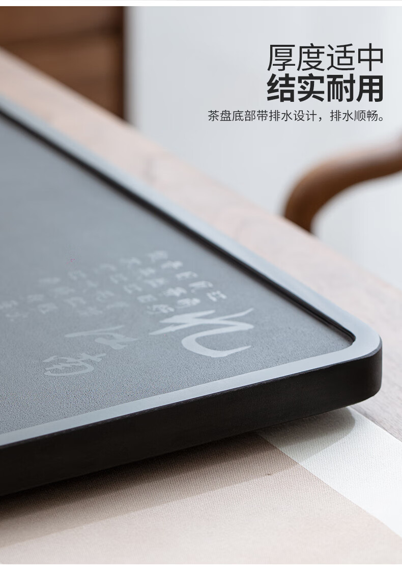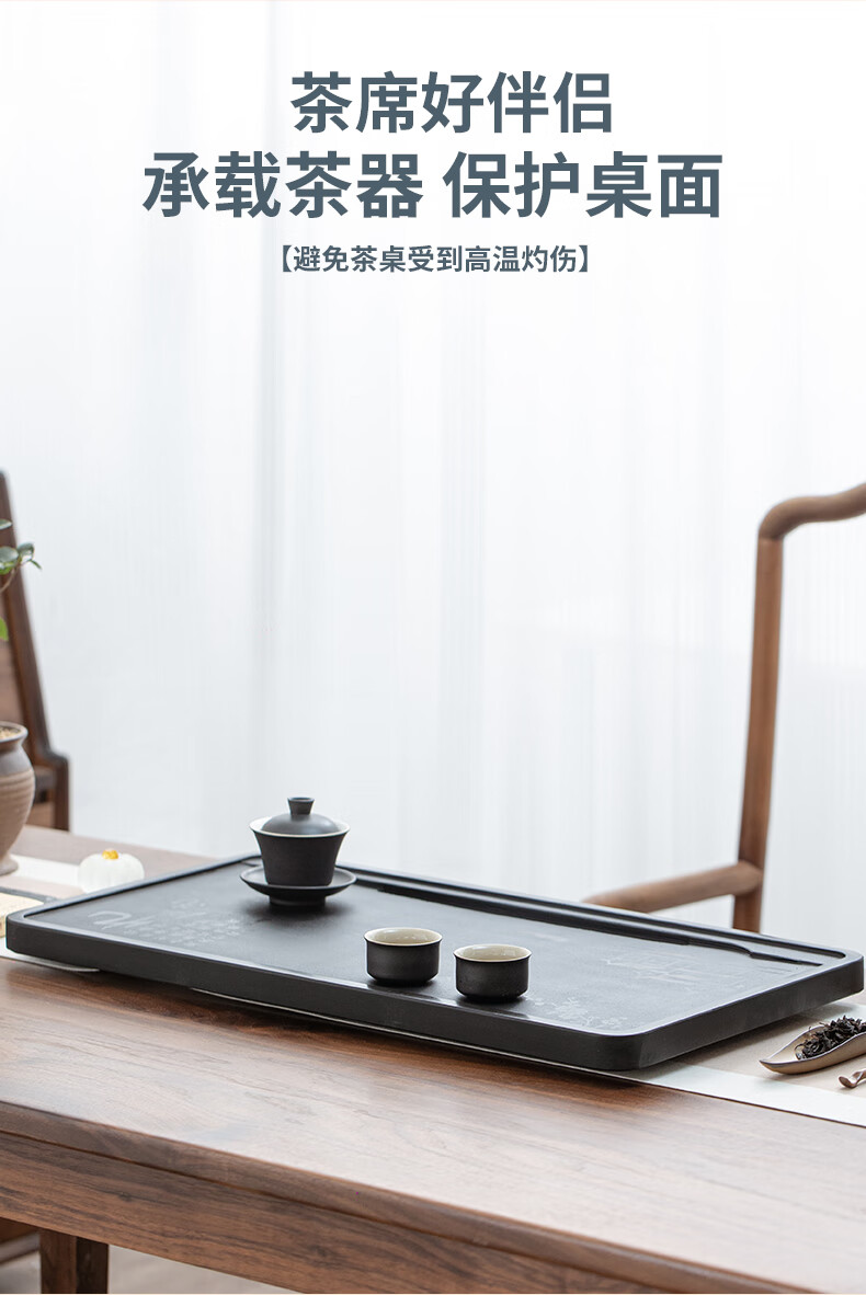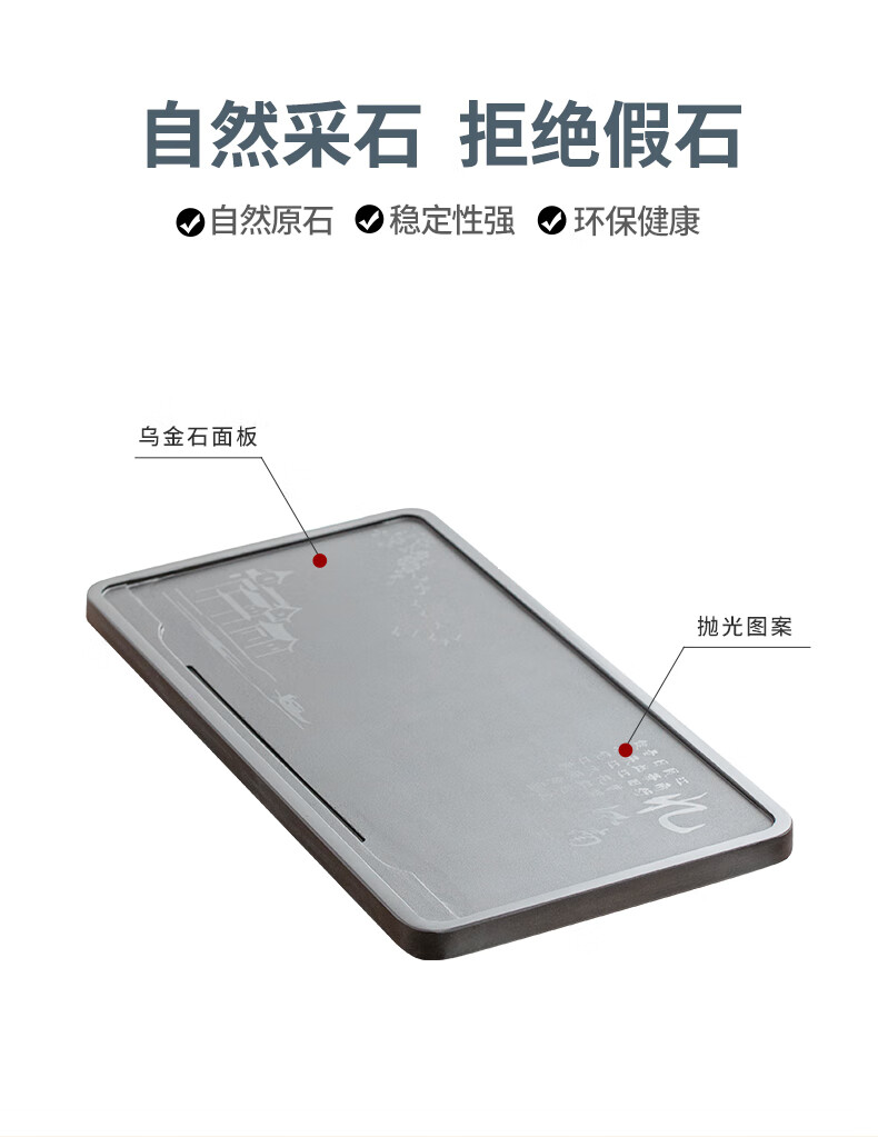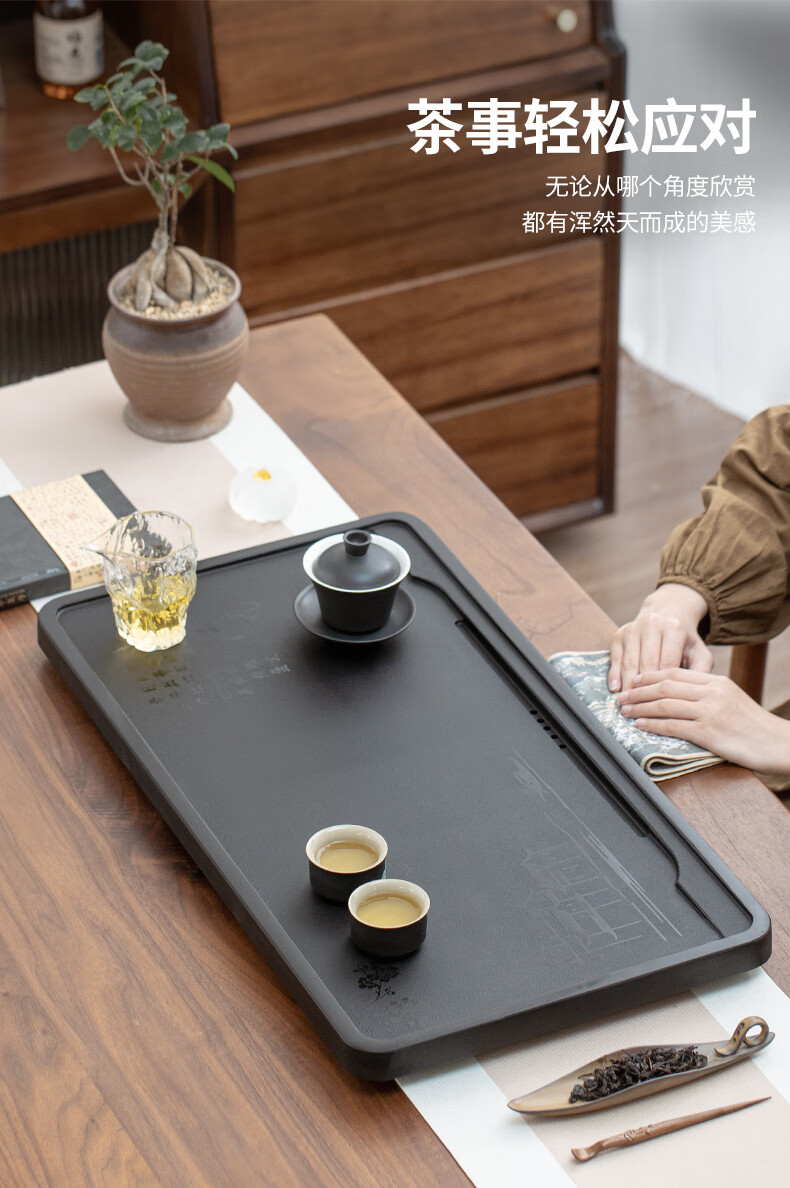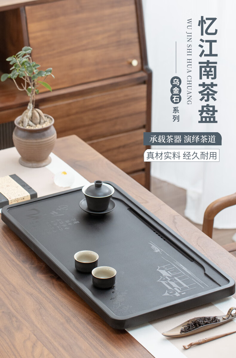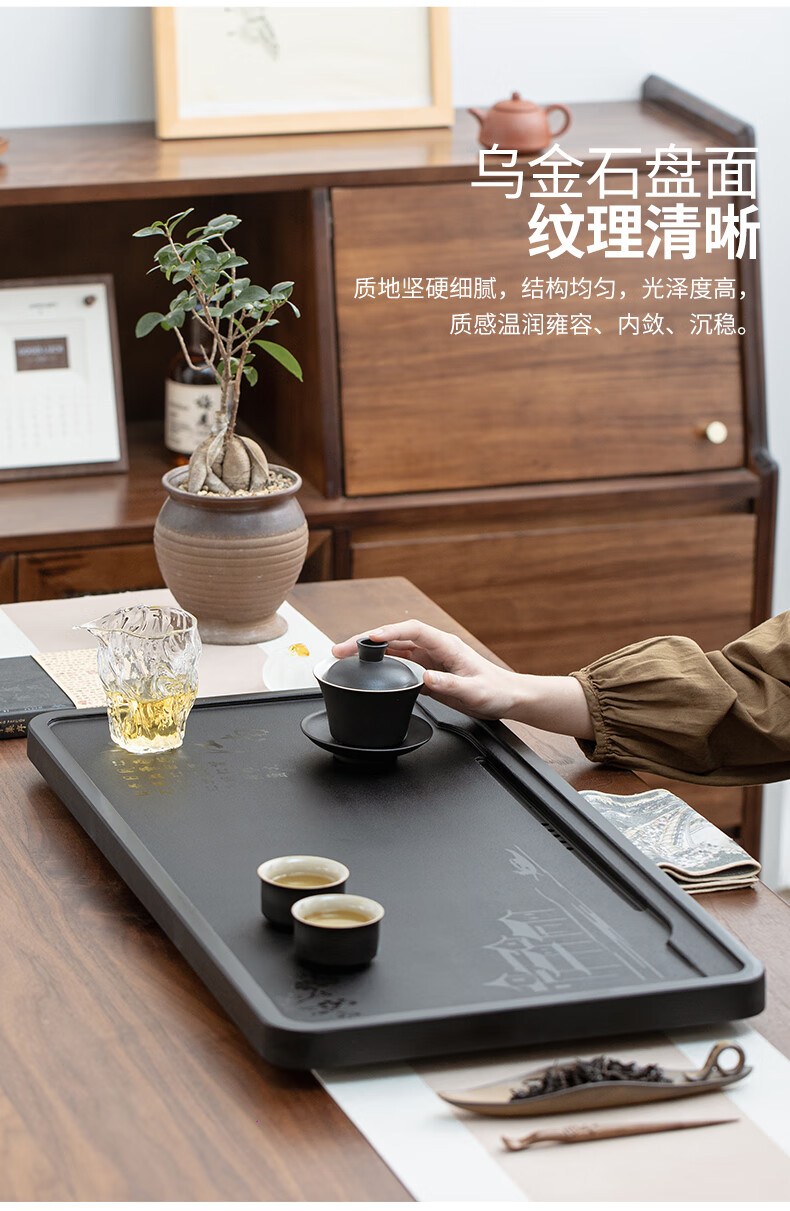 希格鲨天然乌金石茶盘家用简约现代商用整块单盘黑石头茶台石盘茶海 忆江南120*60*3cm