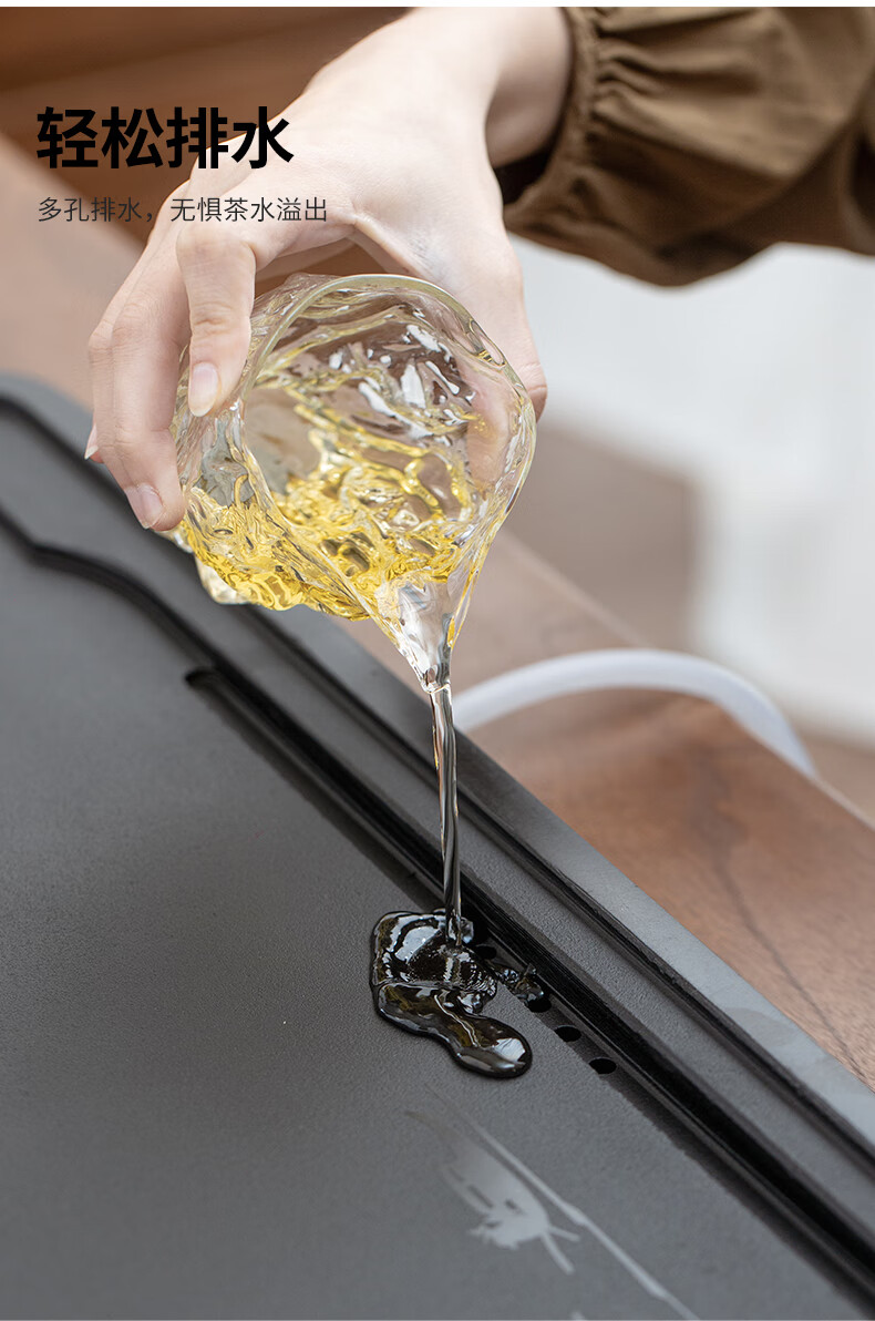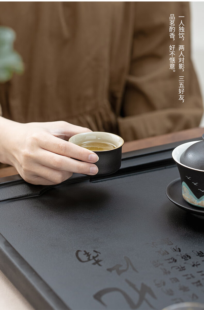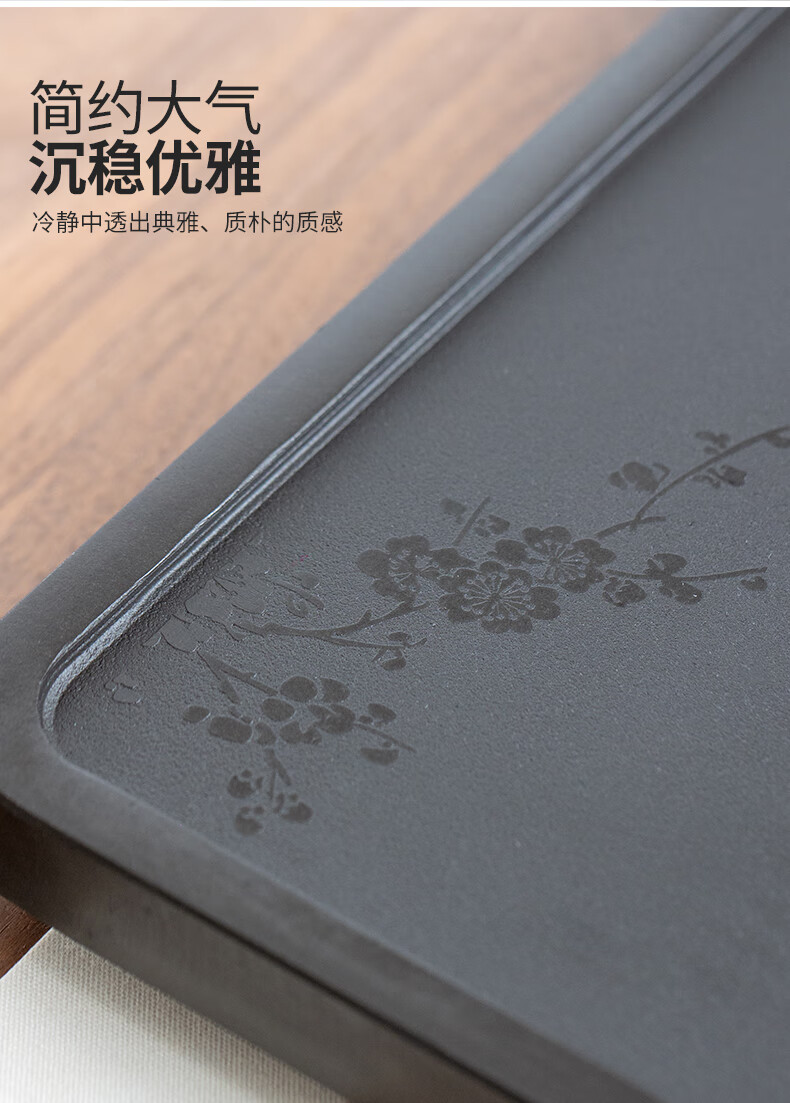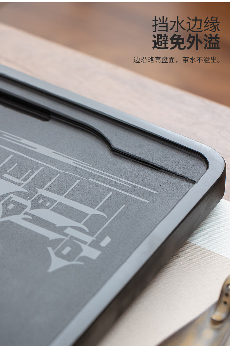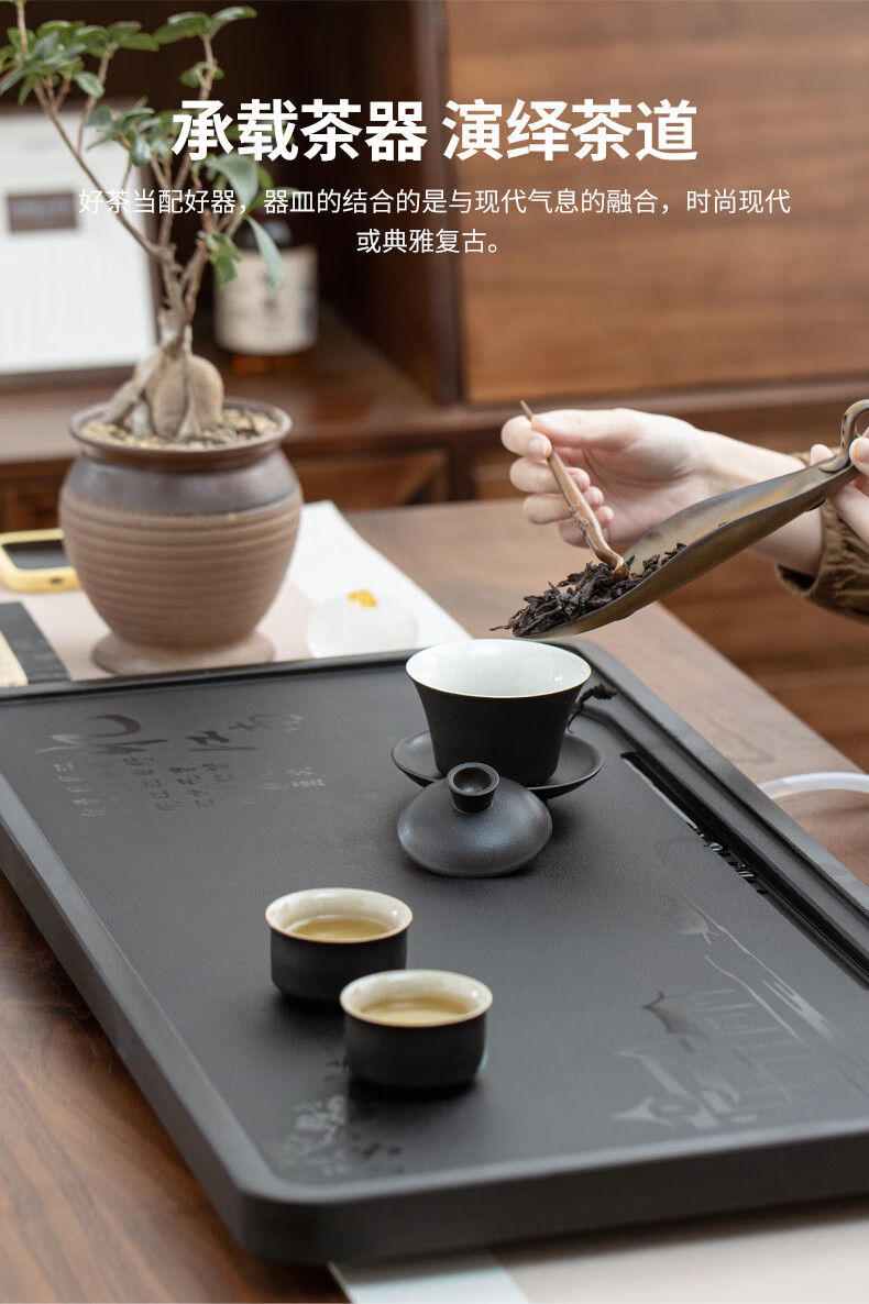 希格鲨天然乌金石茶盘家用简约现代商用整块单盘黑石头茶台石盘茶海 忆江南120*60*3cm