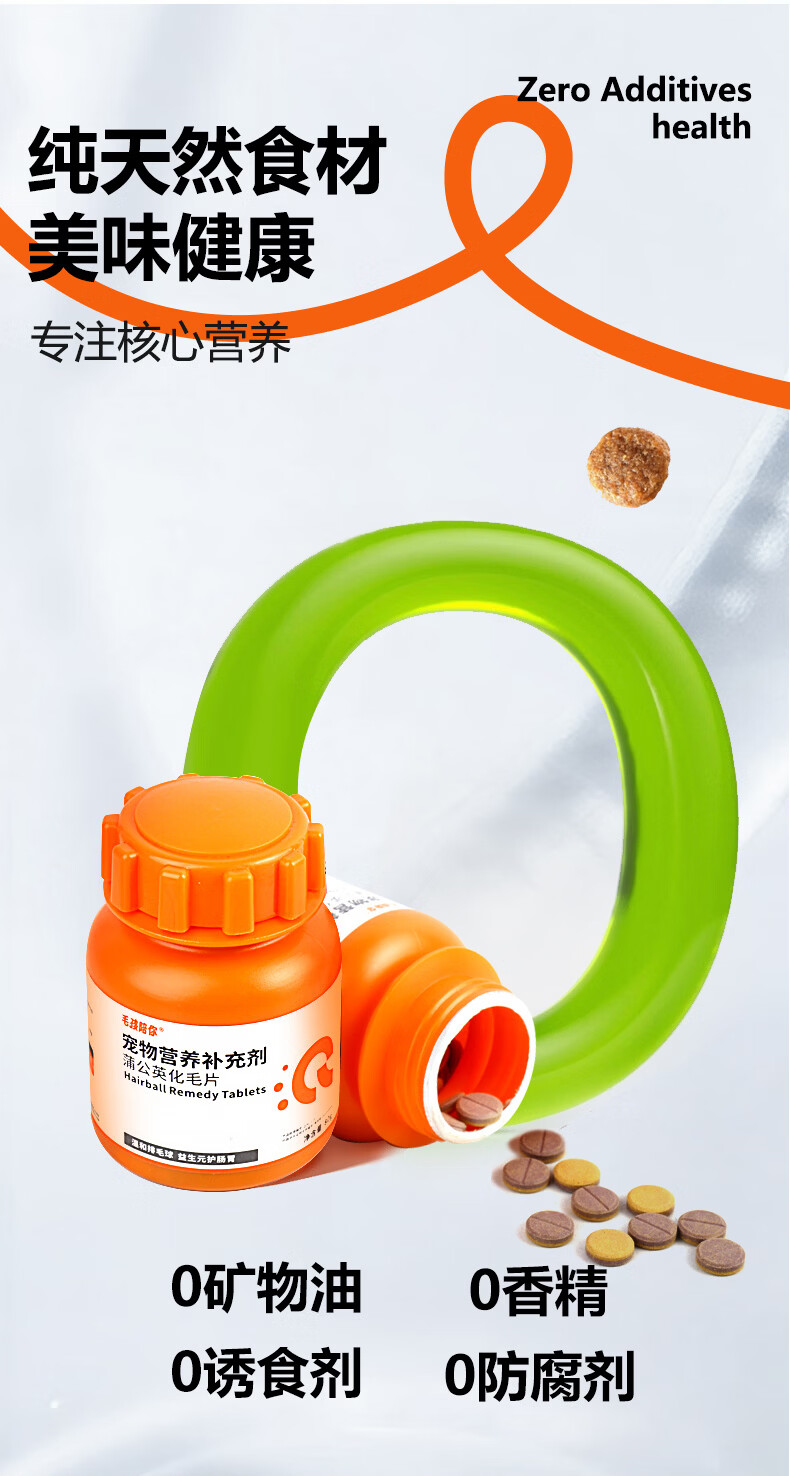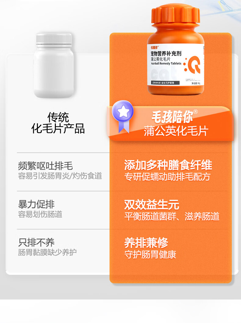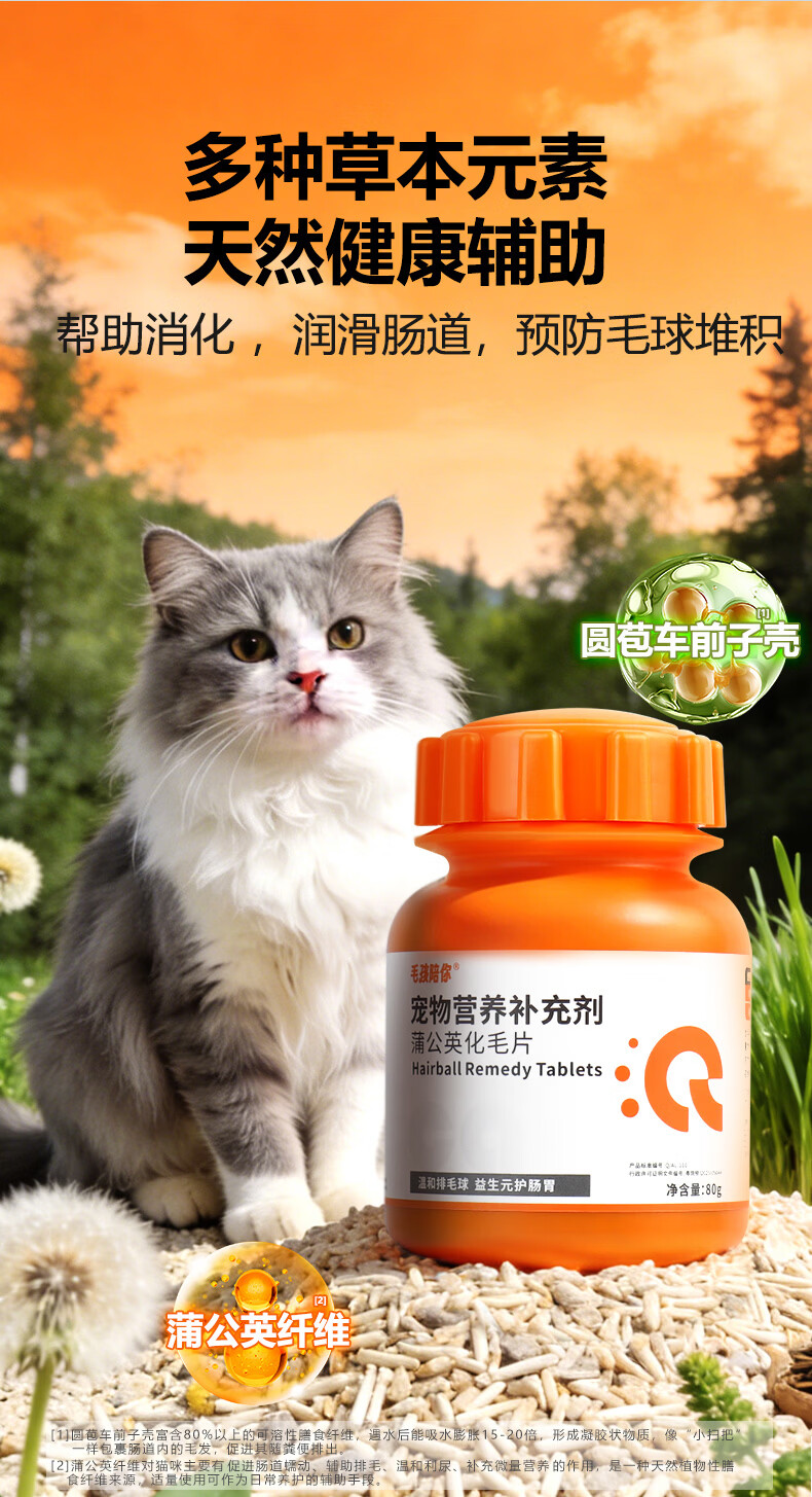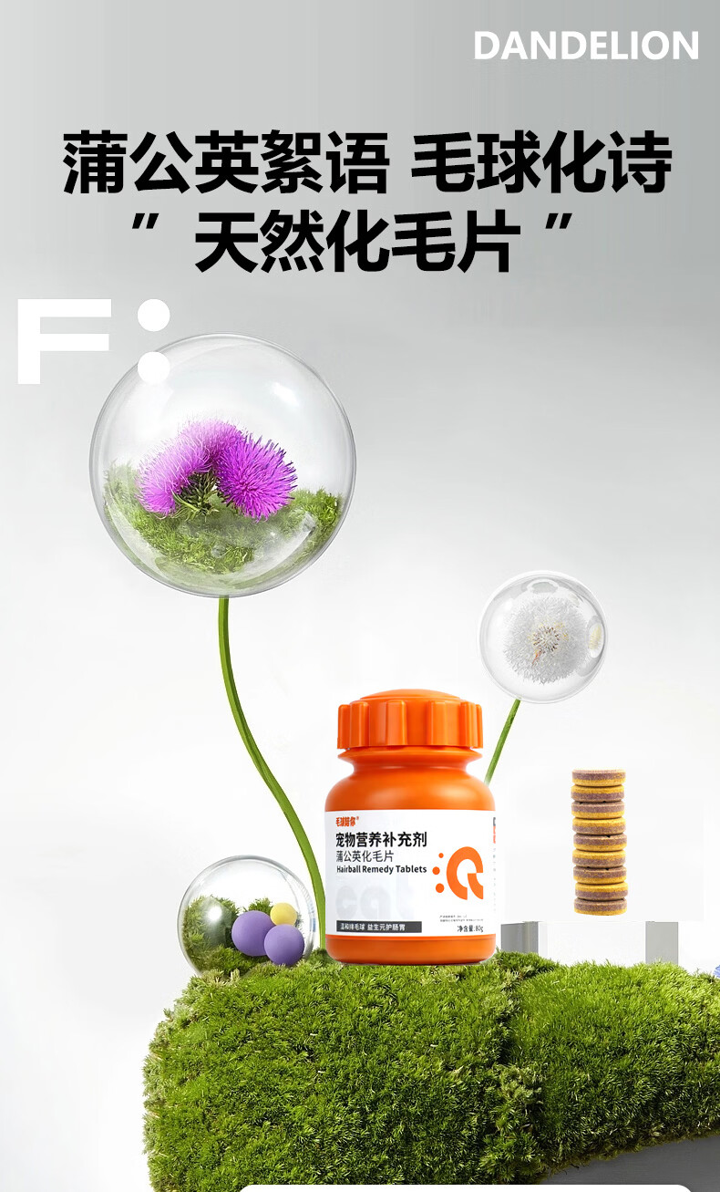 毛孩陪你蒲公英化毛猫咪片化毛球片猫草片化毛膏猫咪宠物营养补充剂 【尝鲜体验】蒲公英化毛片 80g*1瓶