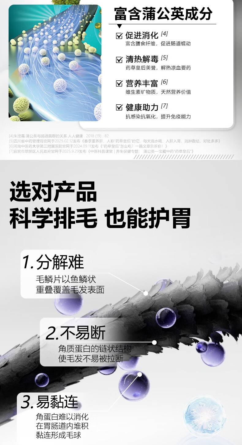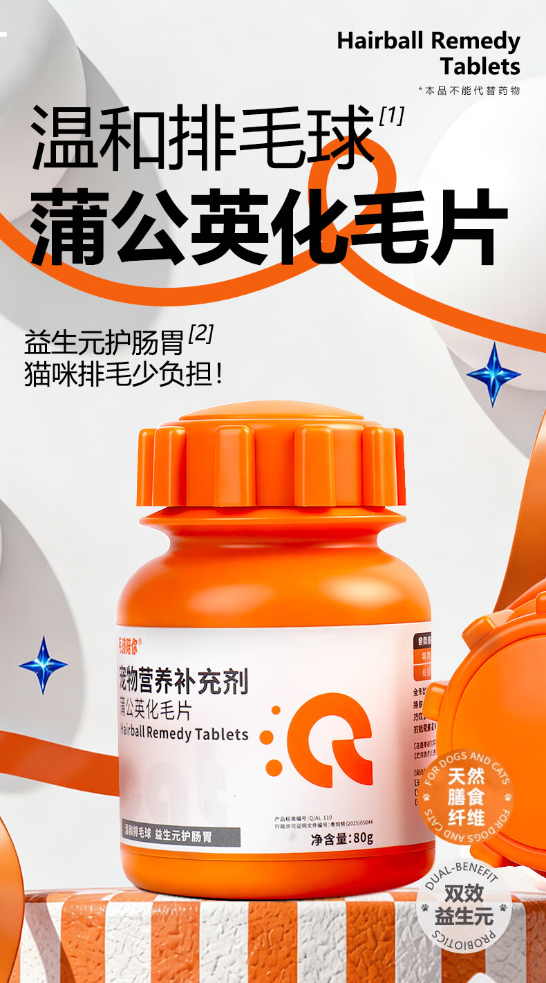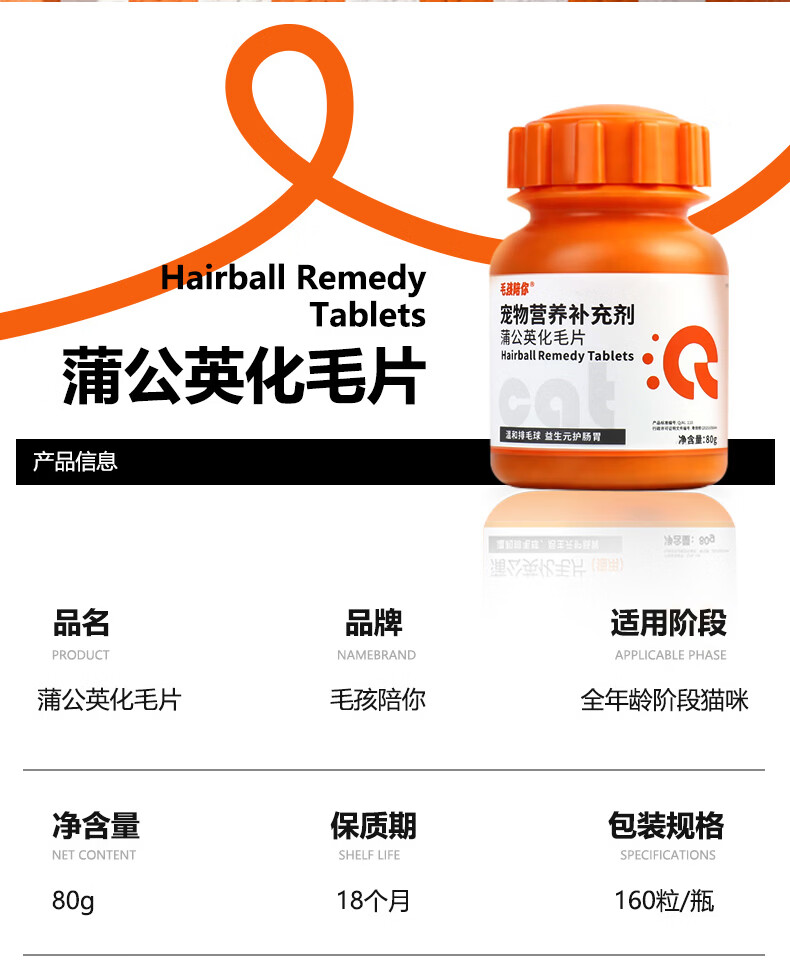 毛孩陪你蒲公英化毛猫咪片化毛球片猫草片化毛膏猫咪宠物营养补充剂 【尝鲜体验】蒲公英化毛片 80g*1瓶