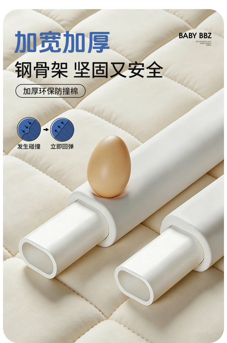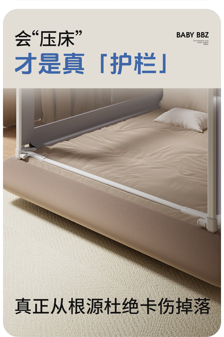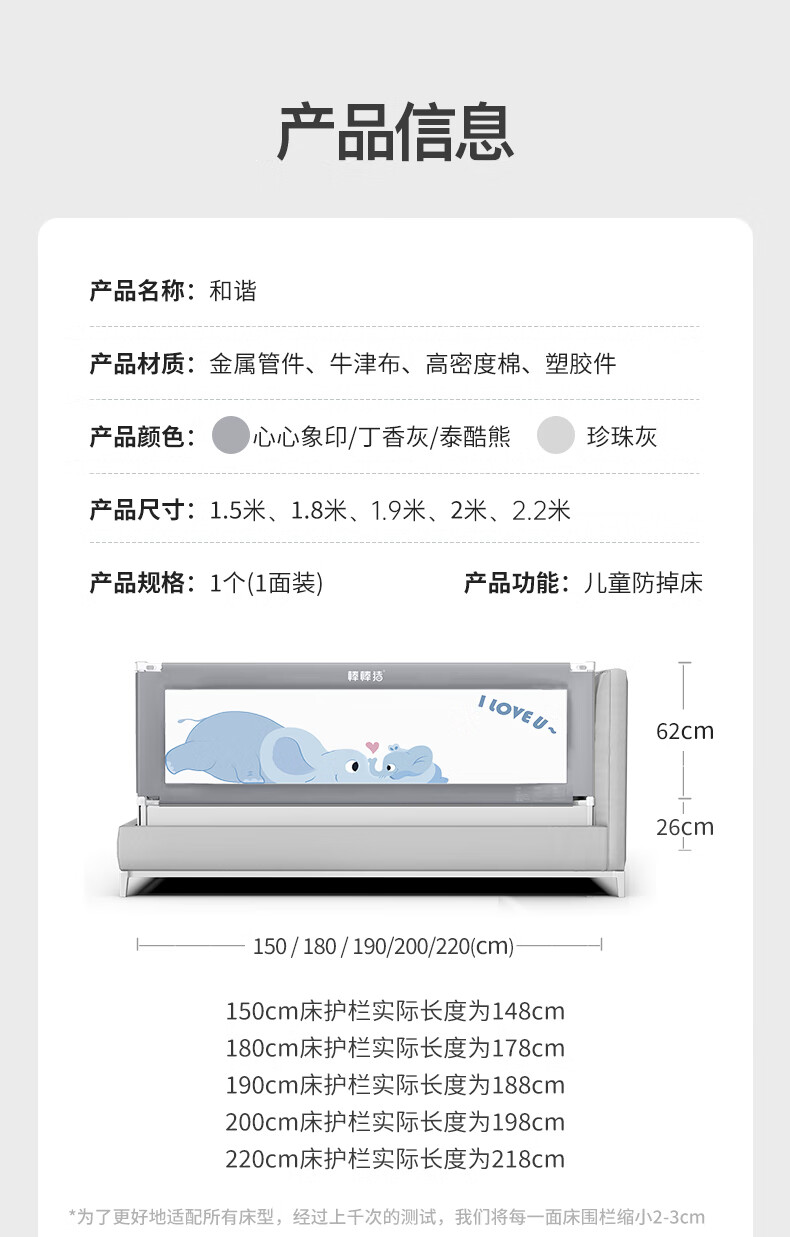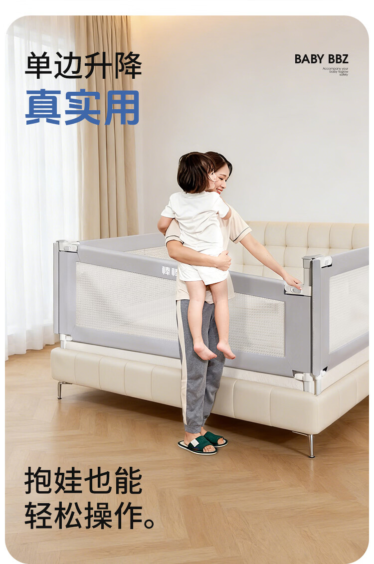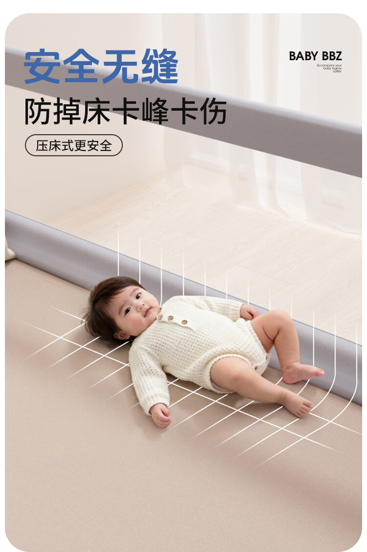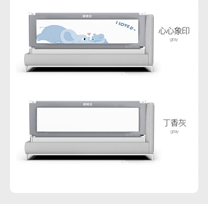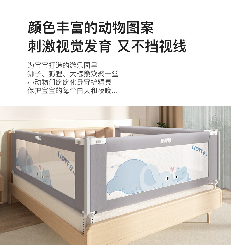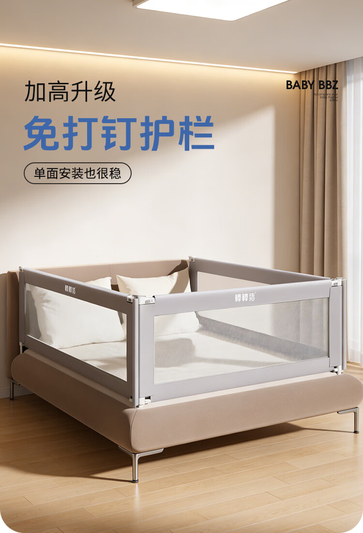 棒棒猪 (BabyBBZ)婴儿床围栏床上儿童防掉床护栏宝宝防摔防护栏垂直升降 免打钉/心心象 三面装 1.8m+2m*2