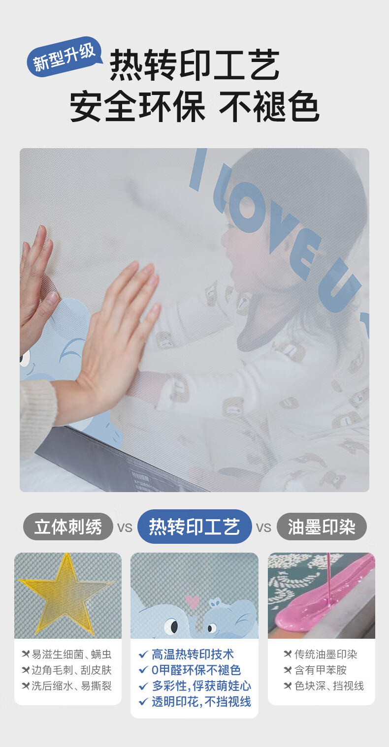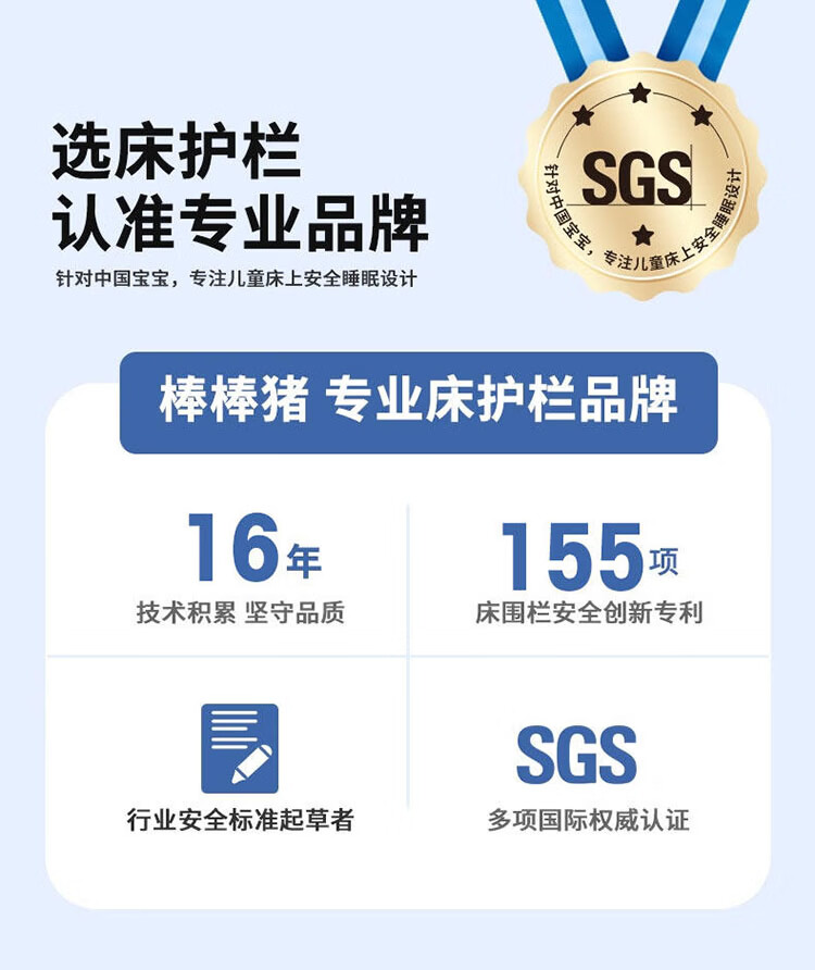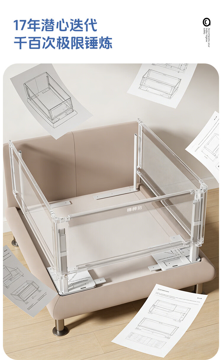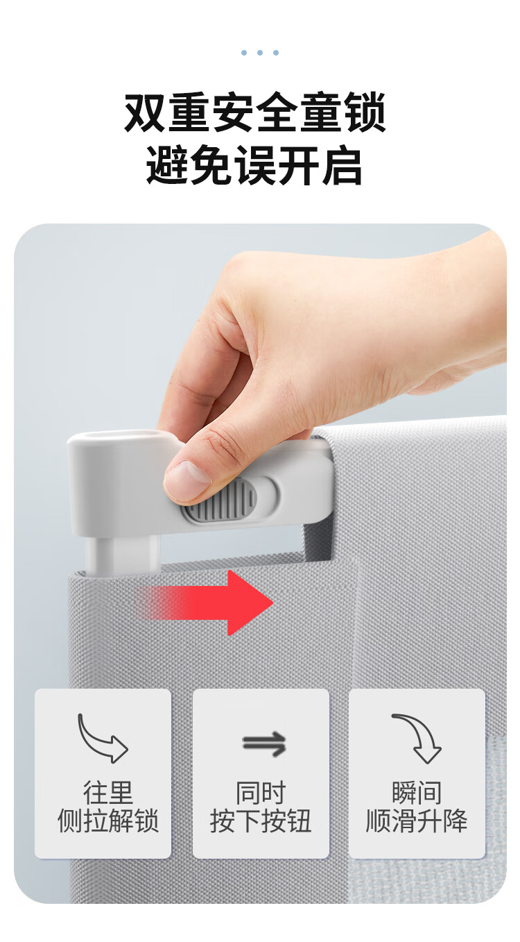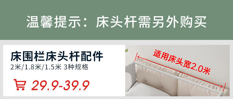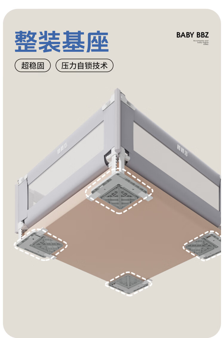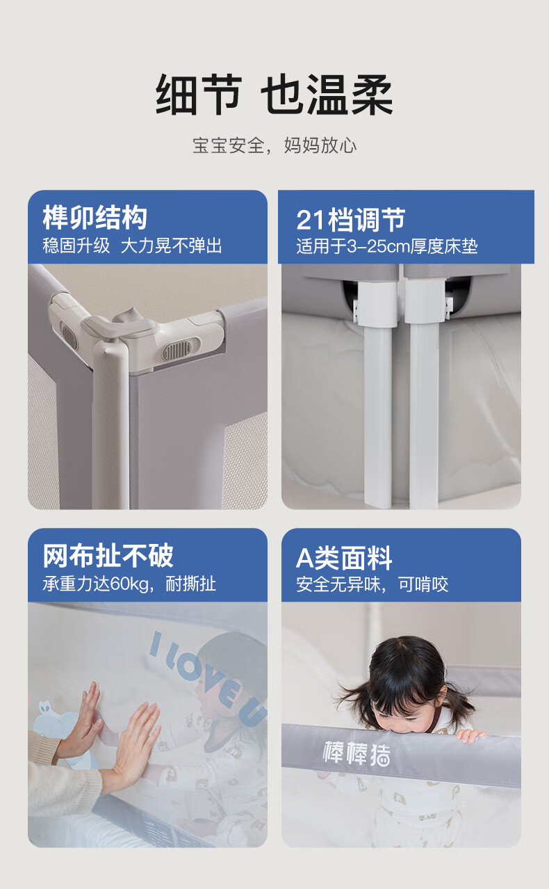 棒棒猪 (BabyBBZ)婴儿床围栏床上儿童防掉床护栏宝宝防摔防护栏垂直升降 免打钉/心心象 三面装 1.8m+2m*2