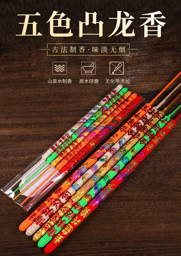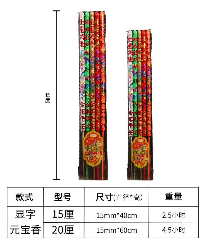 五路财神香佛香檀香观音香竹签香棒香佛香熏香五色香财神供香供台寺庙香 五色财神香 20mm*60cm