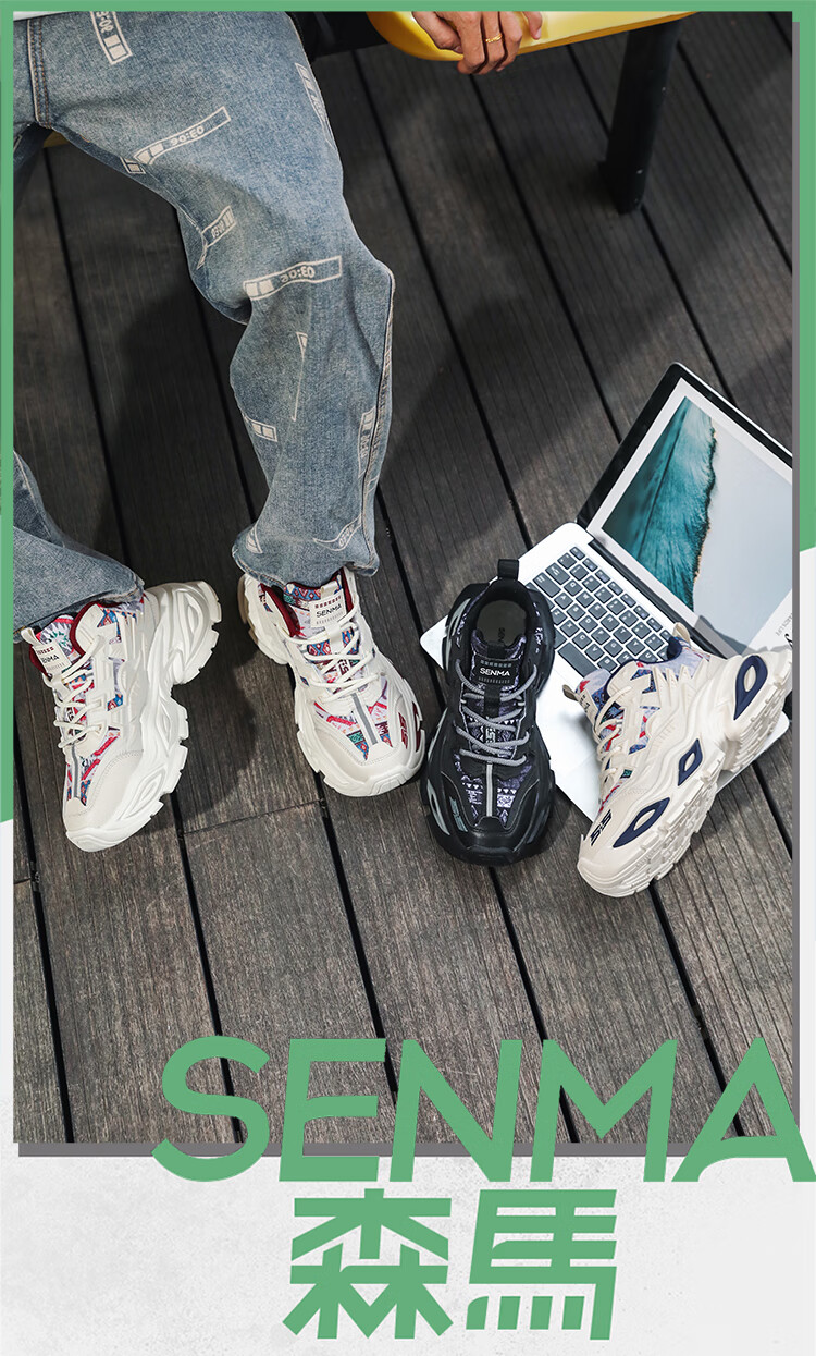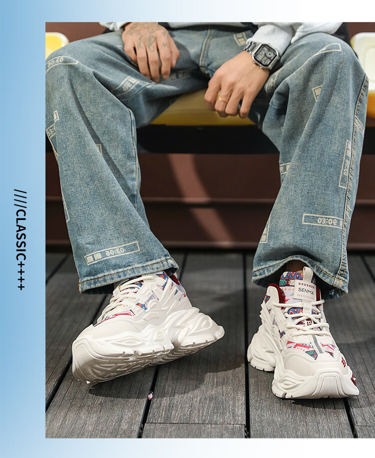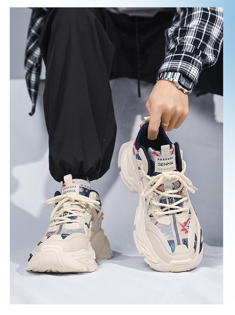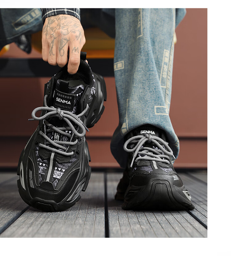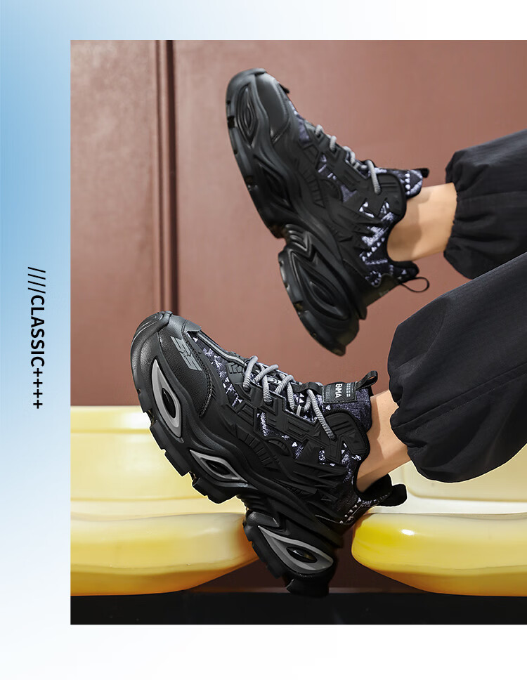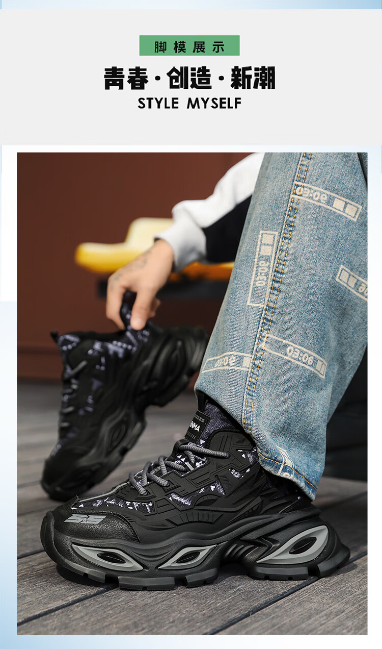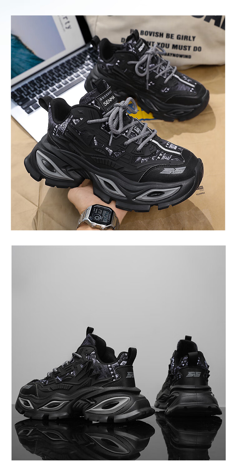 森馬男鞋2026新款春秋季黑武士厚底防滑跑步鞋男士增高休闲运动老爹鞋 黑灰【基础款】 39 标准码数/现货秒发