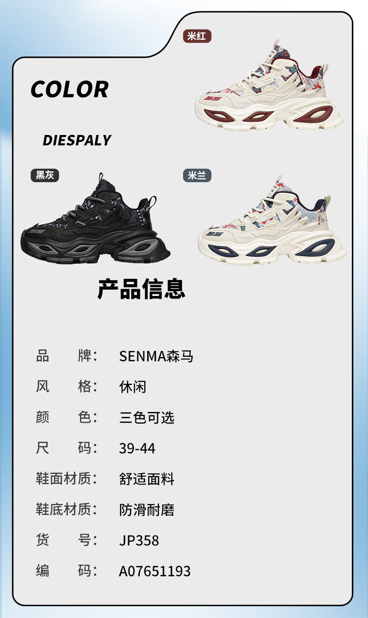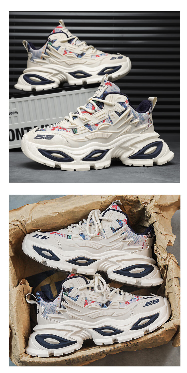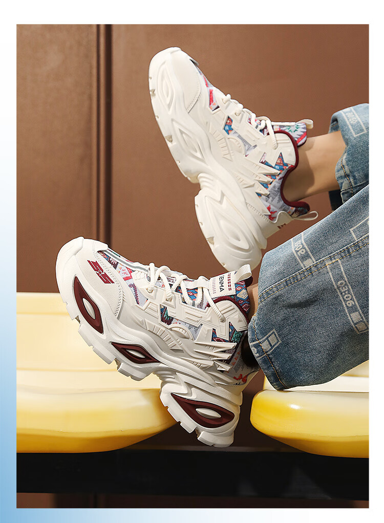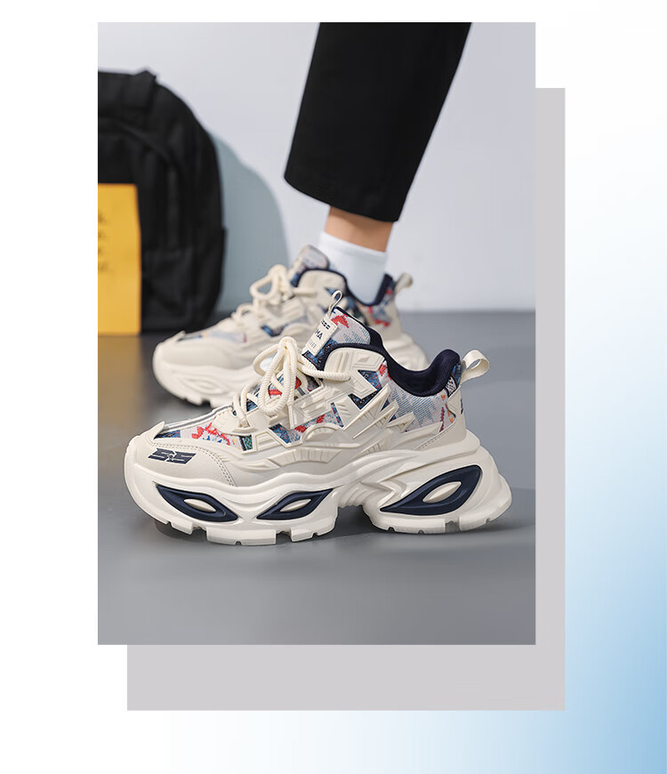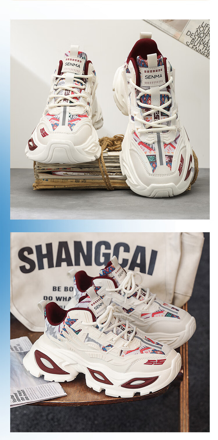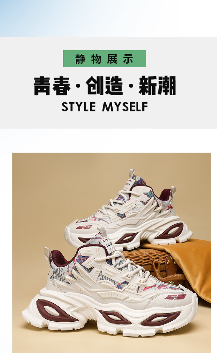 森馬男鞋2026新款春秋季黑武士厚底防滑跑步鞋男士增高休闲运动老爹鞋 黑灰【基础款】 39 标准码数/现货秒发