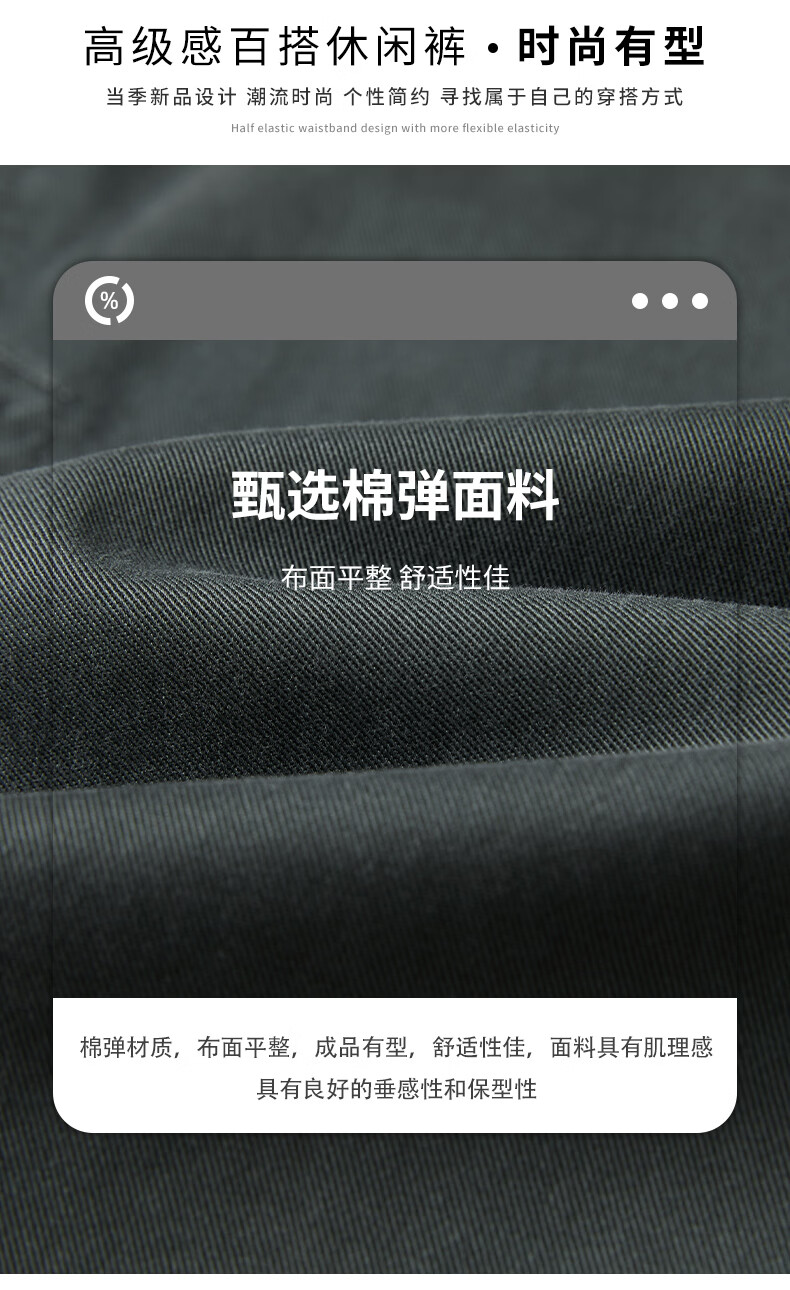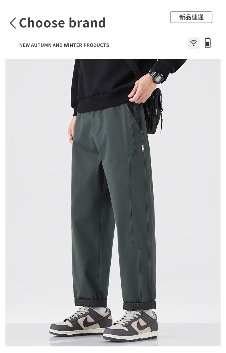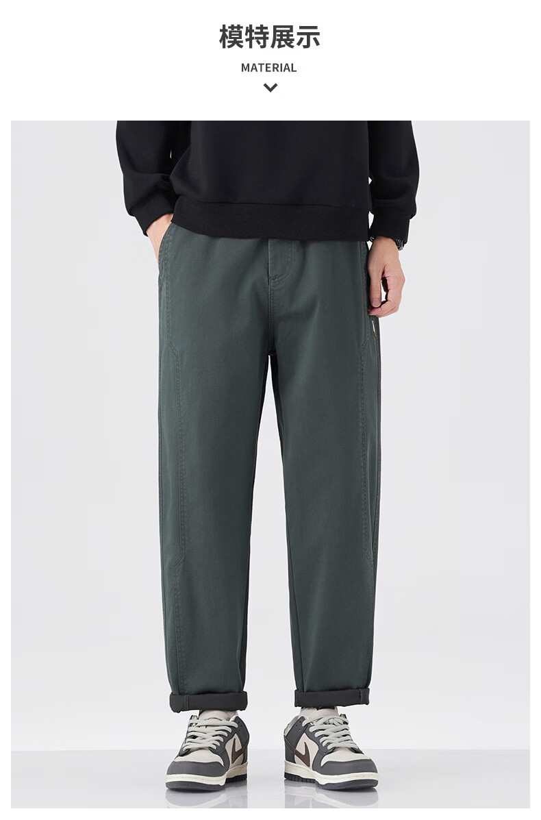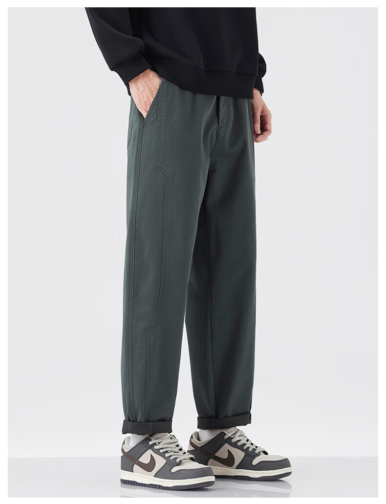 真维斯休闲裤男春秋季锥型宽松直筒裤男2026潮牌棉弹舒适百搭工装裤子男 灰绿色 S