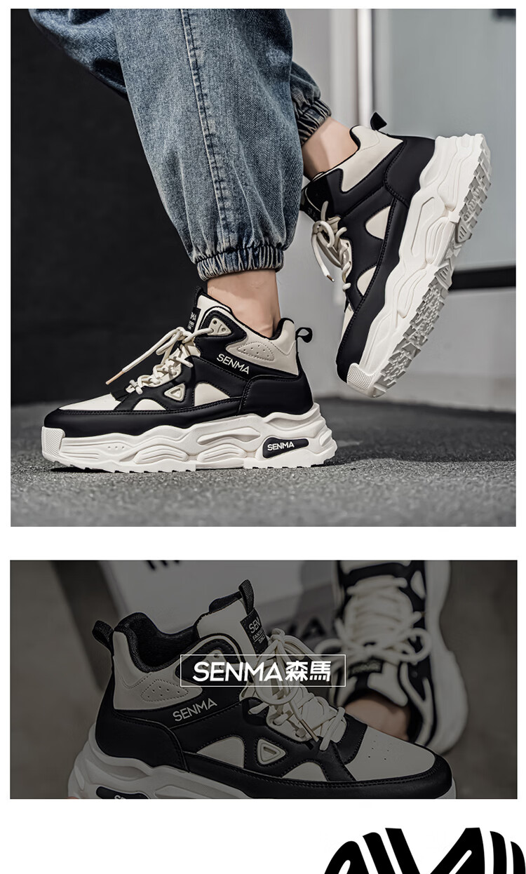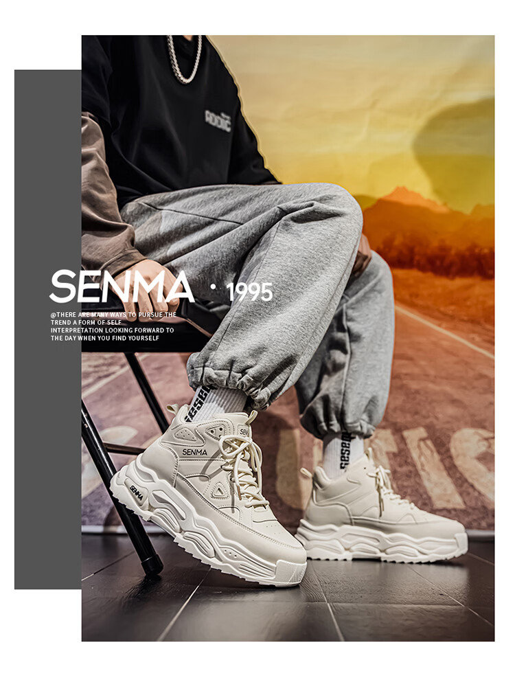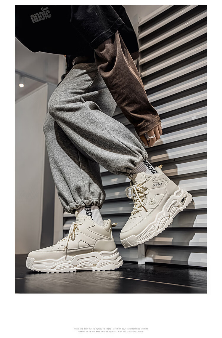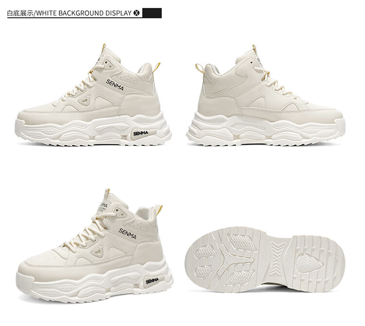 森馬高帮男鞋2026新款春季潮牌休闲板鞋青少年学生防滑厚底增高运动鞋 米色【基础款】 39 标准码数/现货秒发