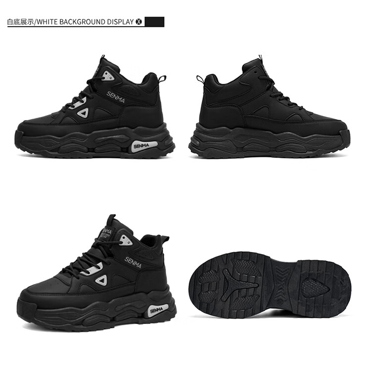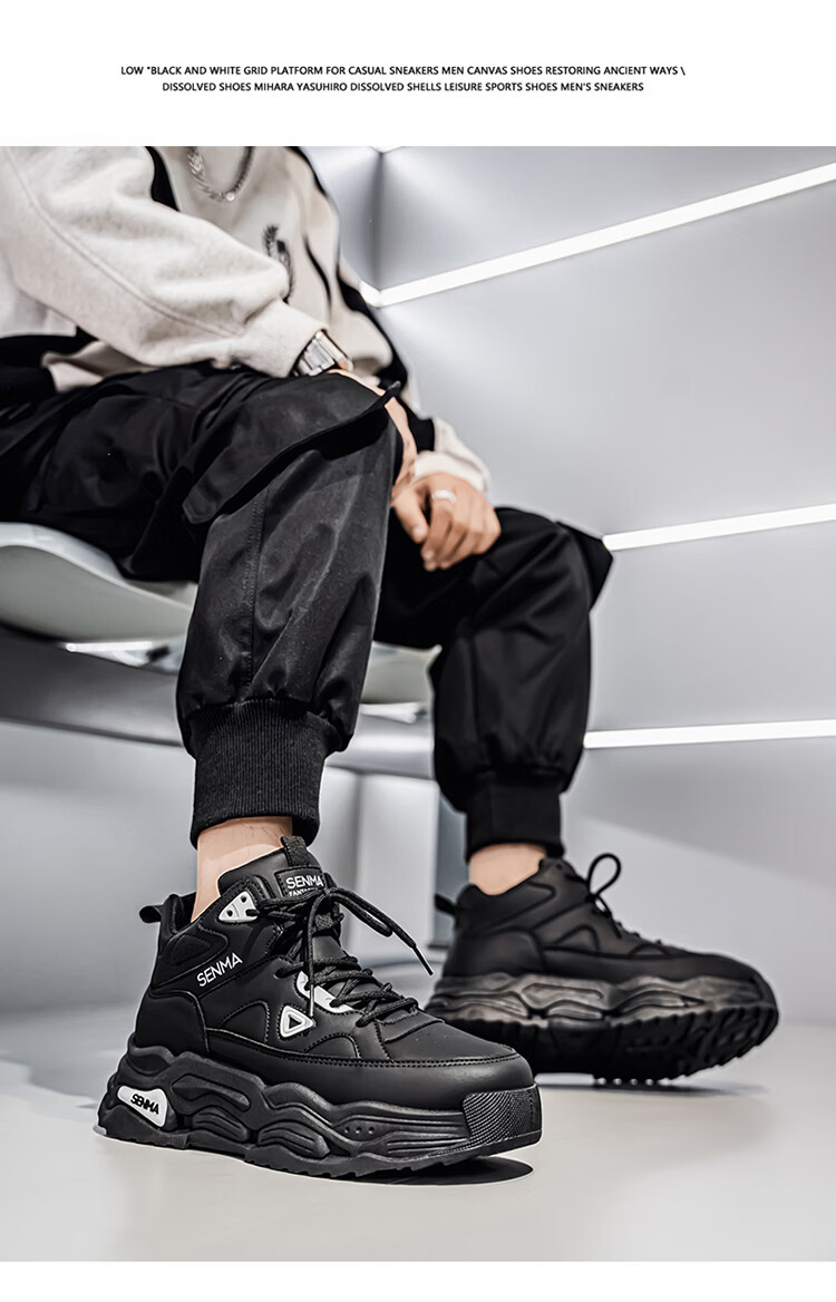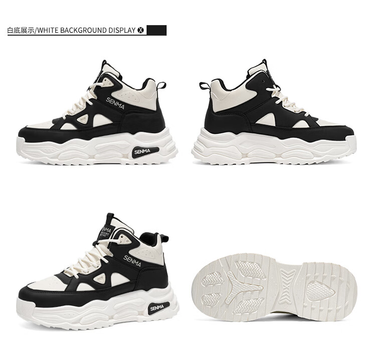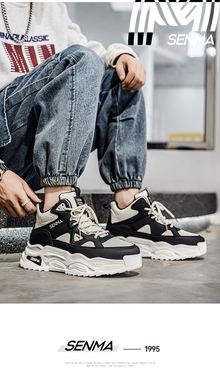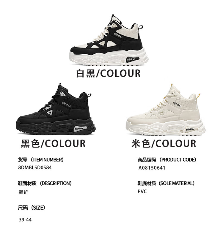 森馬高帮男鞋2026新款春季潮牌休闲板鞋青少年学生防滑厚底增高运动鞋 米色【基础款】 39 标准码数/现货秒发