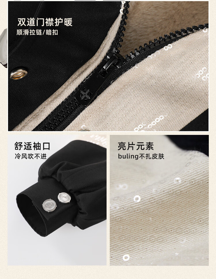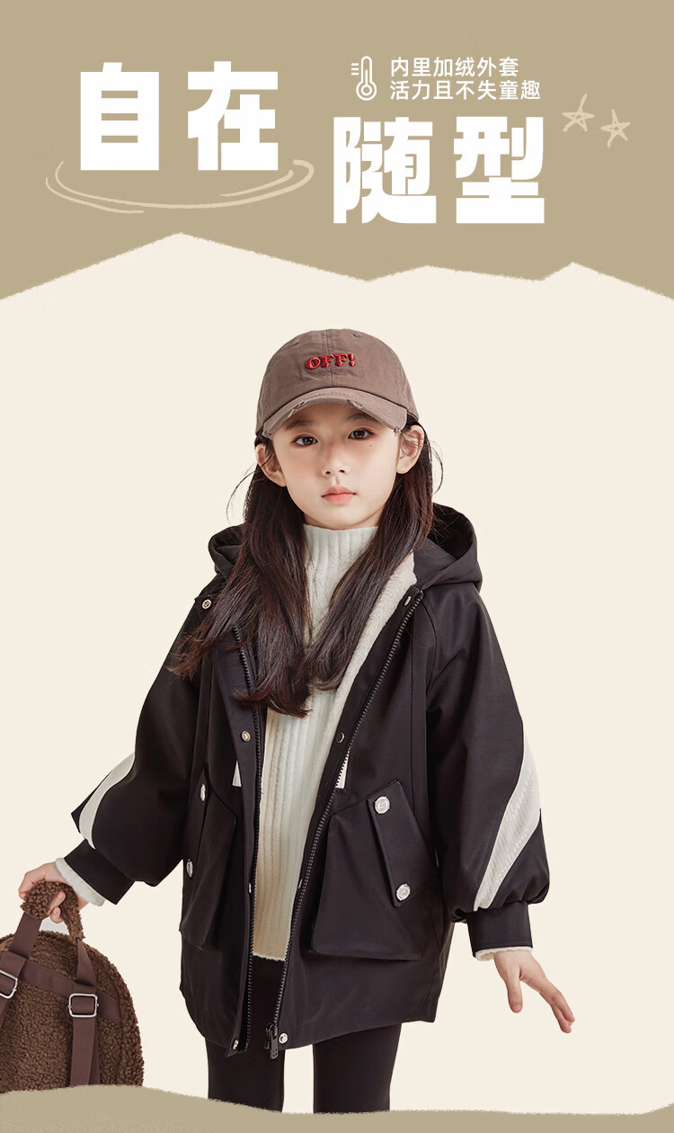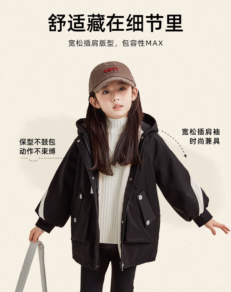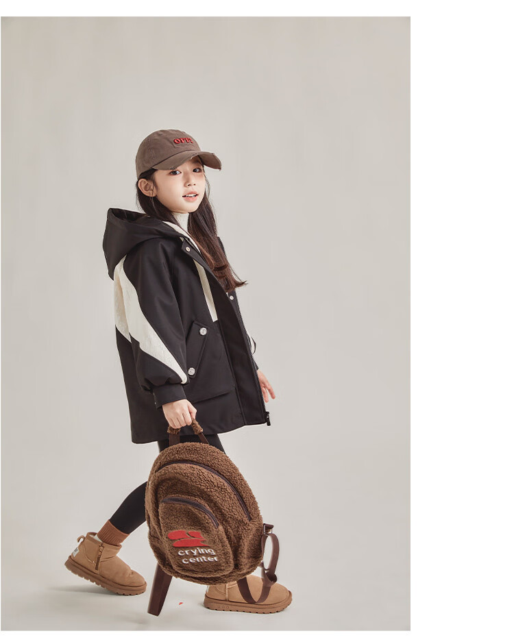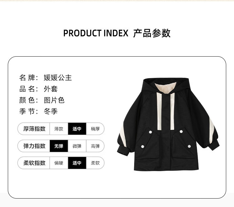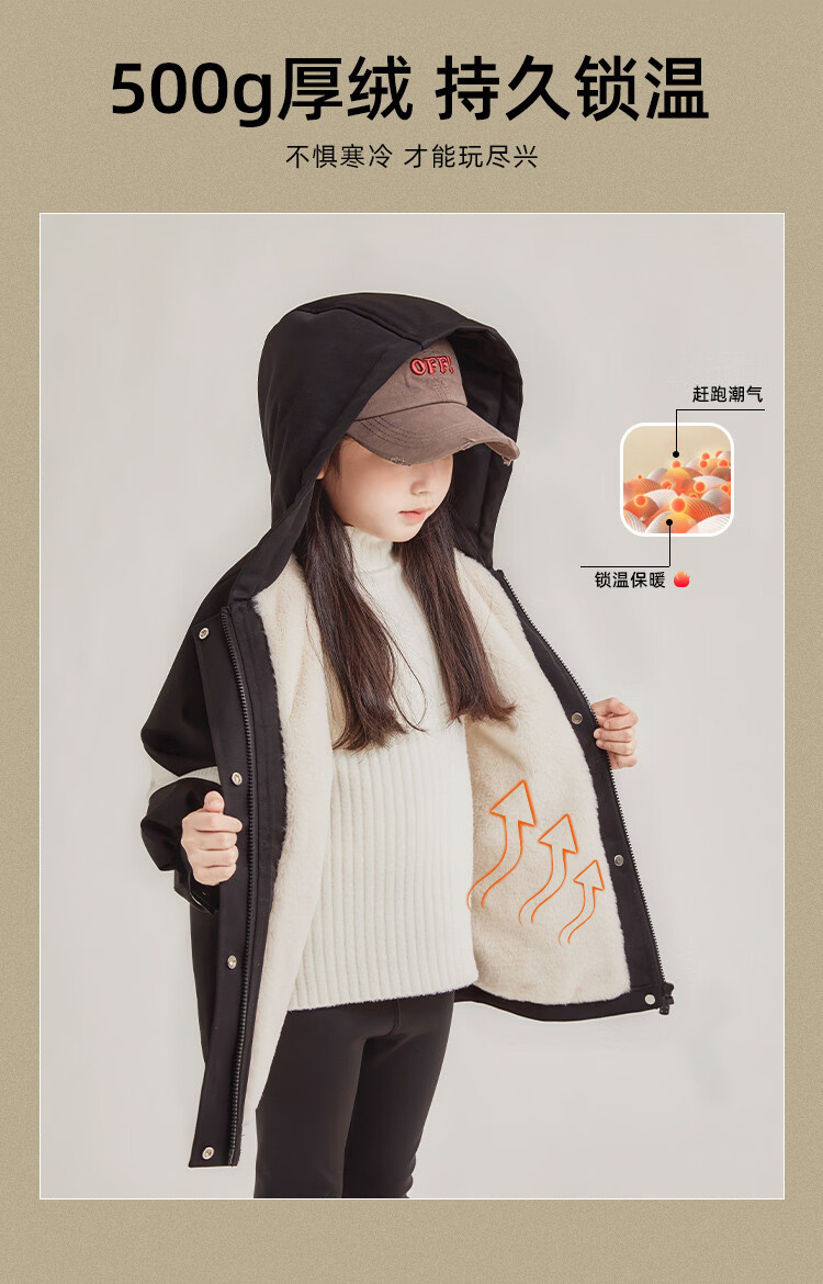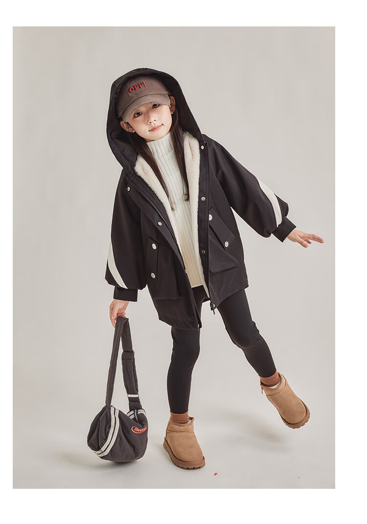 媛媛公主女童派克服外套冬季连帽加绒加厚简约拼色中大童休闲百搭保暖外套 黑色(保暖锁温,不易掉毛) 110