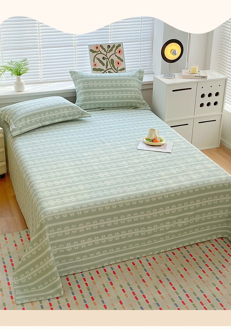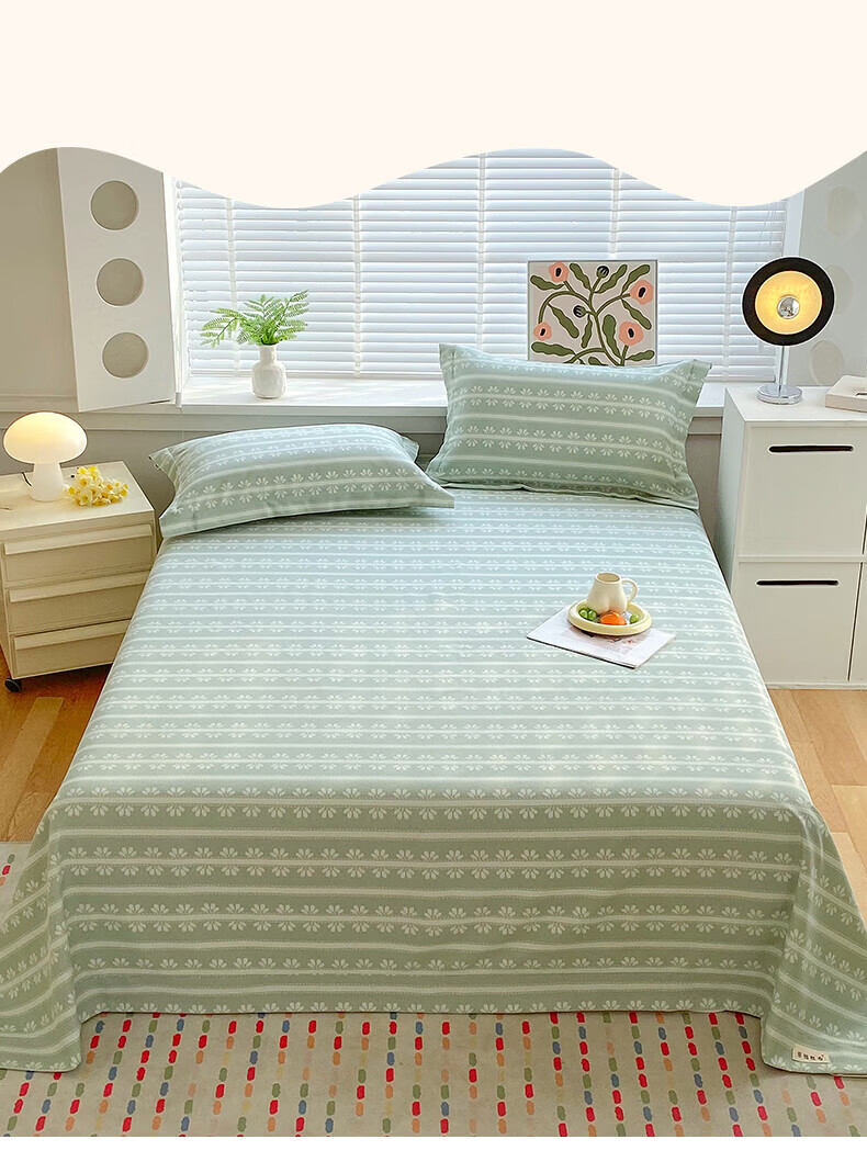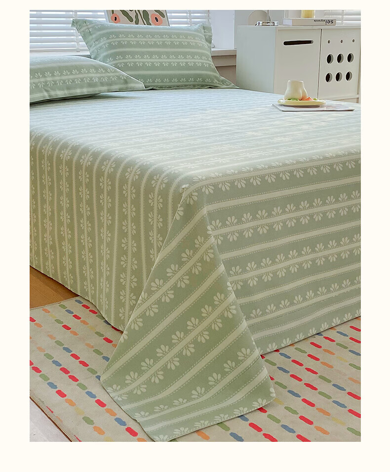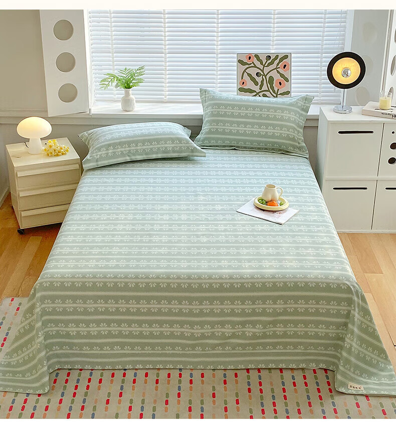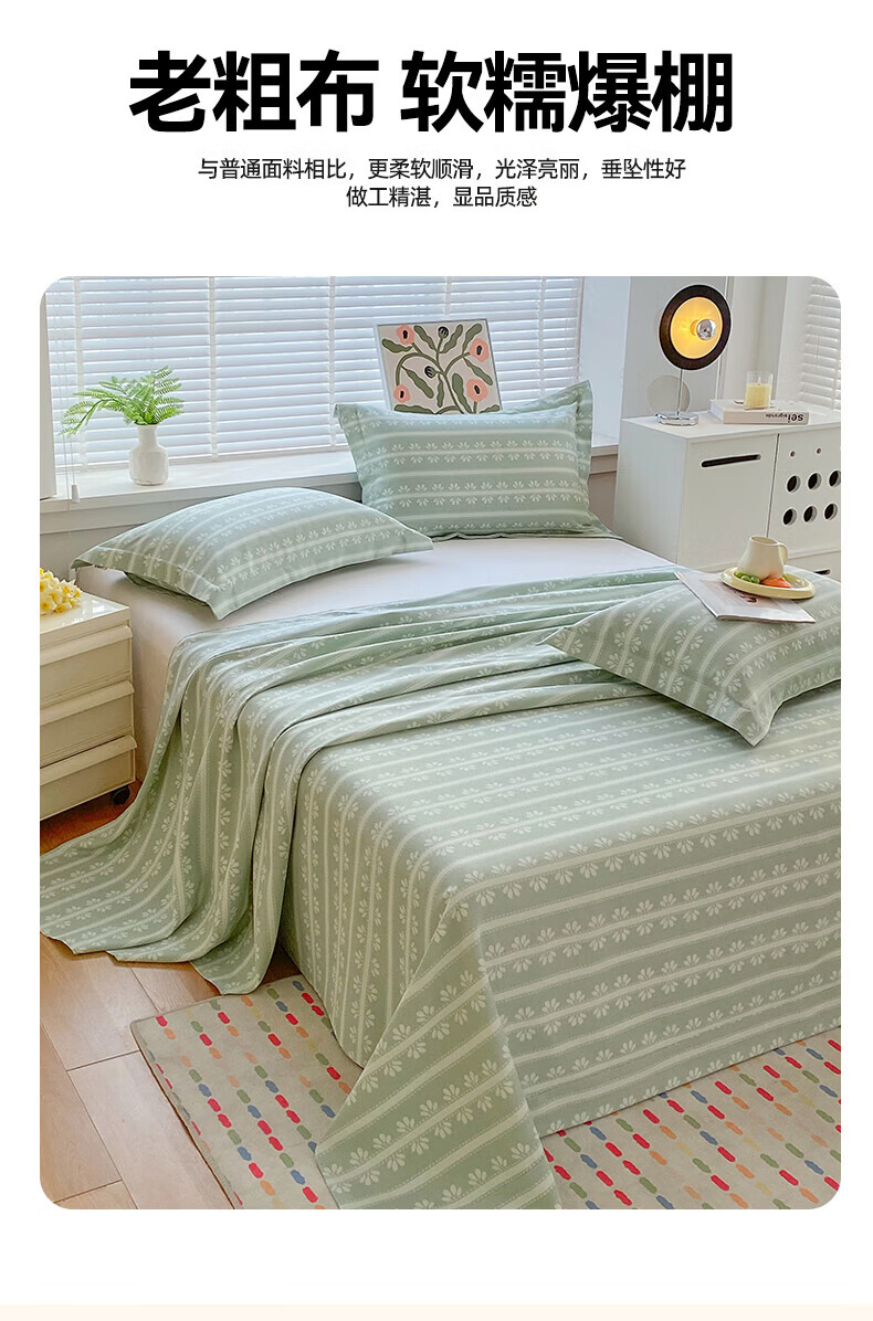 猫人(MiiOW)原棉老粗布床单单件加厚家用被单枕套床上三件套 甜纹悠居-绿 250*245cm单床单【适1.8床】