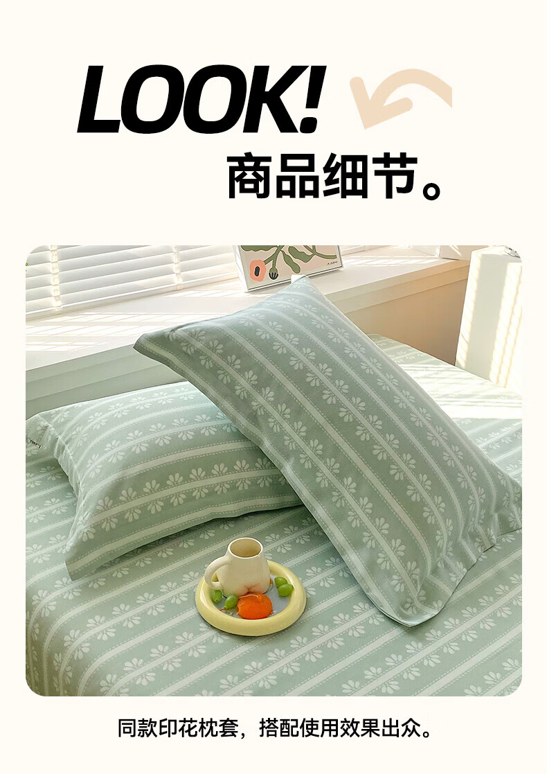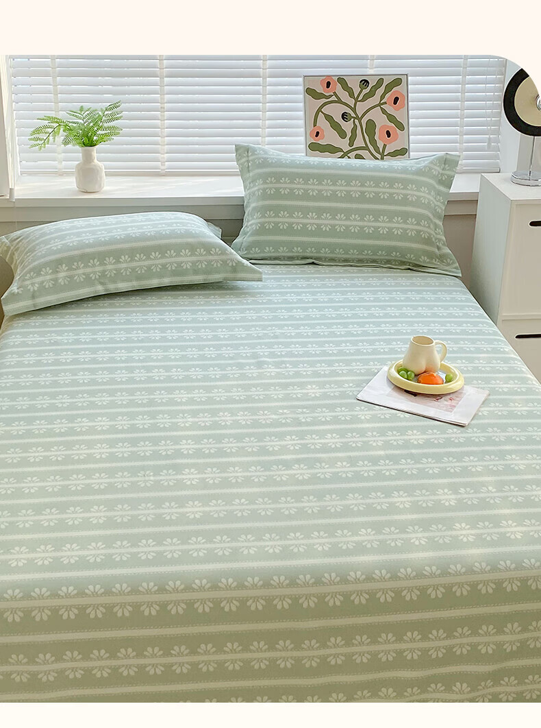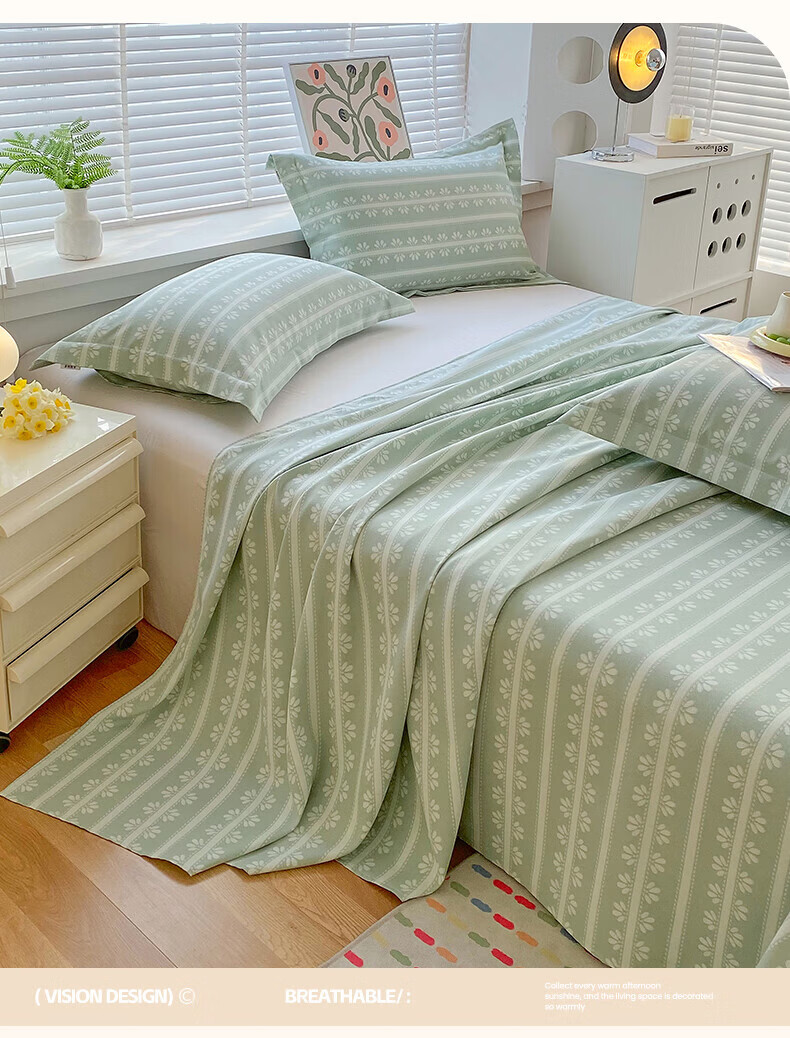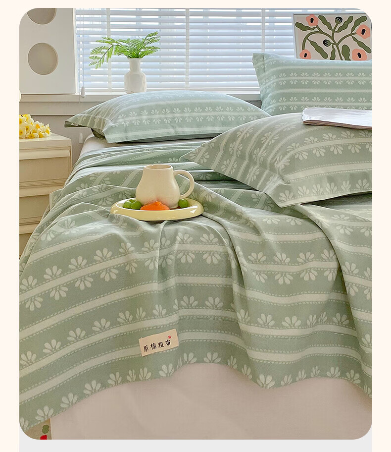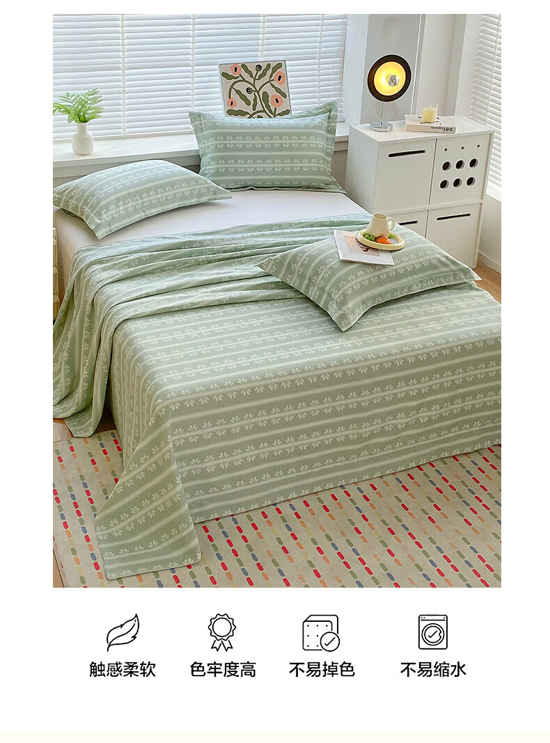 猫人(MiiOW)原棉老粗布床单单件加厚家用被单枕套床上三件套 甜纹悠居-绿 250*245cm单床单【适1.8床】