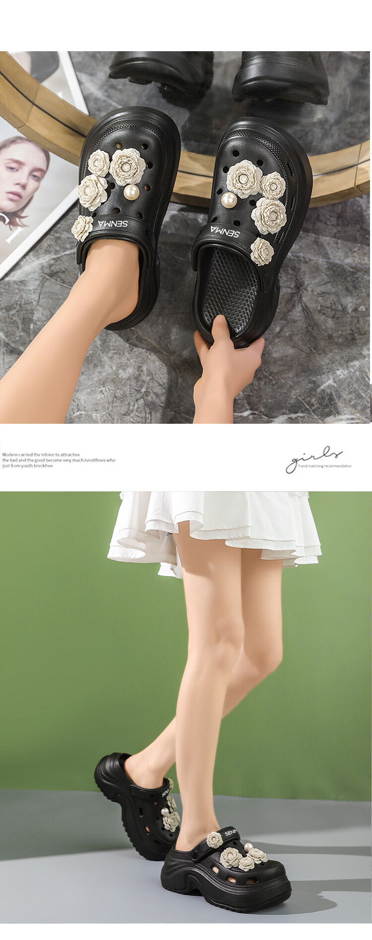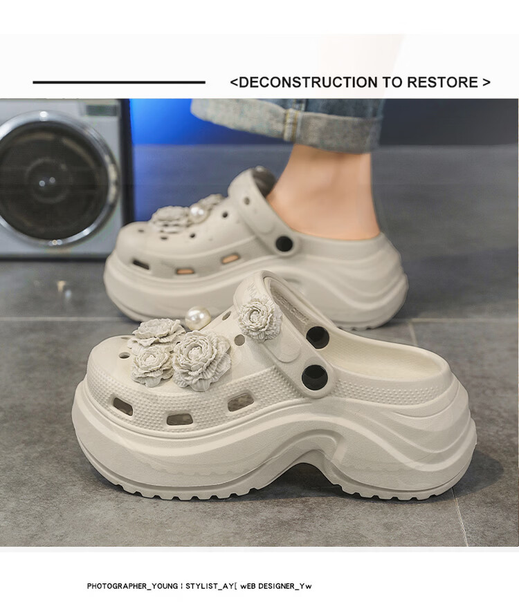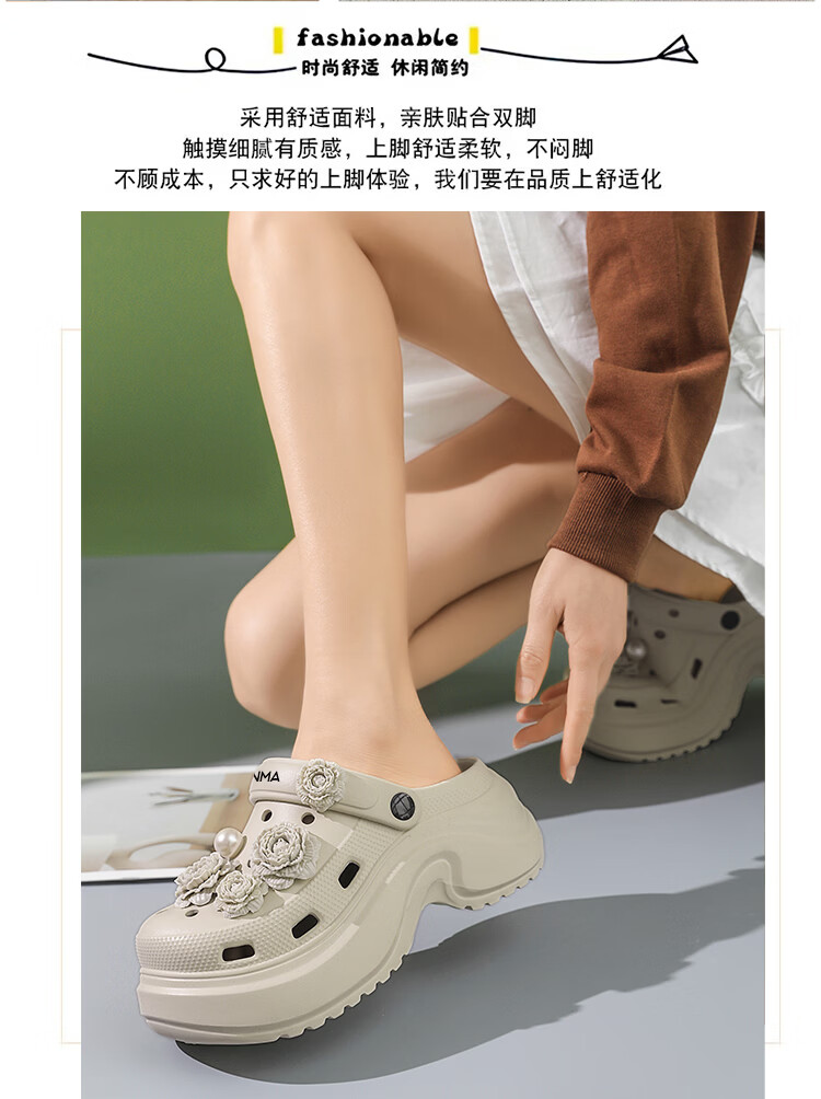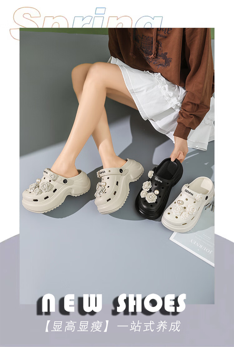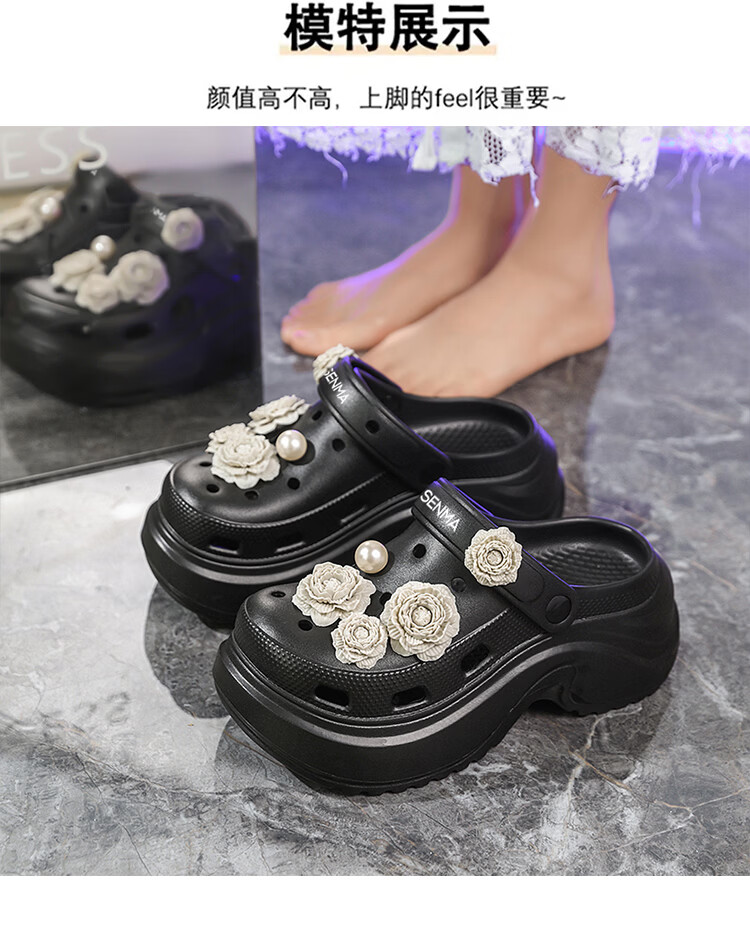 森馬洞洞鞋女款夏季外穿踩屎感厚底时尚运动凉拖女生防滑海边沙滩凉鞋 黑色【基础款】 35-36 【现货秒发】