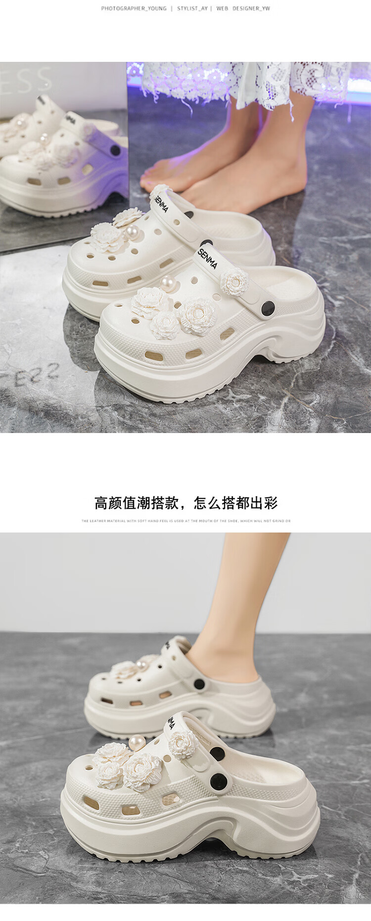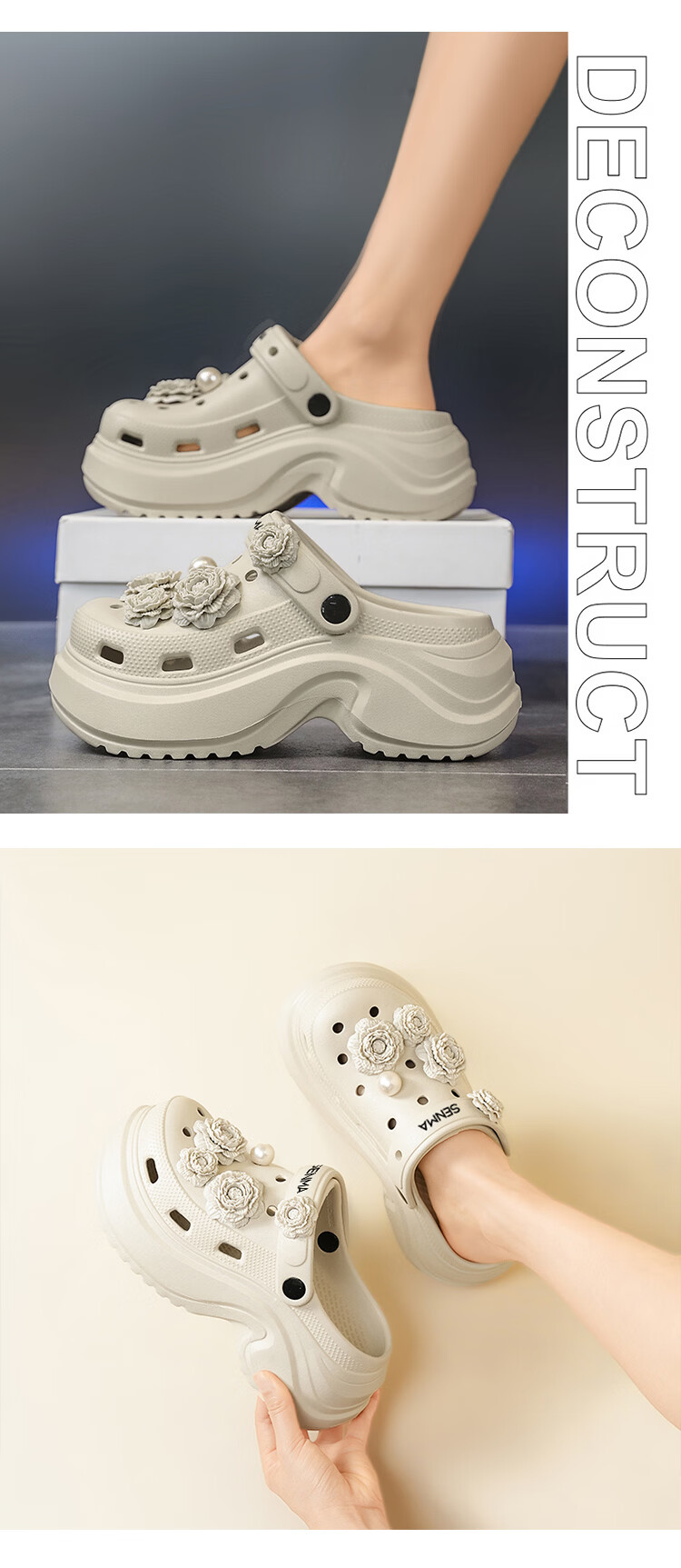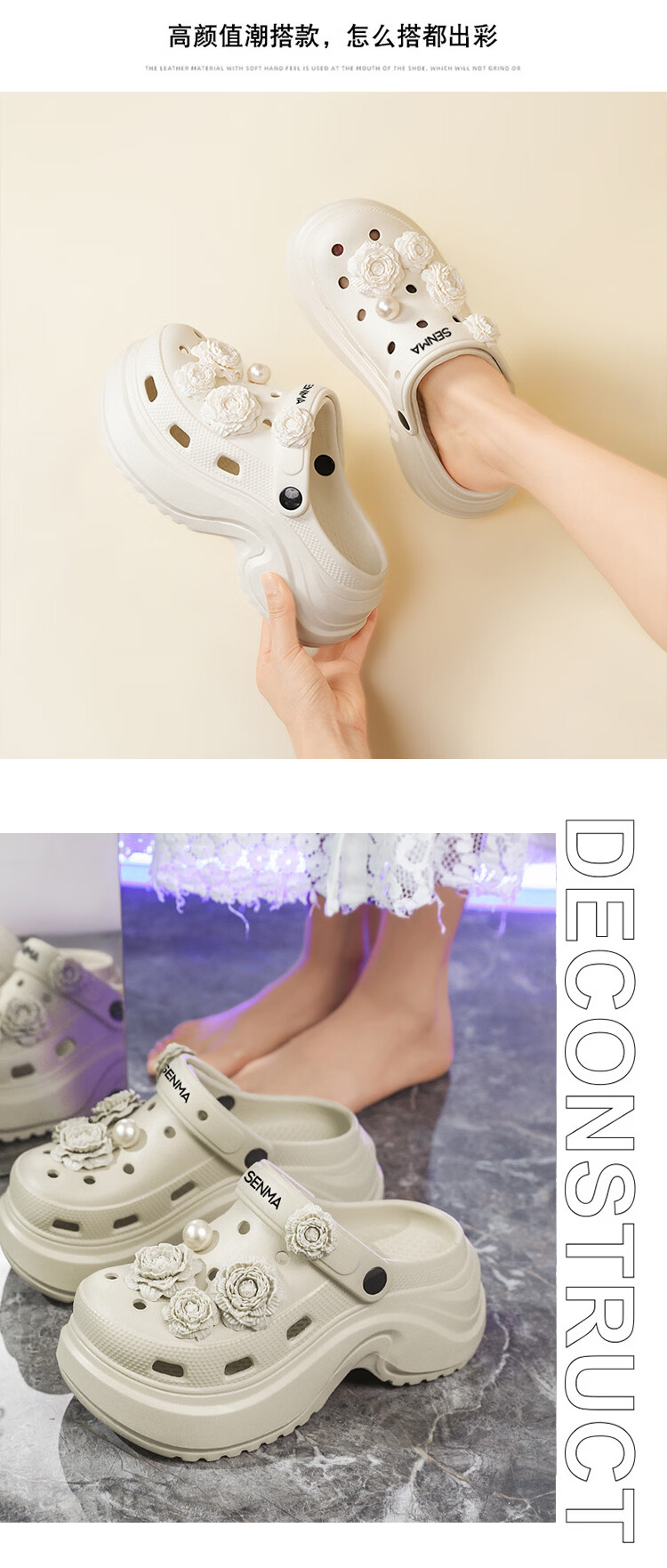 森馬洞洞鞋女款夏季外穿踩屎感厚底时尚运动凉拖女生防滑海边沙滩凉鞋 黑色【基础款】 35-36 【现货秒发】