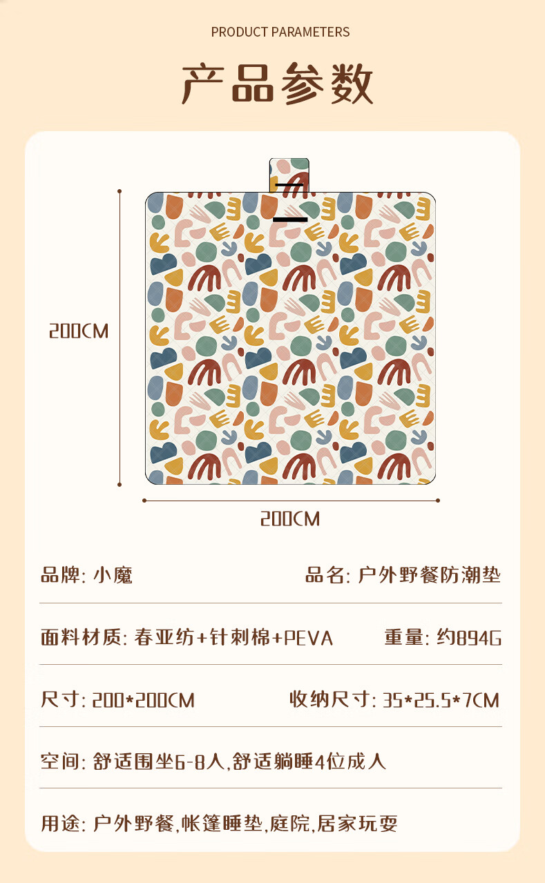 小魔野餐垫户外加厚防潮草地垫子双面防水便携春游野炊露营地垫