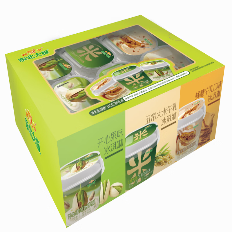 东北大板冰淇淋 杯装六合一 混合口味85g*6杯 家庭装 杯装组合 冰淇淋