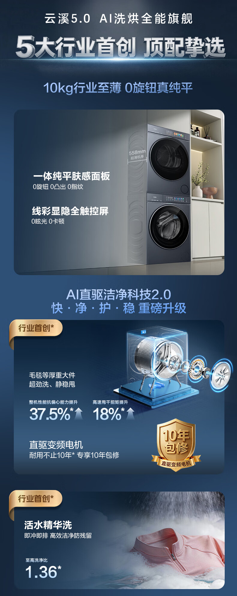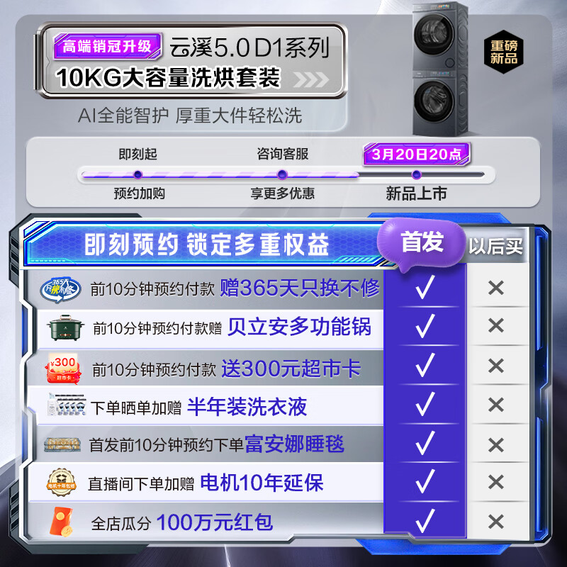 海尔(Haier)AWE同款 云溪5.0滚筒洗烘套装 10KG全自动滚筒洗衣机+双擎热泵烘干机 AI直驱双效除菌 D1 换新补贴