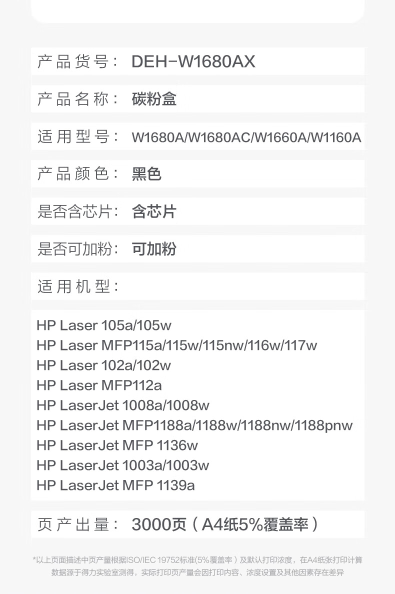 得力(deli)1680A硒鼓 适用惠普116w硒鼓 hp 117w 105a/w 115a/w/nw 1136w硒鼓1188w硒鼓 1660A硒鼓粉盒 3000页1支