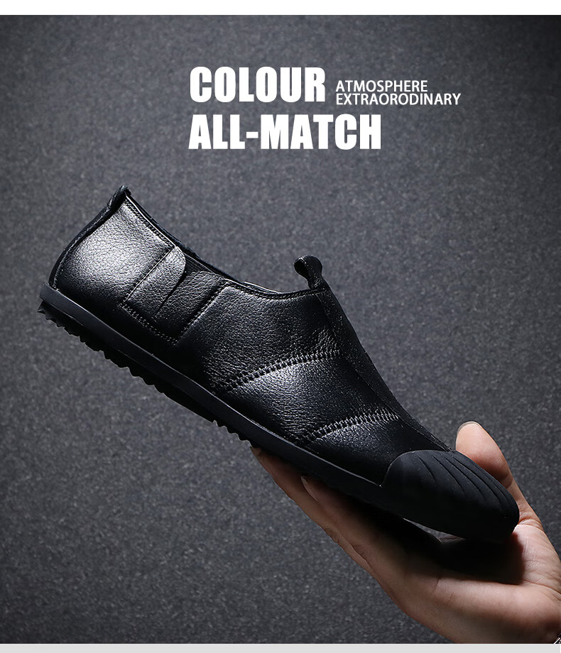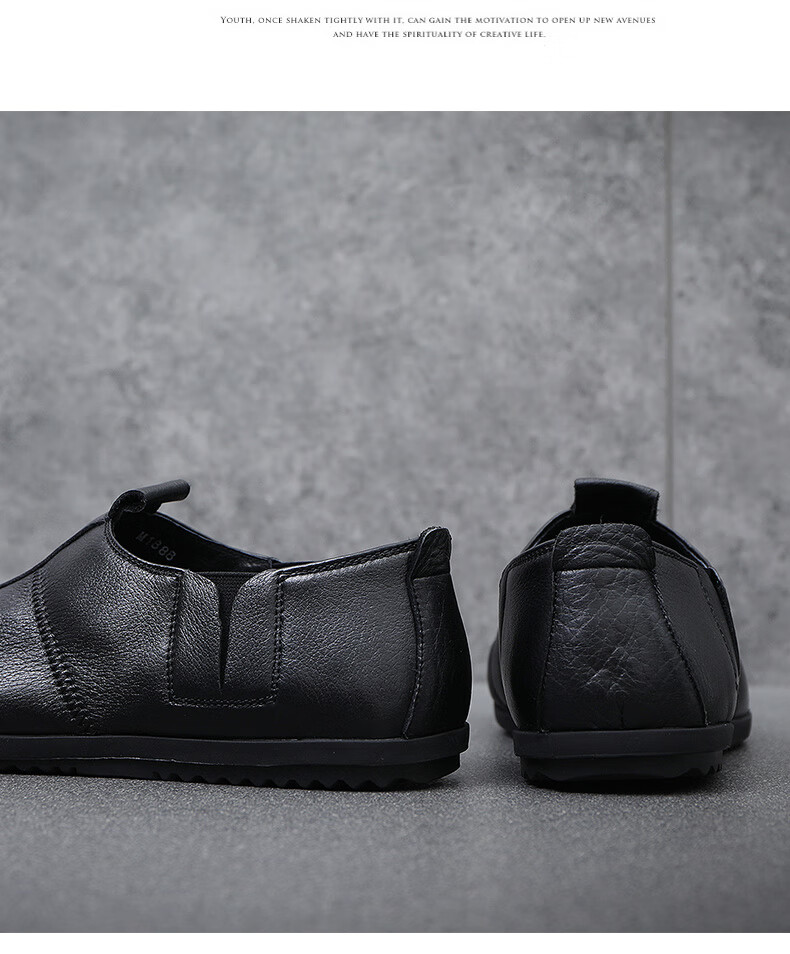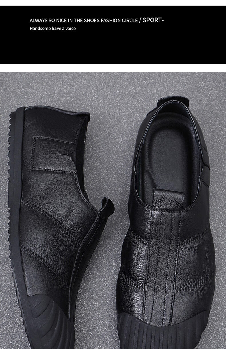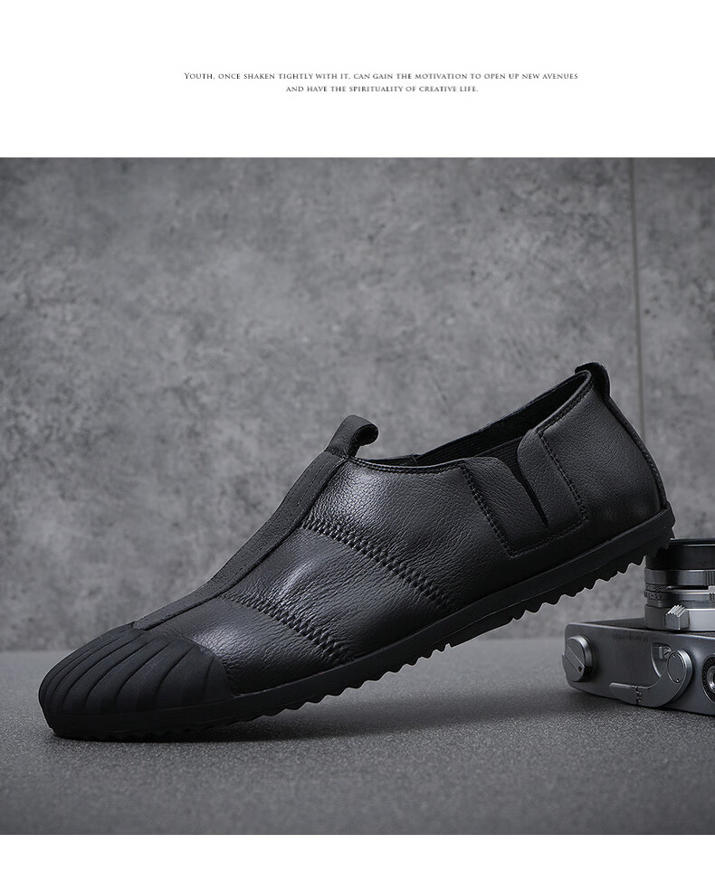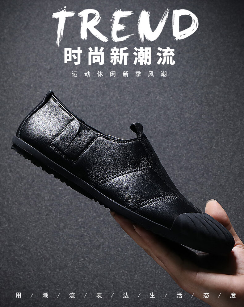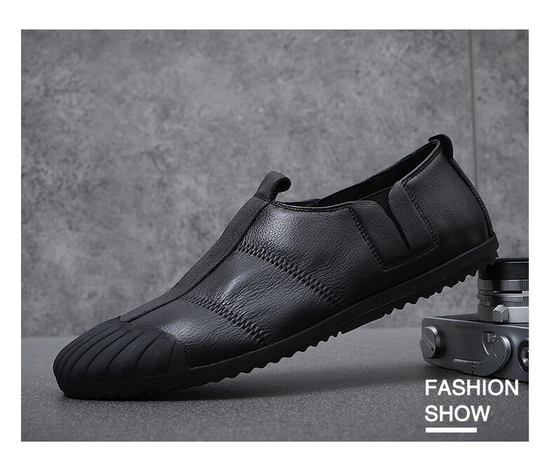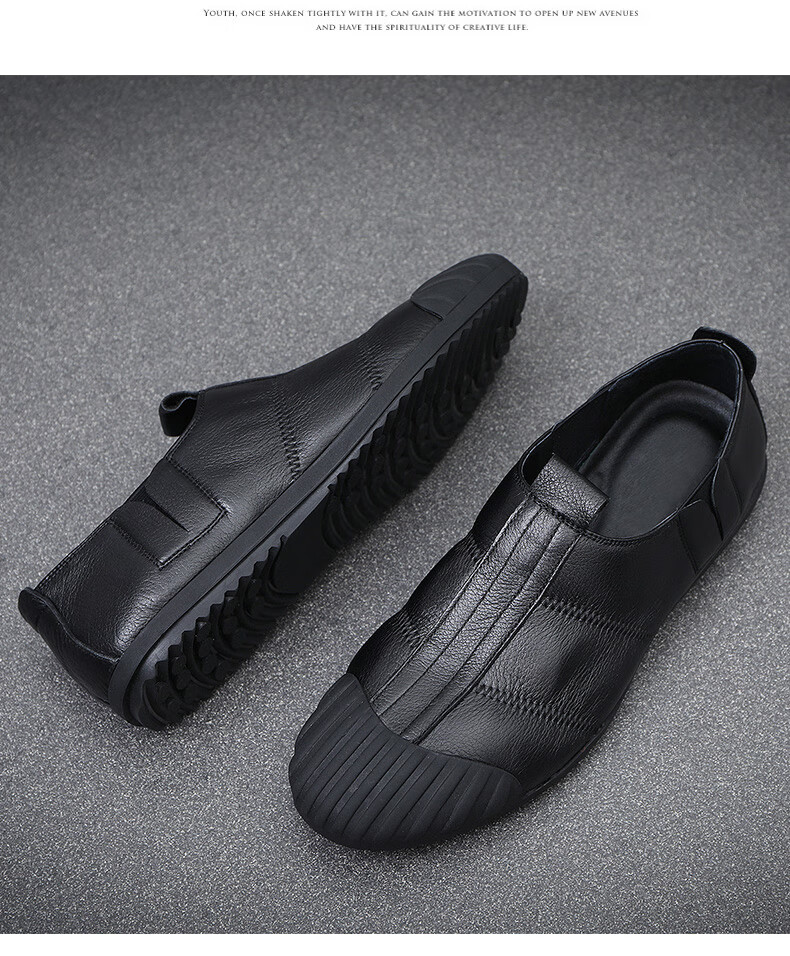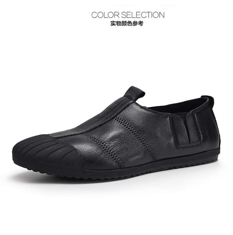 Q ZHIHE2026春季新款男士轻便舒适纯皮鞋子软底乐福鞋男透气休闲板鞋 黑色 43 (265mm)