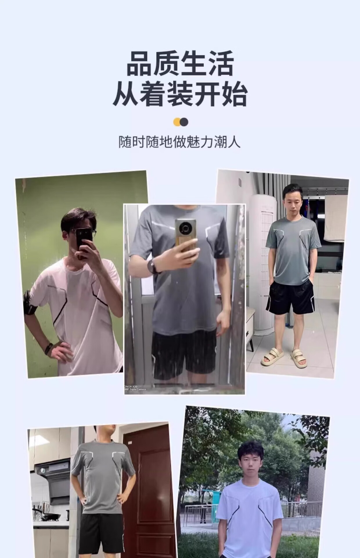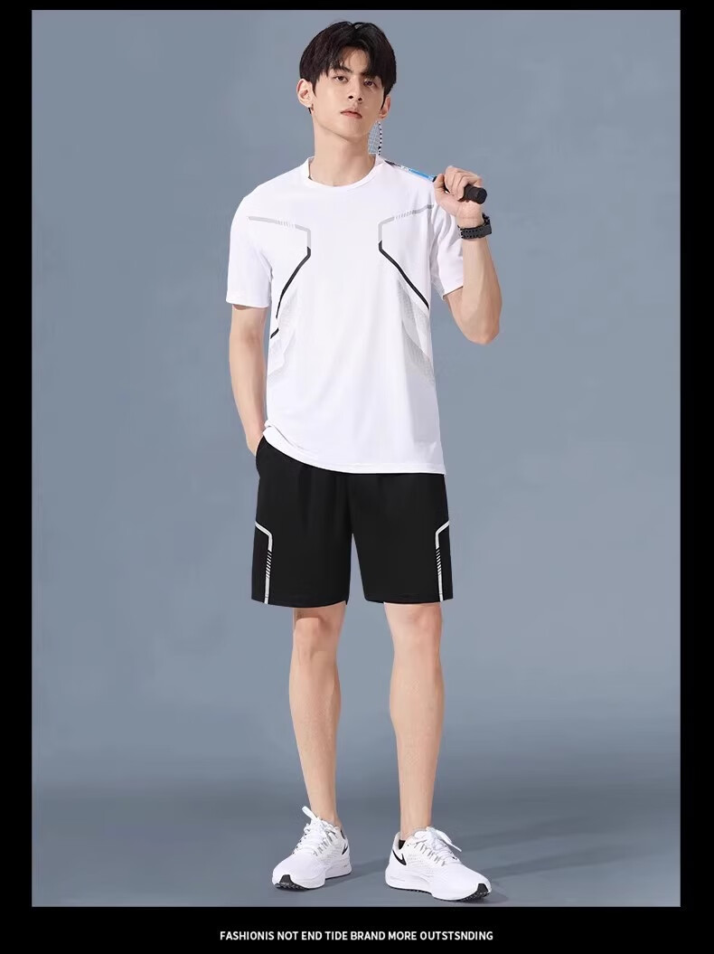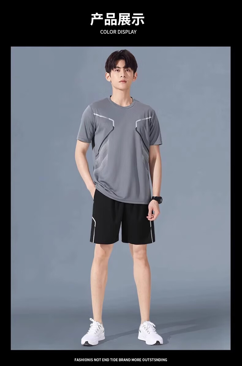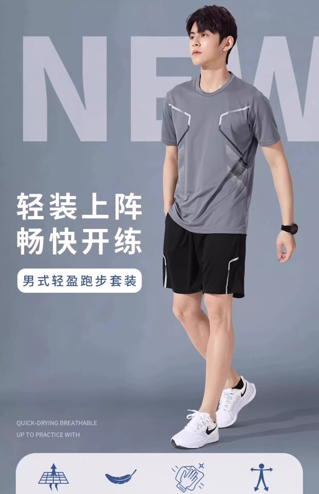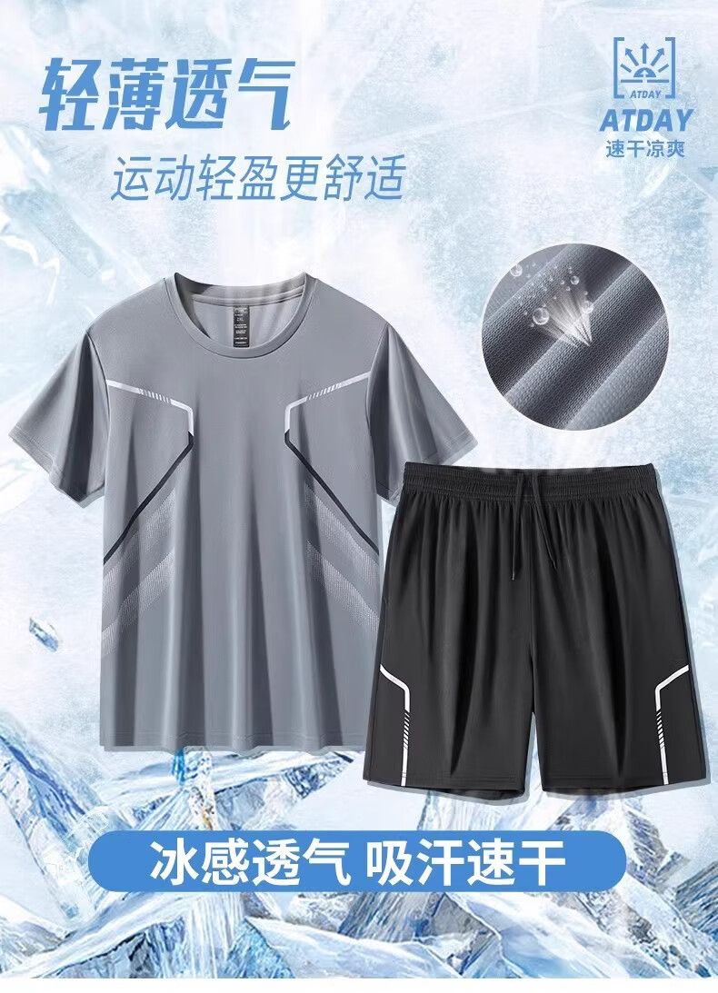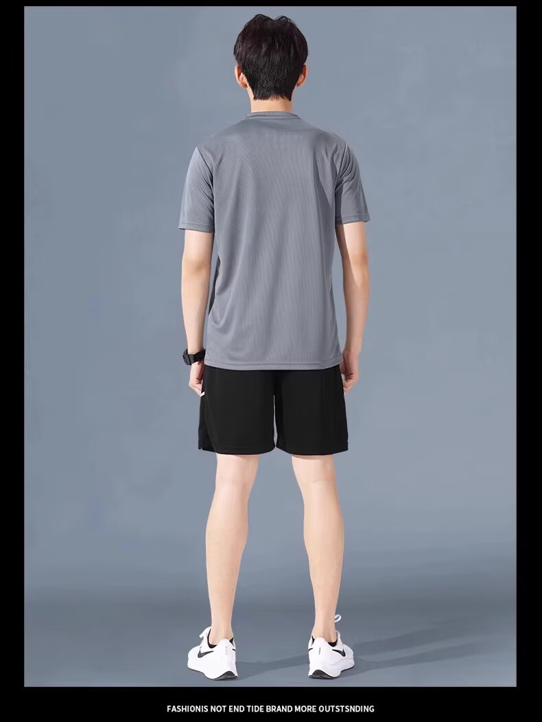 楠飞华裳运动服套装男跑步短袖冰丝夏季速干衣篮球服羽毛健身衣服短裤夏天 953灰色【套装】 2XL 推荐130-145斤