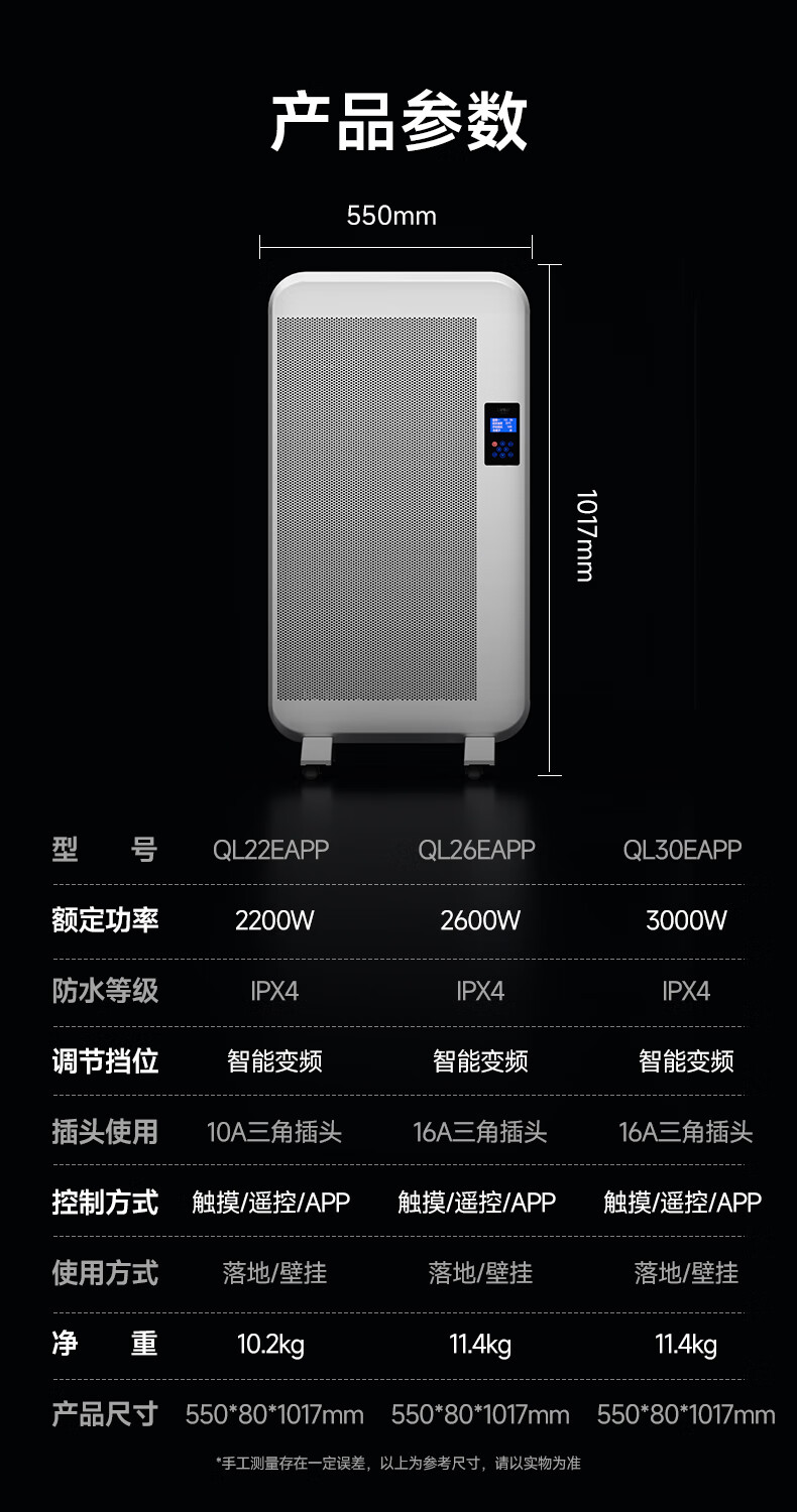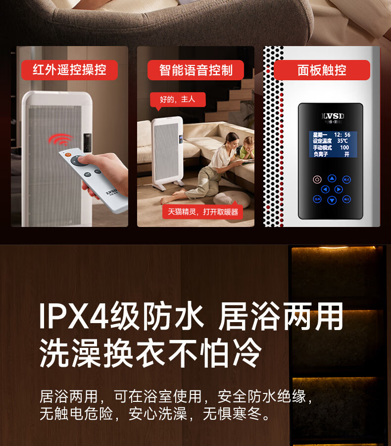 利维斯顿(ILVSD) 电热取暖器对流石墨烯远红外家用节能省电暖气片负离子浴室暖风机欧式快热炉客厅大面积APP语音 3200瓦APP语音操控 彩屏版 大平层/别墅专拍