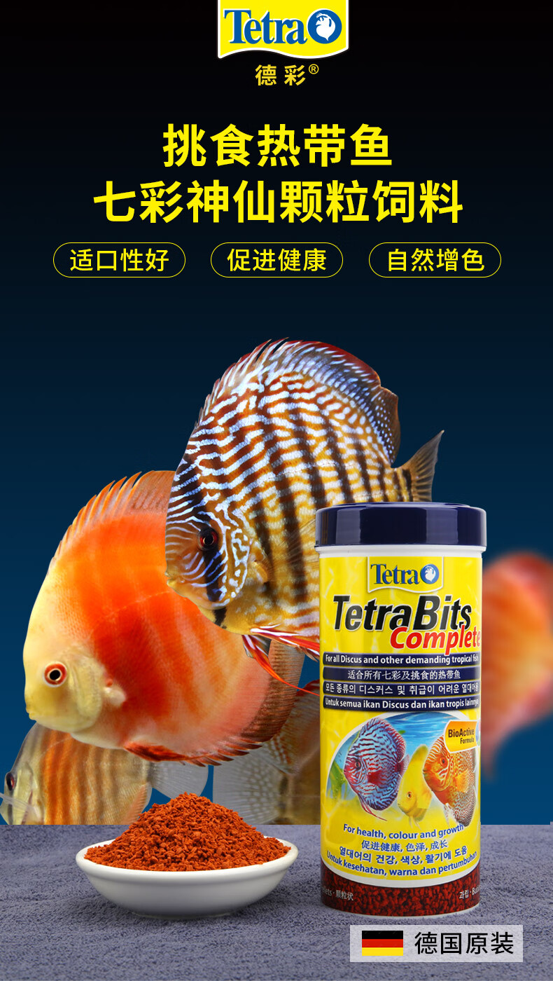 德彩七彩神仙鱼专用饲料观赏鱼鱼粮鱼食小颗粒 七彩饲料(颗粒)1000ml/300g