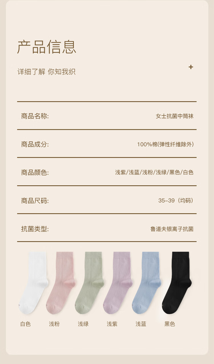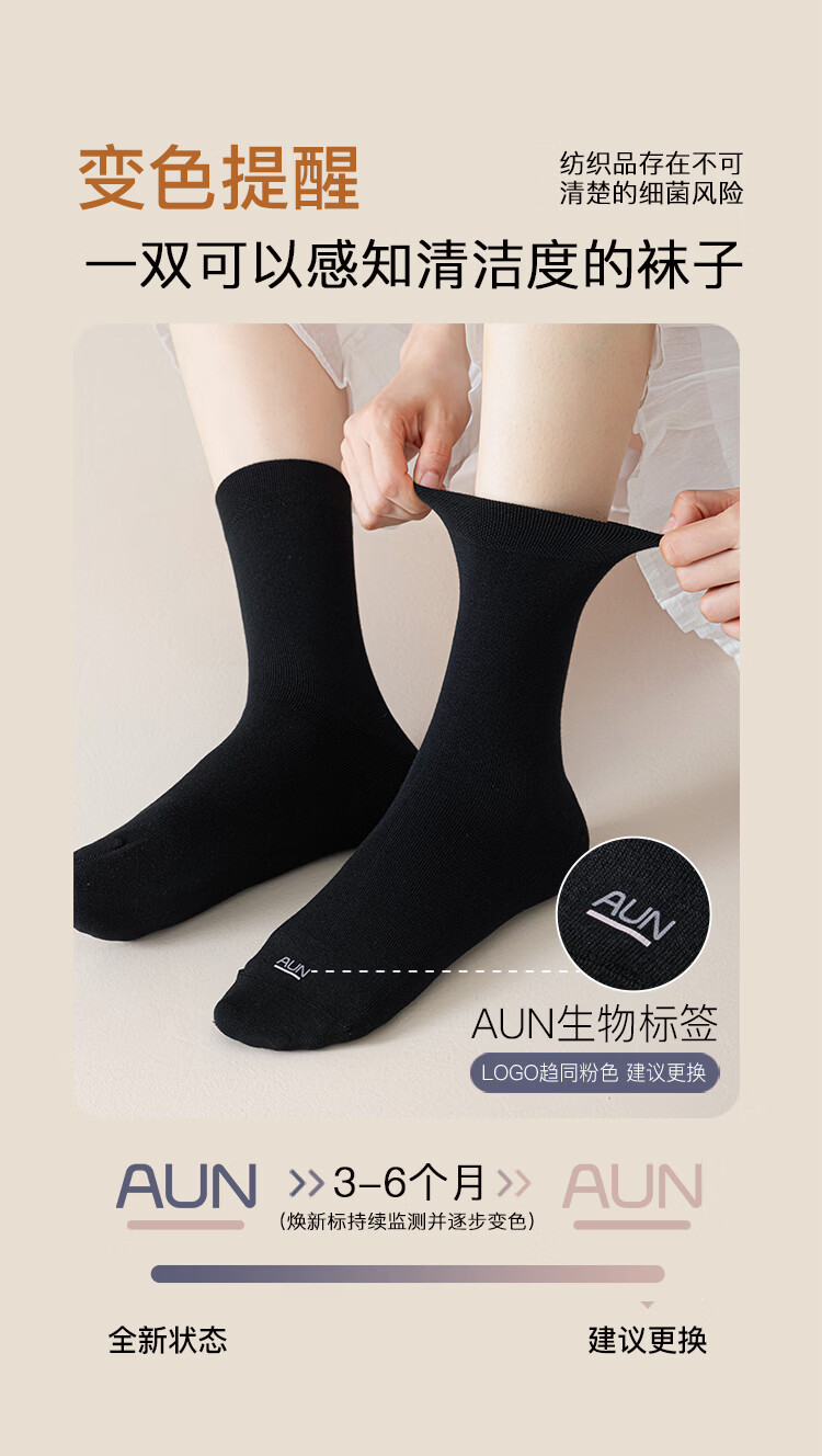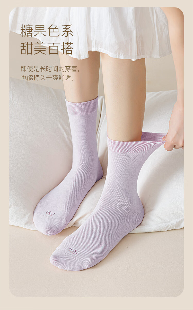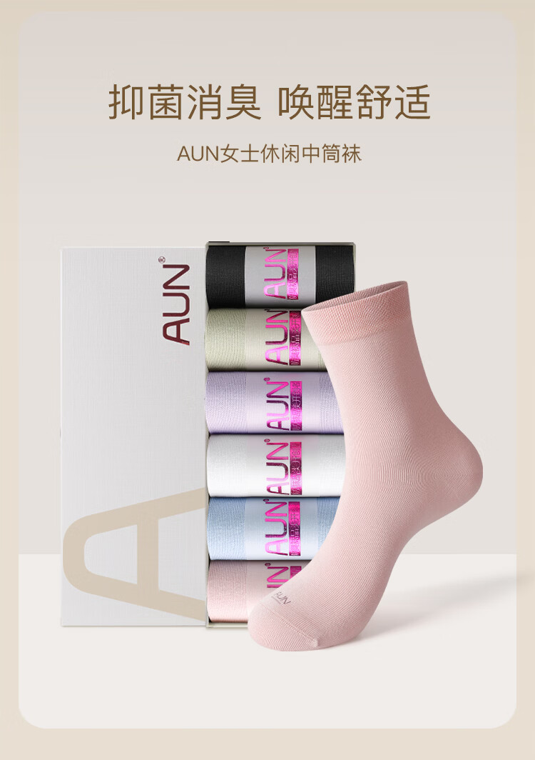 AUN袜子女冬季100%纯棉中筒女士袜子抗菌防臭全棉抗起球吸汗休闲女袜 【100%纯棉抗菌】混色短筒 6双 均码