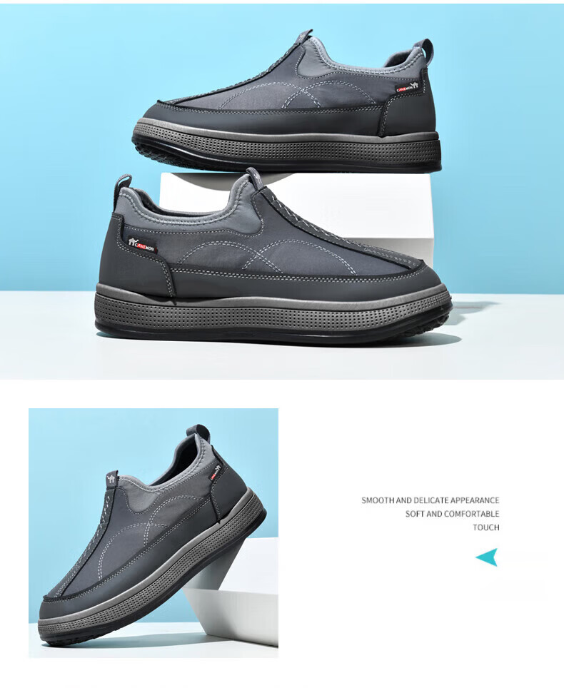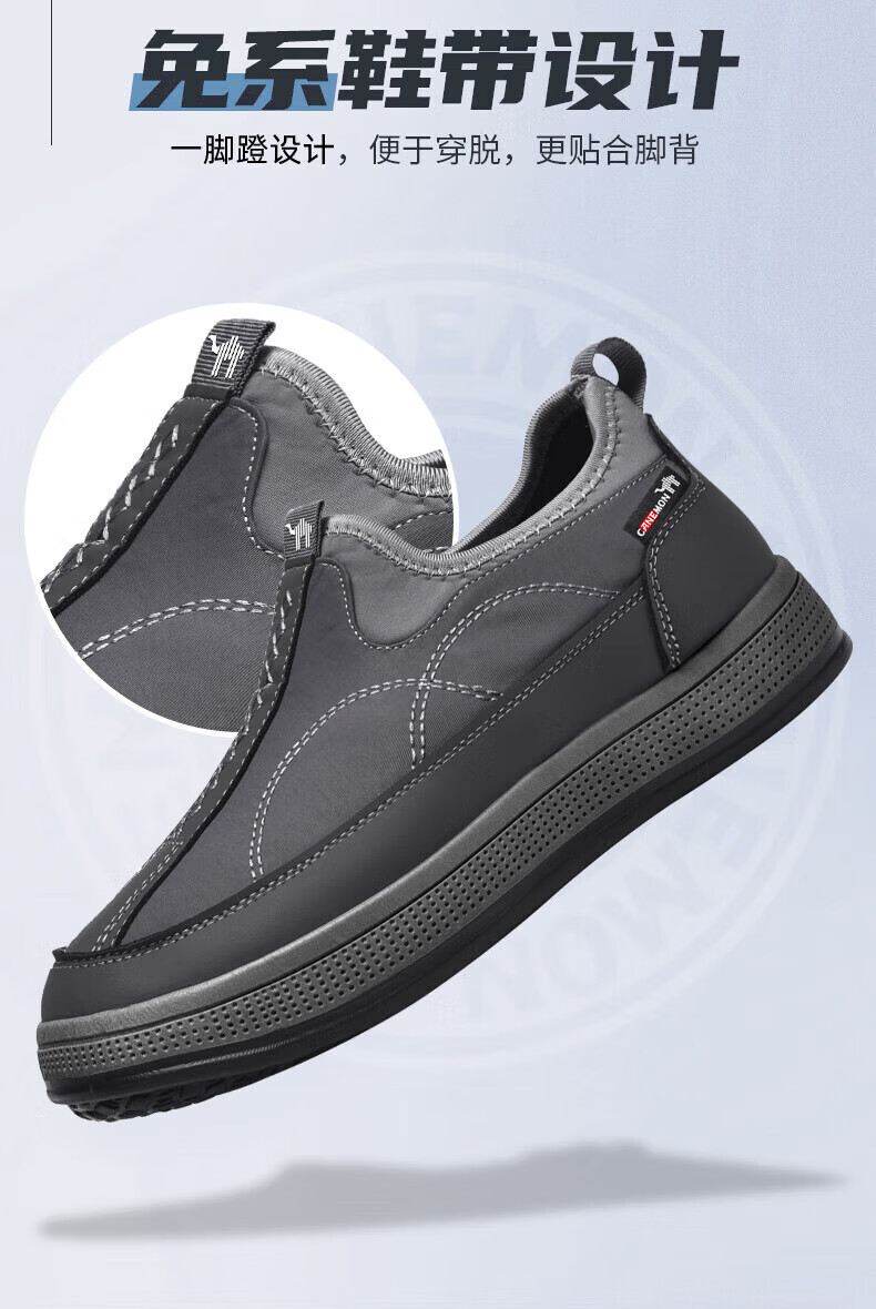 保罗骆驼男鞋 2026新款春夏轻便防滑一脚蹬休闲鞋 男士大码运动懒人 【四季款】灰色 225 39 【标准运动鞋码】