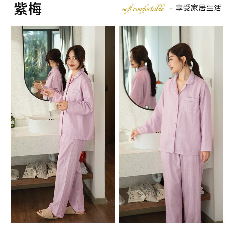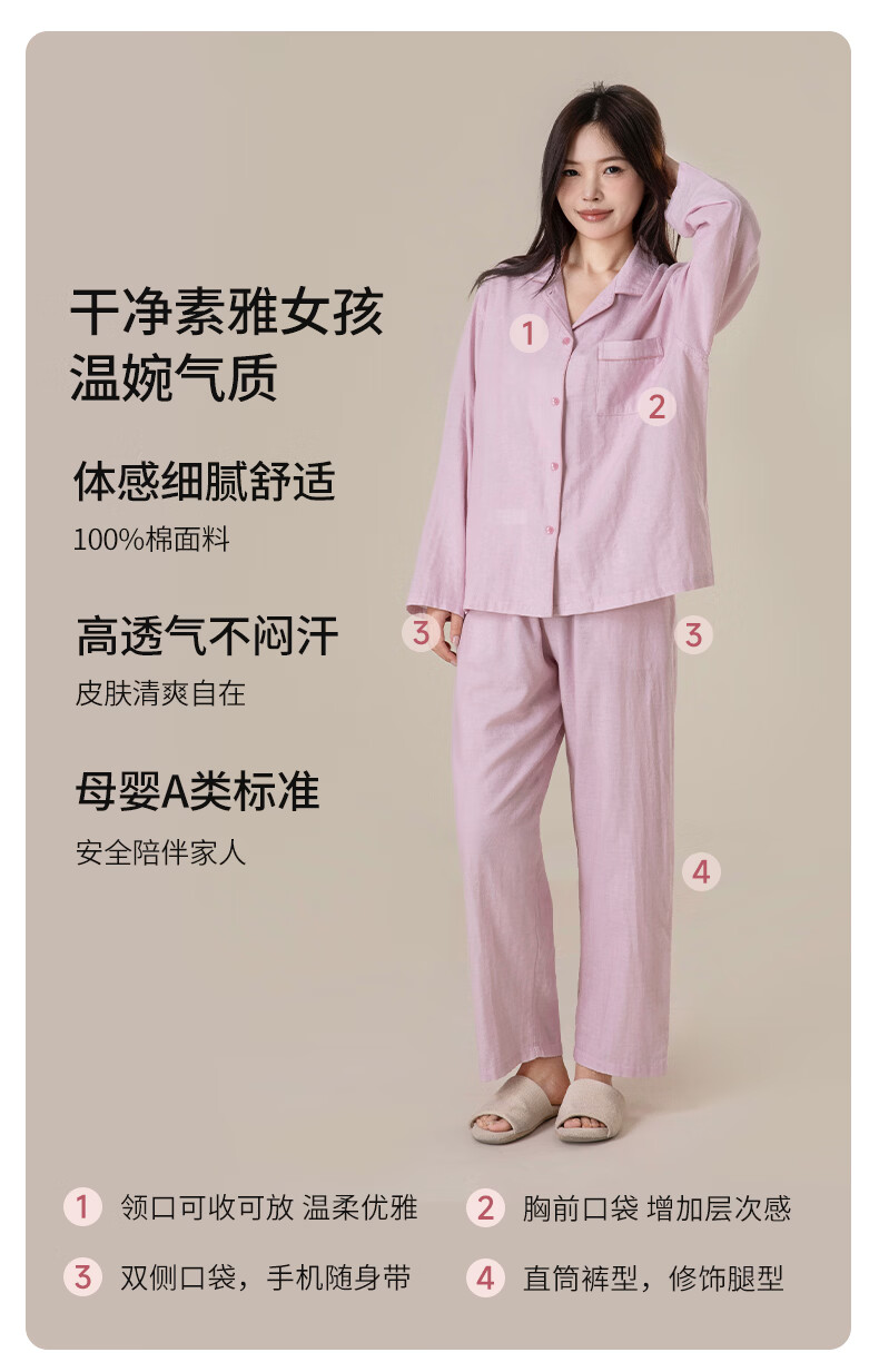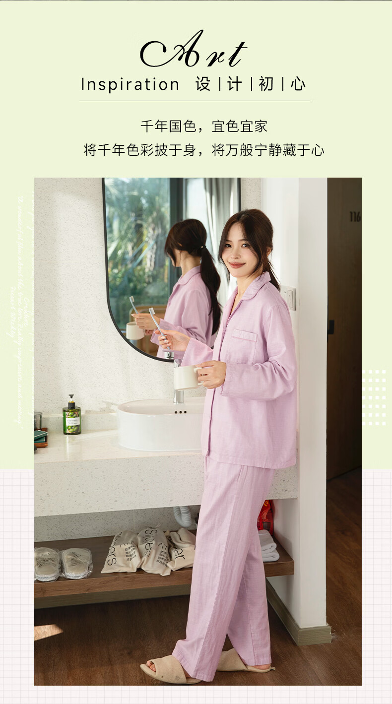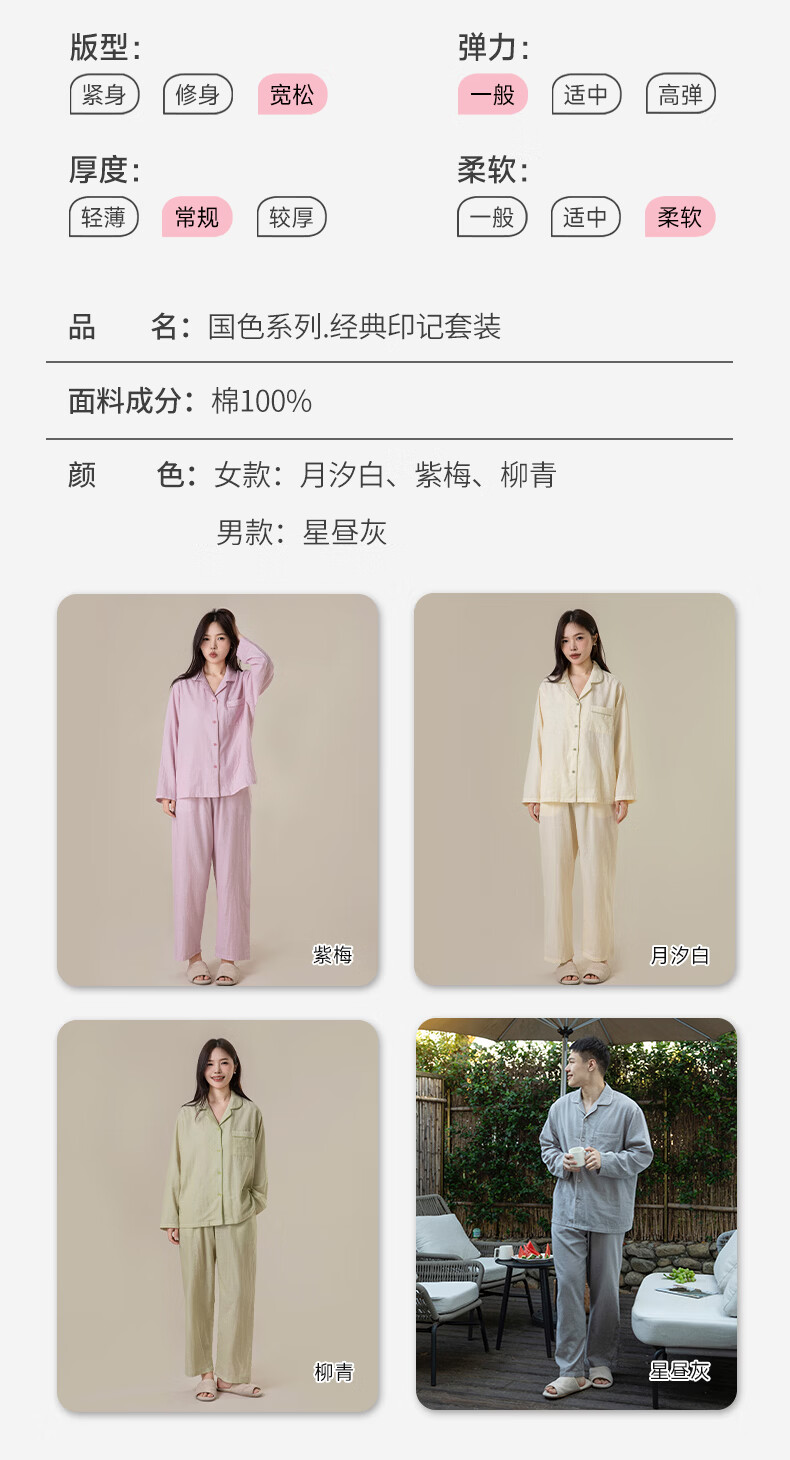 宜色家26年新款纯棉睡衣 100%新疆棉男女士家居服亲肤透气宽松可外穿A类 柳青 经典印记-女款 M (女 155-160cm或男 110-145斤)