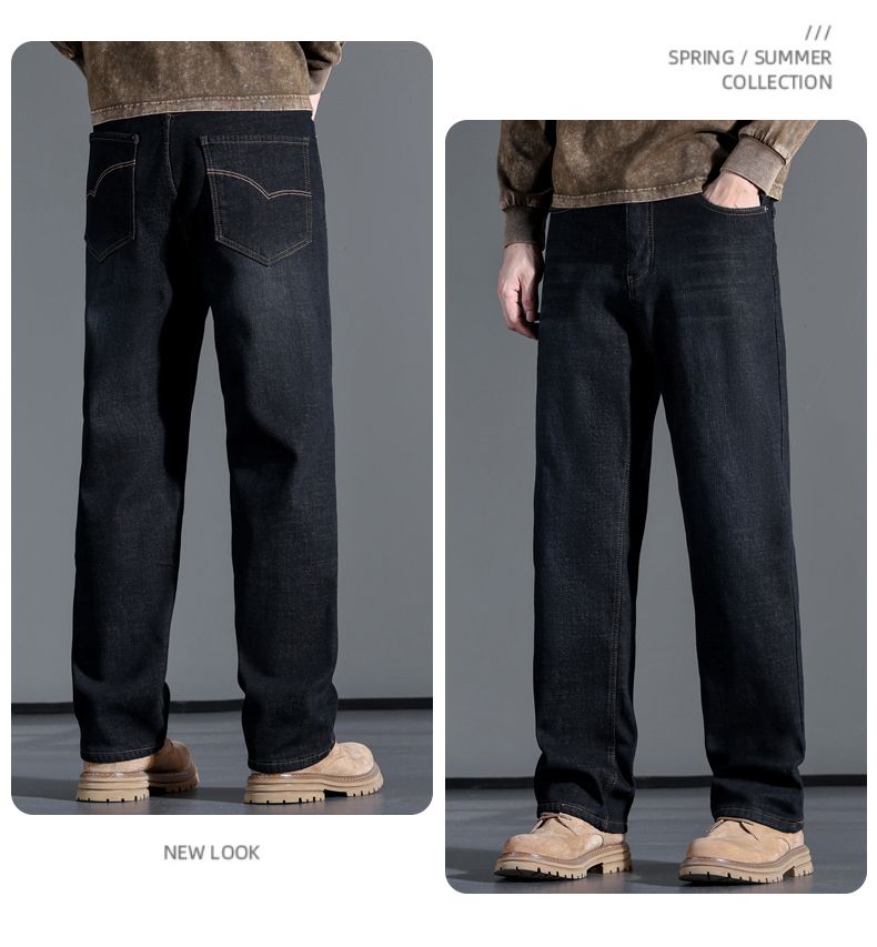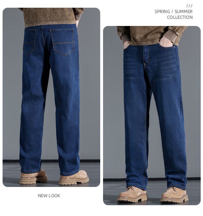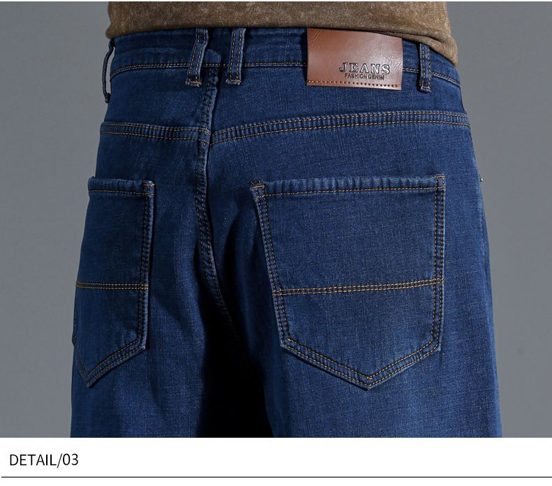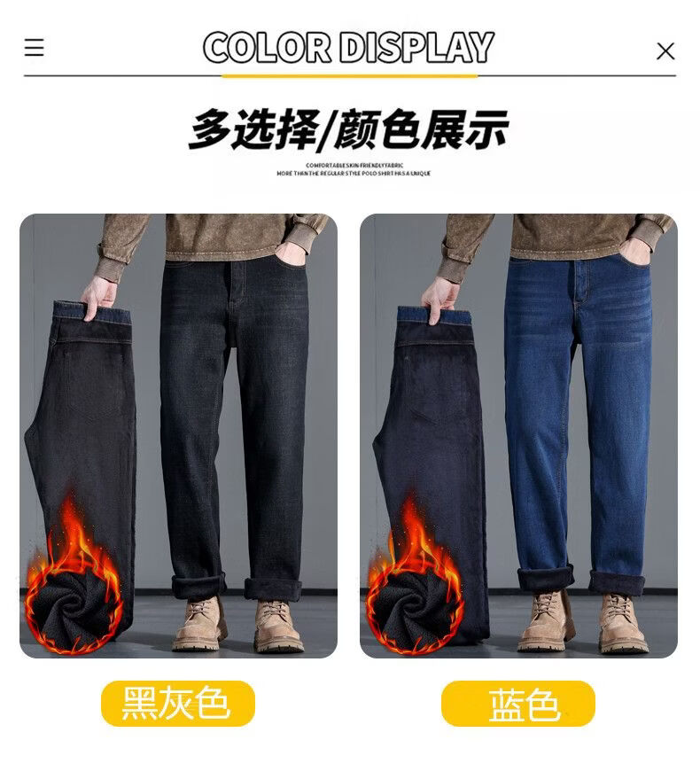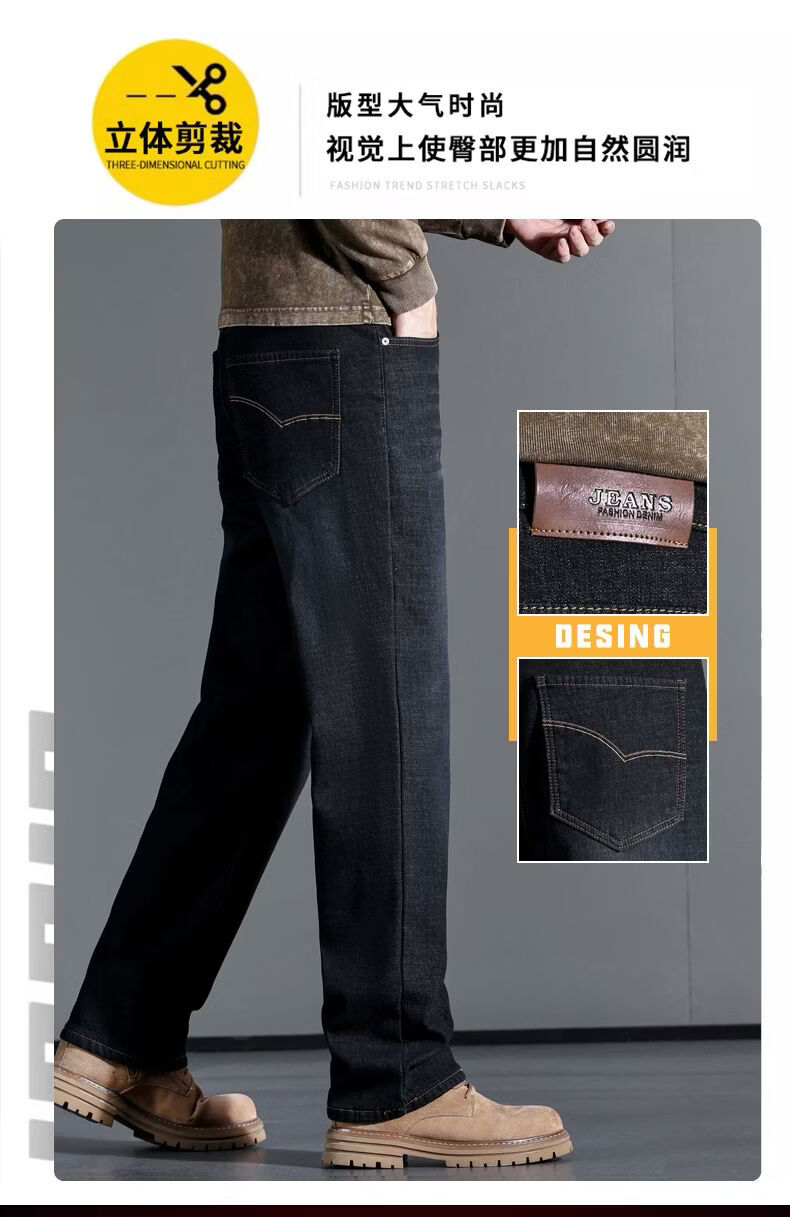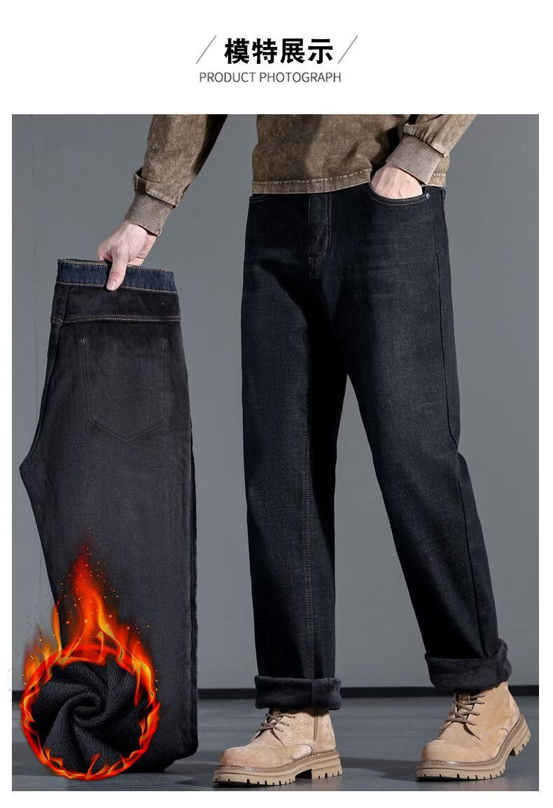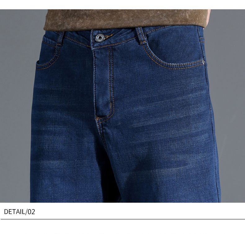 啄木鸟大码牛仔裤男直筒宽松加绒加厚保暖弹力男士新款商务休闲裤子 蓝色 30