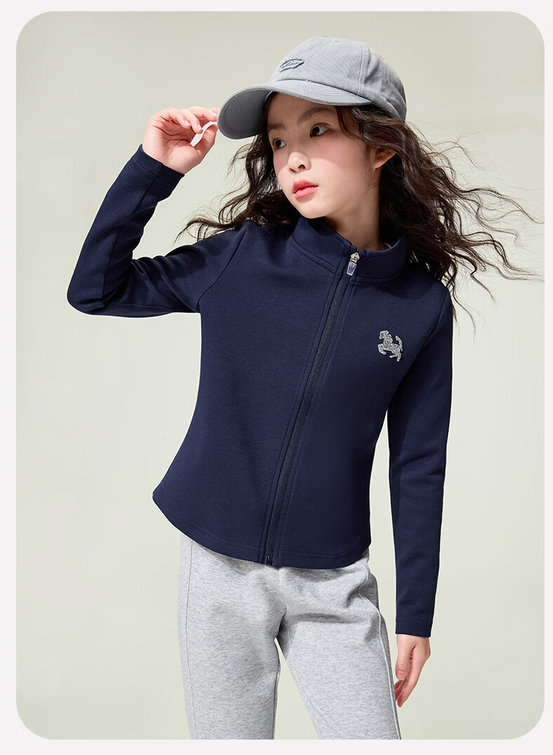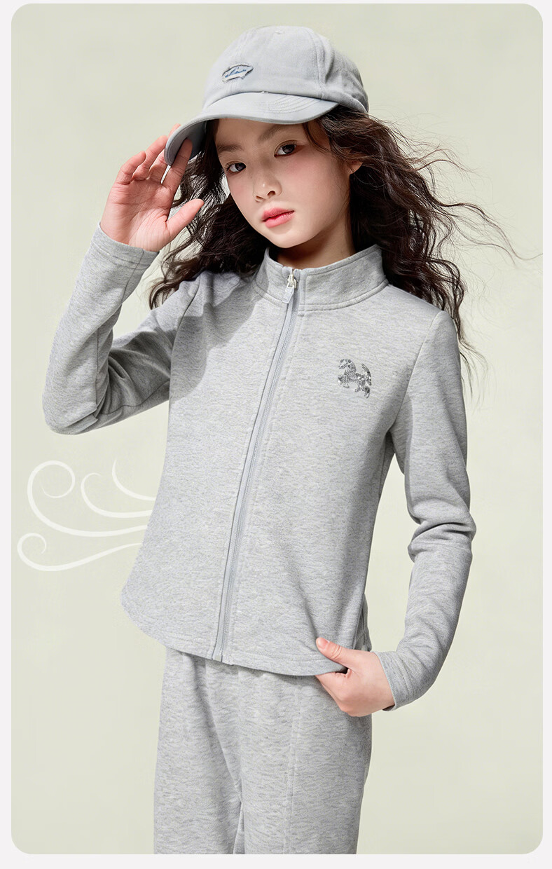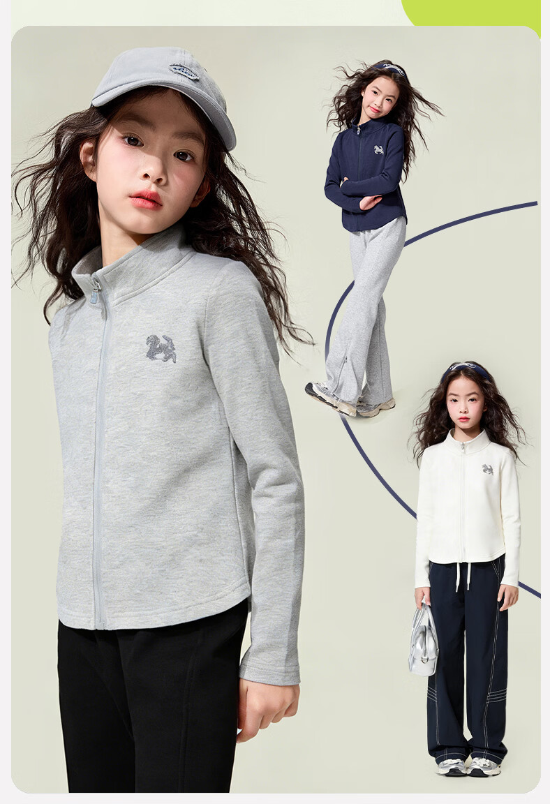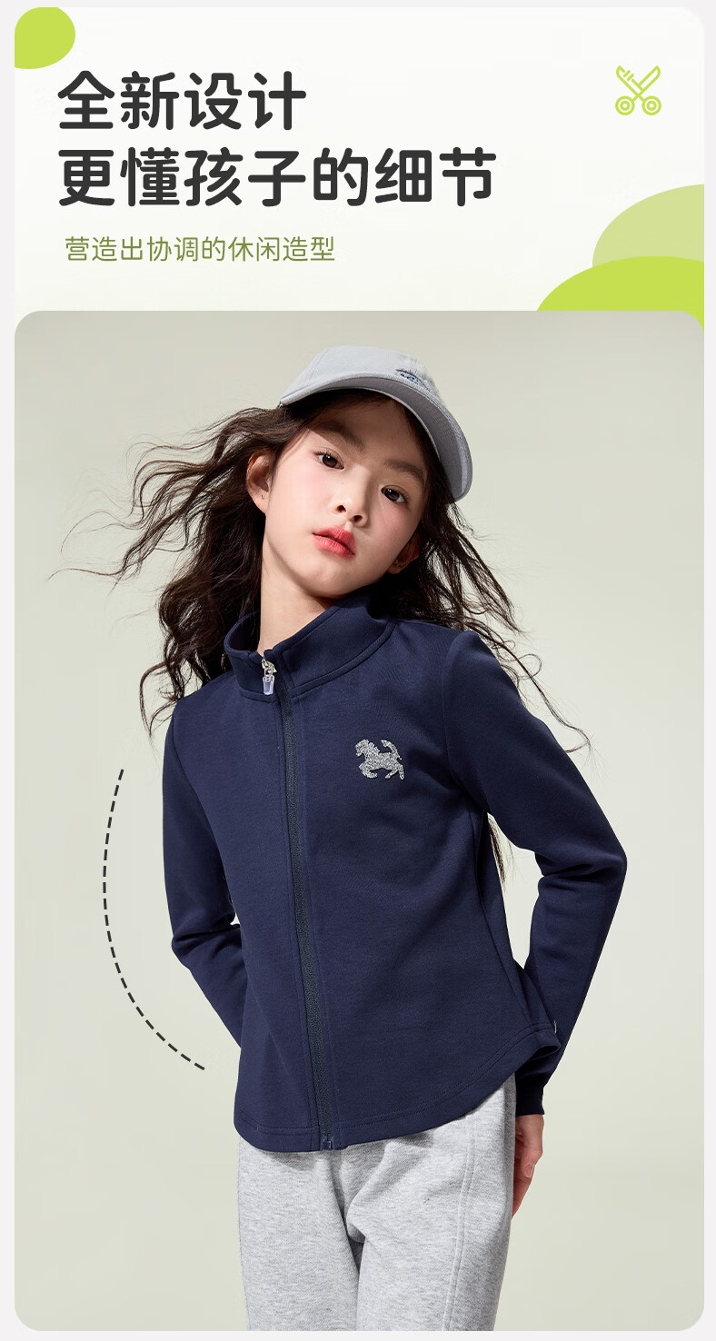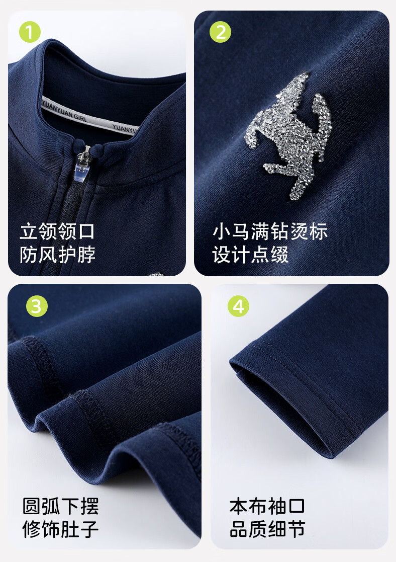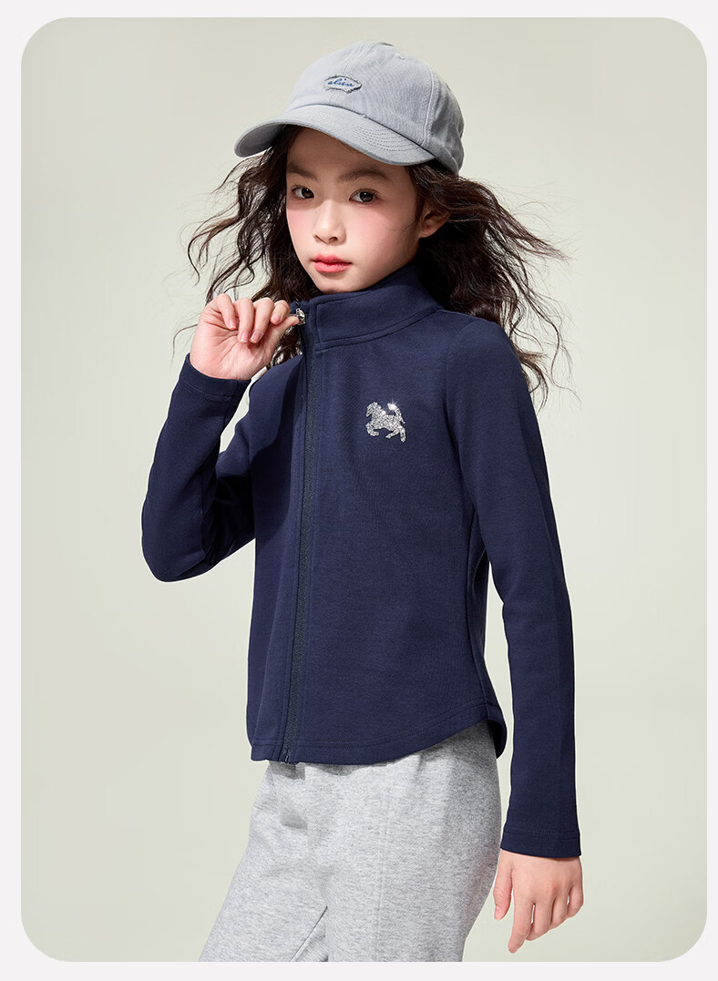 媛媛公主儿童外套26春新款女童小马烫钻收腰短款上衣中大童立领防风夹克 花灰色 110