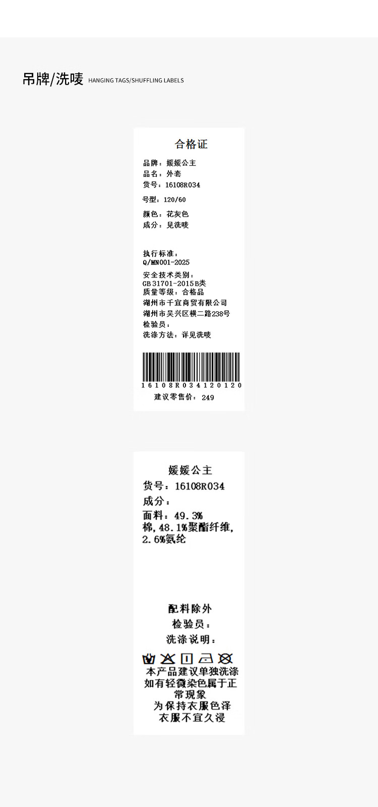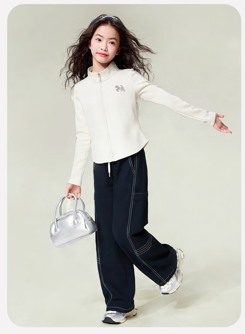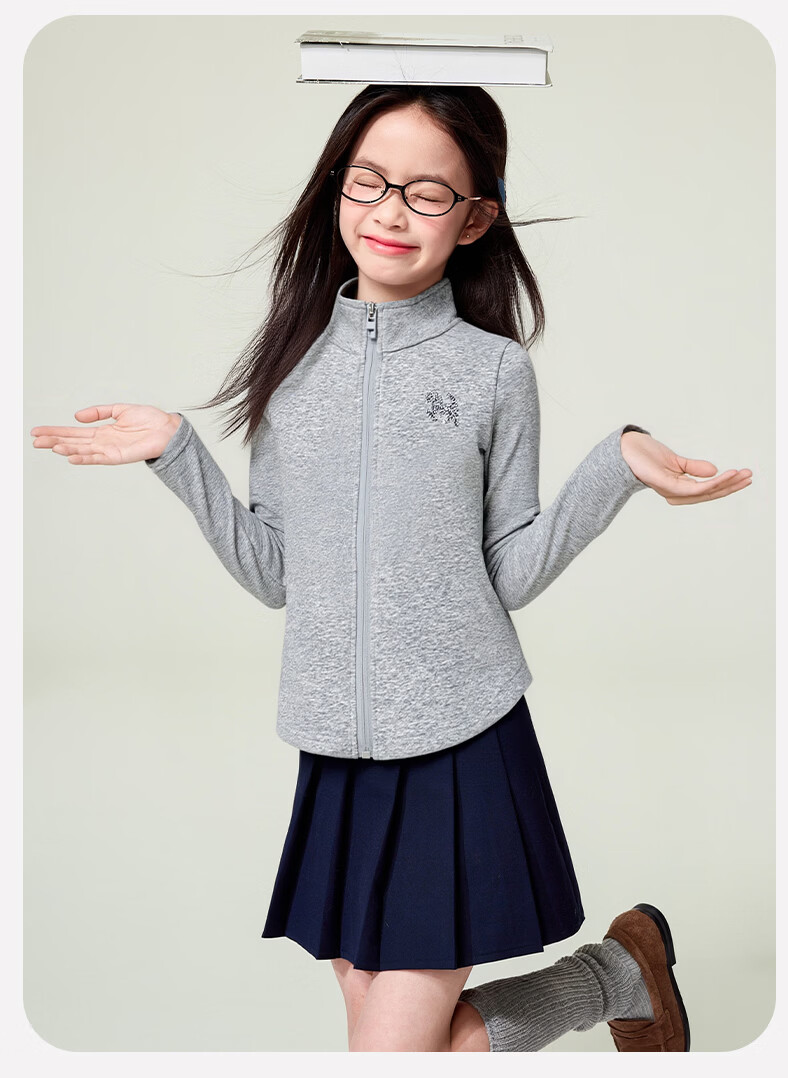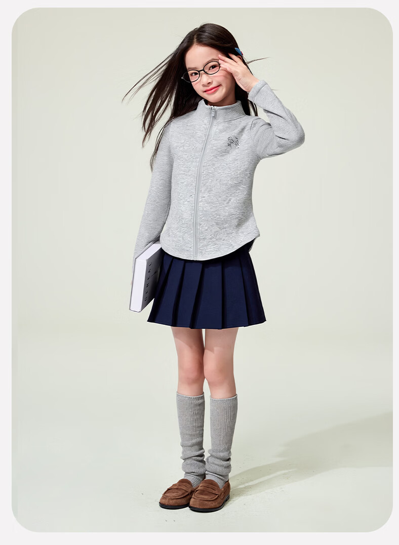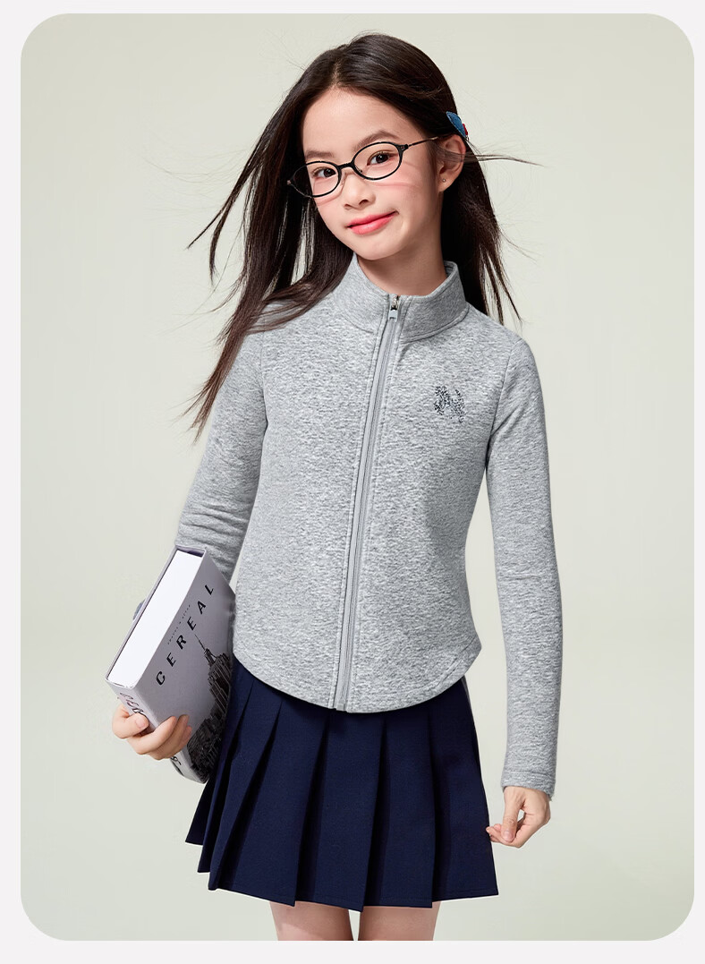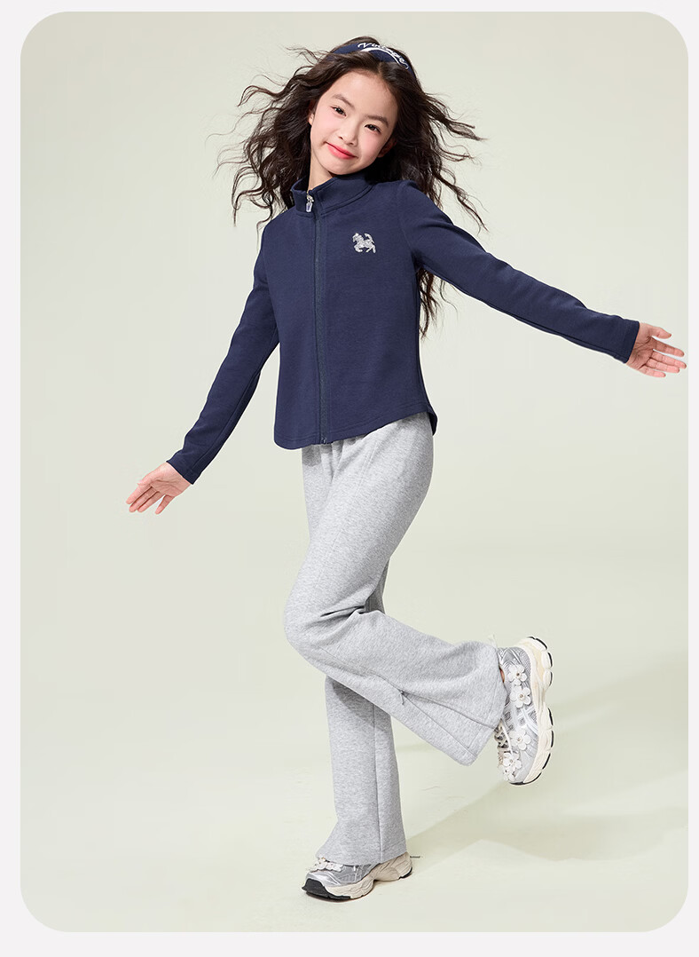 媛媛公主儿童外套26春新款女童小马烫钻收腰短款上衣中大童立领防风夹克 花灰色 110