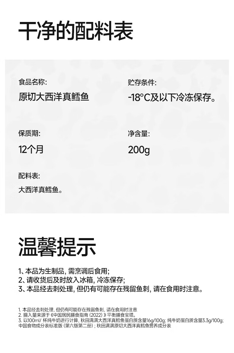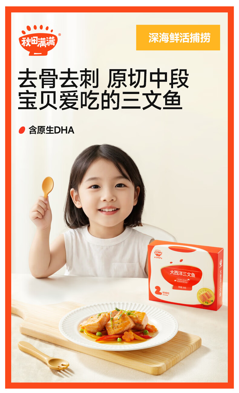 秋田满满鳕鱼原切大西洋真鳕鱼深海儿童生鲜三文鱼去皮去刺享婴幼儿辅食谱 【去骨去刺】真鳕鱼2盒*200g